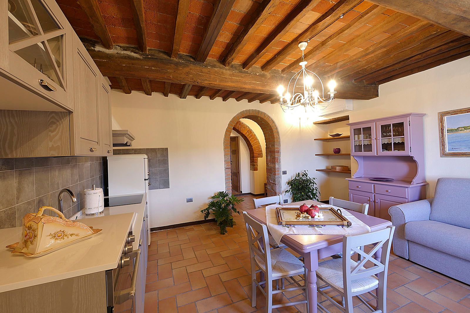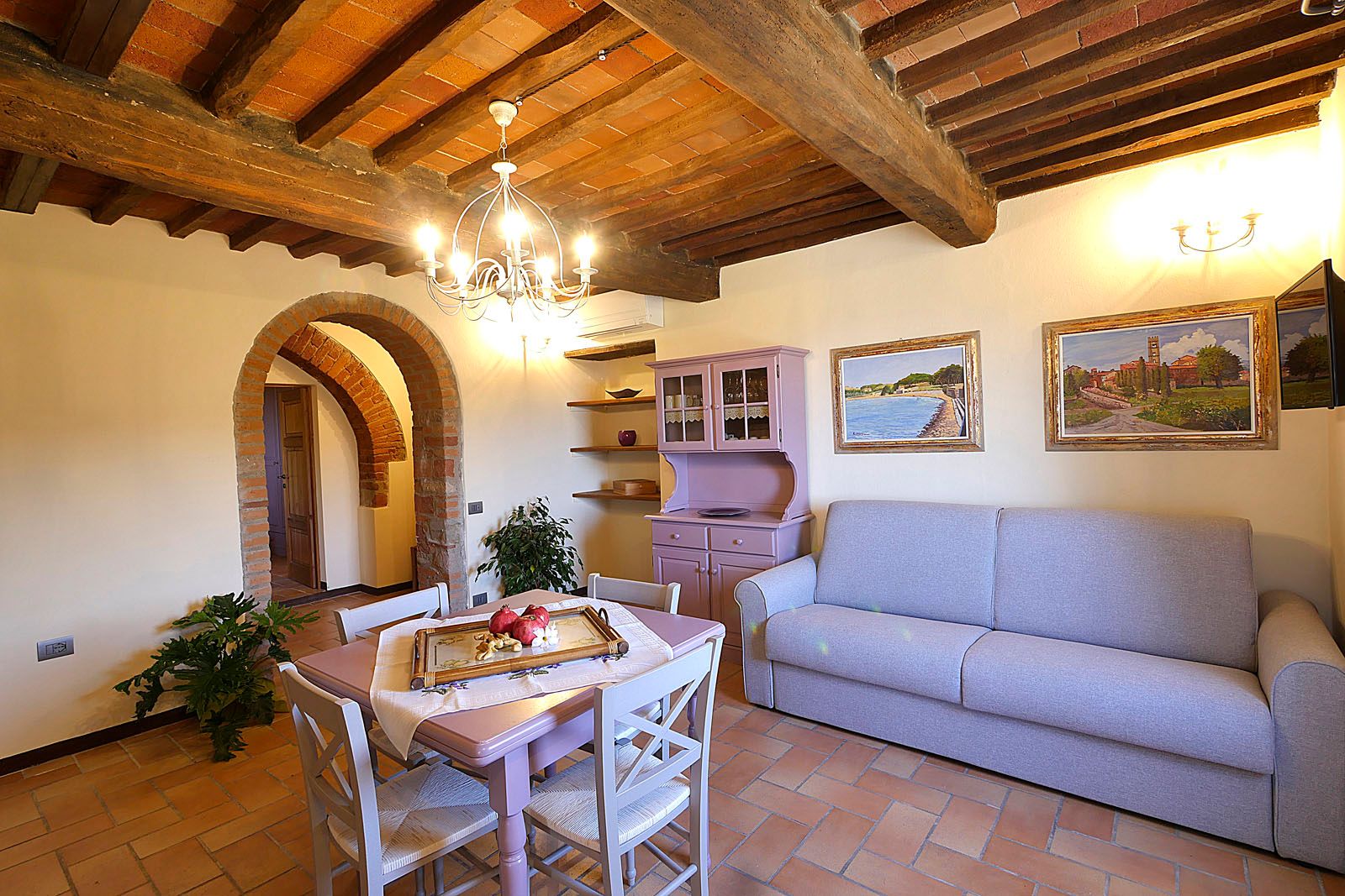 Rolling hills, sea views, birdsong and crickets – this is country living, the Italian way. Perched on a forested slope, the apartment sits within a traditional farmstead with two shared swimming pools, a seasonal hot tub, and peaceful garden spots perfect for breakfasting al fresco. Inside, terracotta floors, arched doorways and rustic charm meet modern comforts – including air conditioning and a kitchenette, though in warmer weather you’ll likely be firing up the grill. Wander along nature trails, sample local vintages or spend the day at the beach. The medieval village of Castagneto Carducci is just 4km away – reached via a dirt road that only adds to the off-grid magic.
