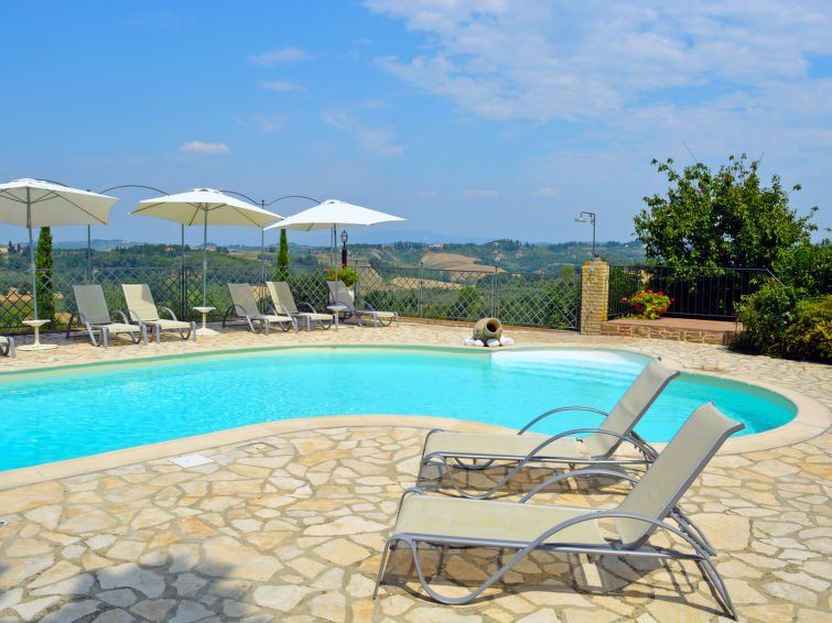 The house is beautifully and quietly situated on a hill with a fantastic view. The pool and terrace are picture-perfect and as beautiful as described. The host is very friendly, accommodating, and easy-going. Overall, the house is well-equipped, with air conditioning/heating (which was still needed in mid-April), an induction stove, a dishwasher, and a smart TV; we even picked up a few small items for everyday kitchen use. Great location for Pisa, Siena, San Gimignano, Volterra, Florence, Montereggioni, and Chianti...