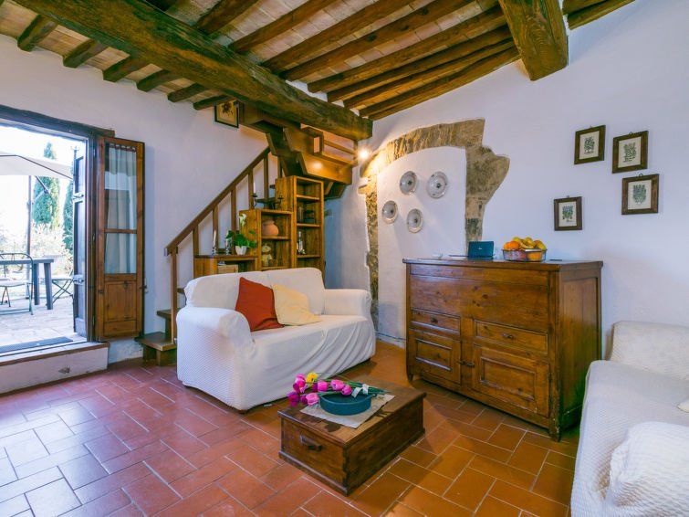 "Casa Patrizia", 3-room house 50 m2 on 2 levels. Rustic and cosy furnishings: living/dining room with TV (flat screen). Exit to the garden, to the terrace. Kitchenette (dishwasher, 4 induction hot plates, toaster, kettle, microwave, electric coffee machine). Upper floor: 1 double bedroom.