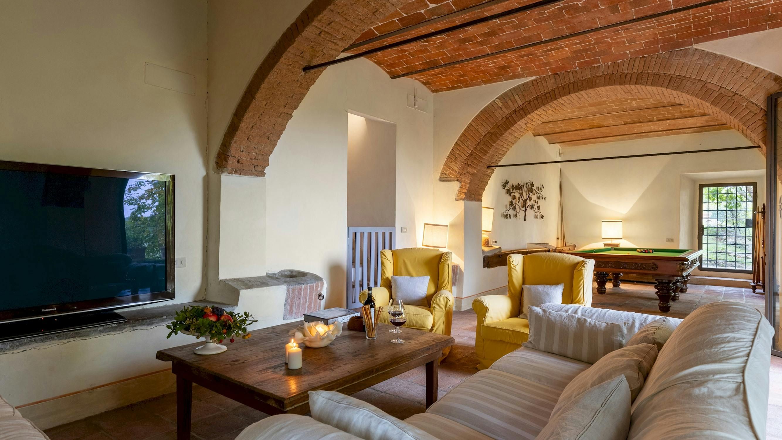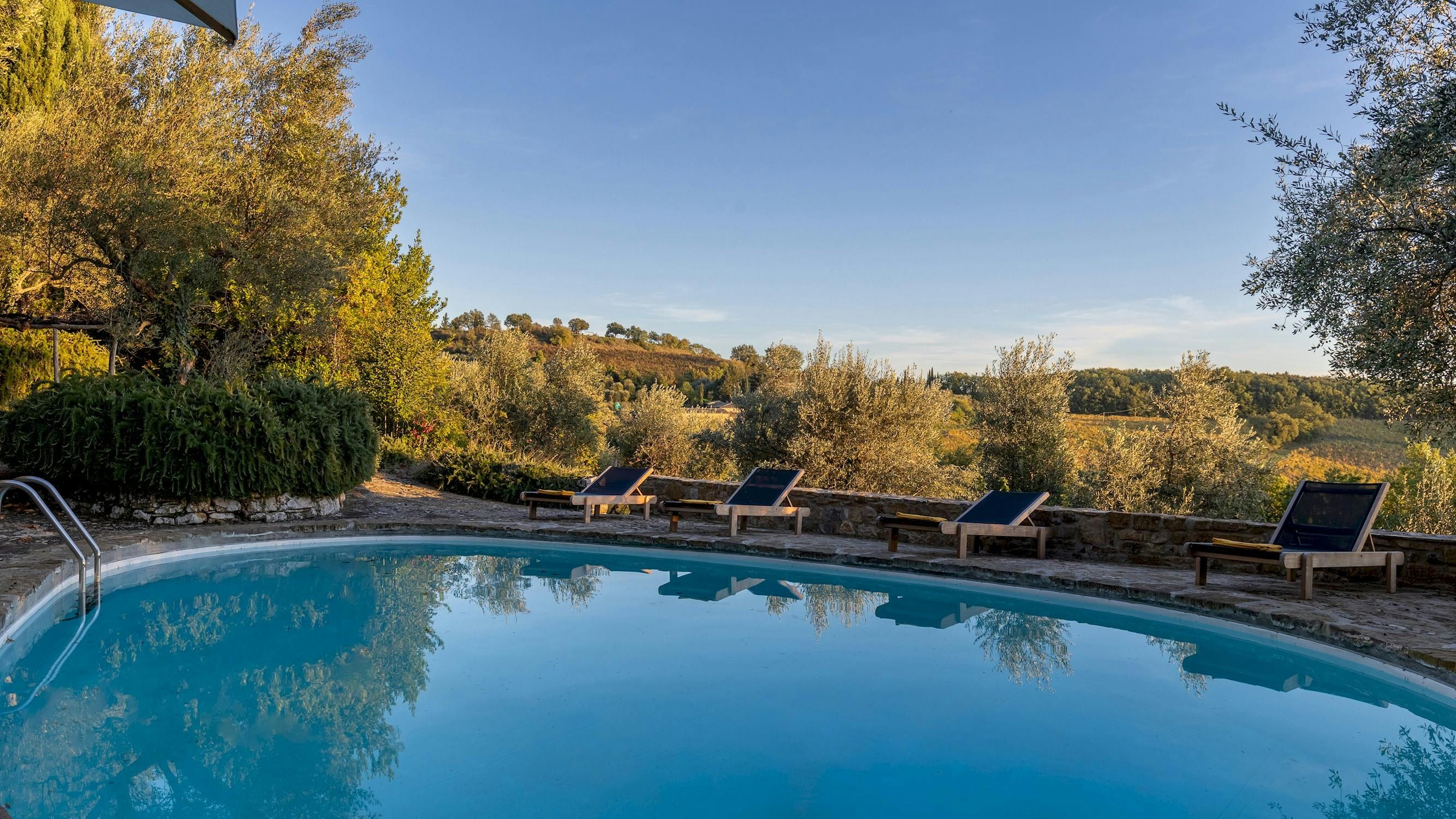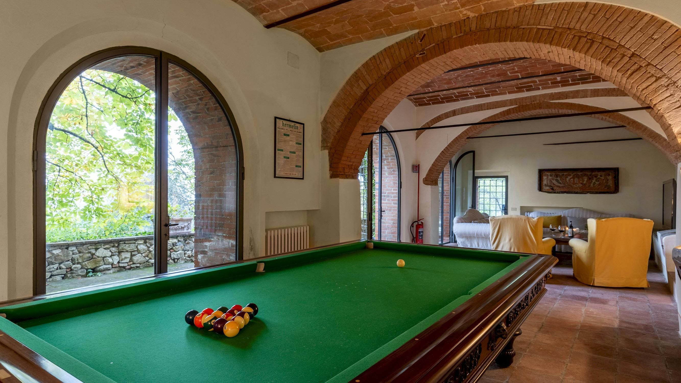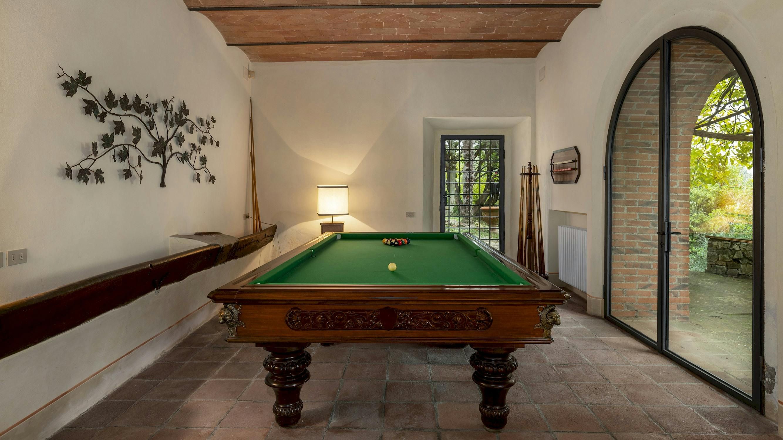 If you’re in search of a rustic retreat in the heart of Chianti Classico, this home delivers a sweet solution. You can enjoy stunning views across olive groves, vineyards and rolling hills. There’s a private pool for leisurely afternoon swims, a shaded pergola for evening meals and a billiard room for family-fun and games. The rooms are spread across the main house and an adjacent annexe – providing plenty of space to stretch out and socialise. You will need a car to get around here, but it’s just a short drive to Castellina in Chianti, while Siena and San Gimignano are both within easy driving distance.