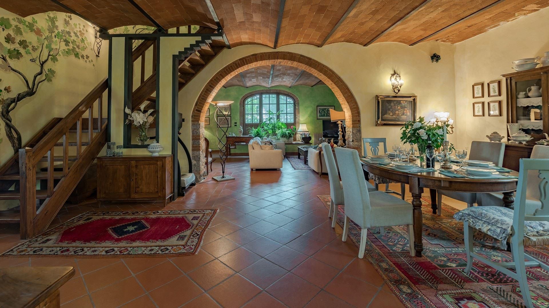 After a day touring world-class vineyards, this home is the perfect place to unwind with a glass of Chianti. Sure, there’s no air conditioning here, and the traditional interiors may not be to everyone’s taste, but there’s no denying the beauty of the outdoor space. And, where better to cool off in the Tuscan heat, than the private pool? If you’re not dining alfresco and soaking up the countryside views, take the short drive to Quercegrossa for some authentic Italian food with the locals.