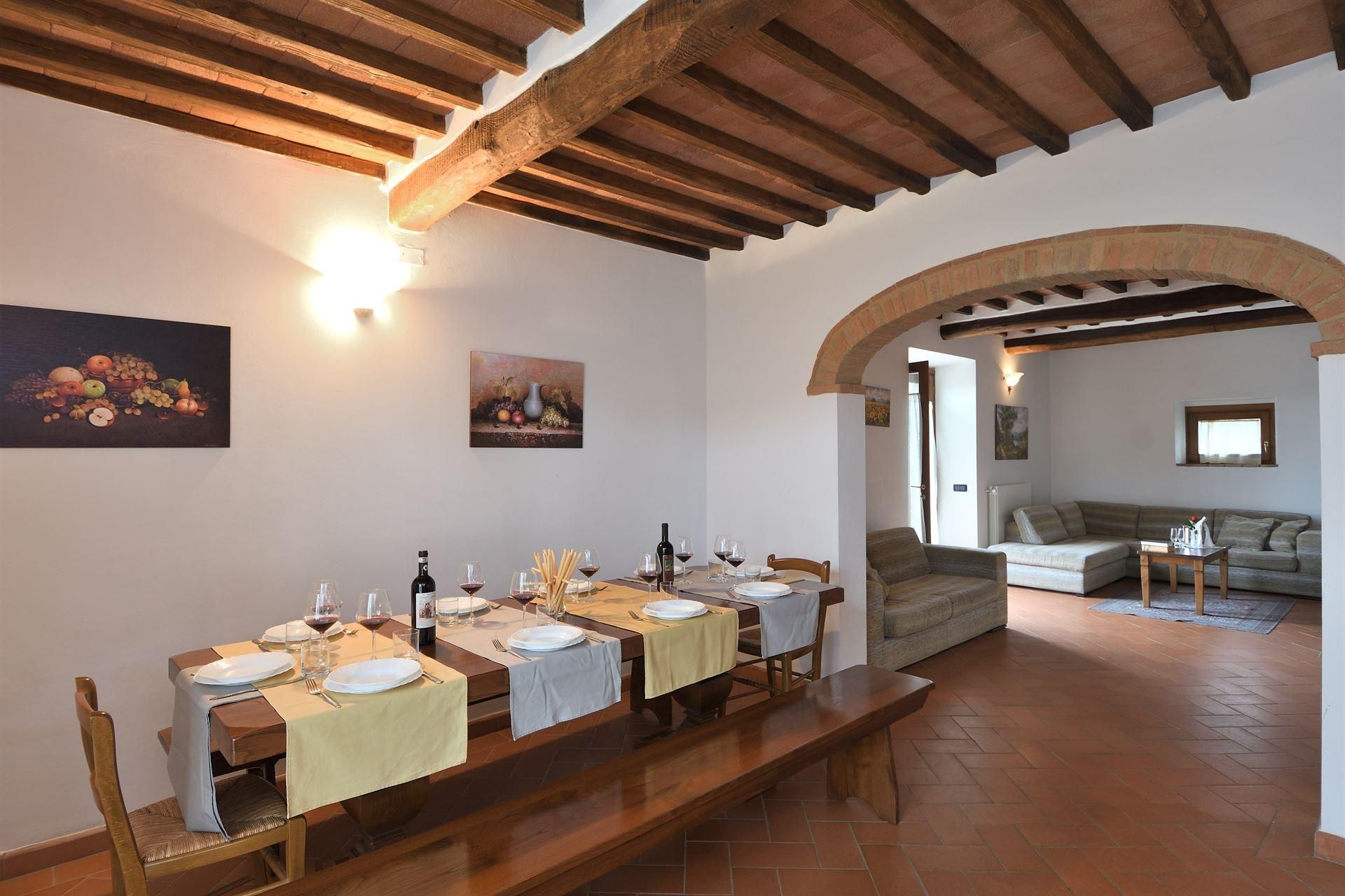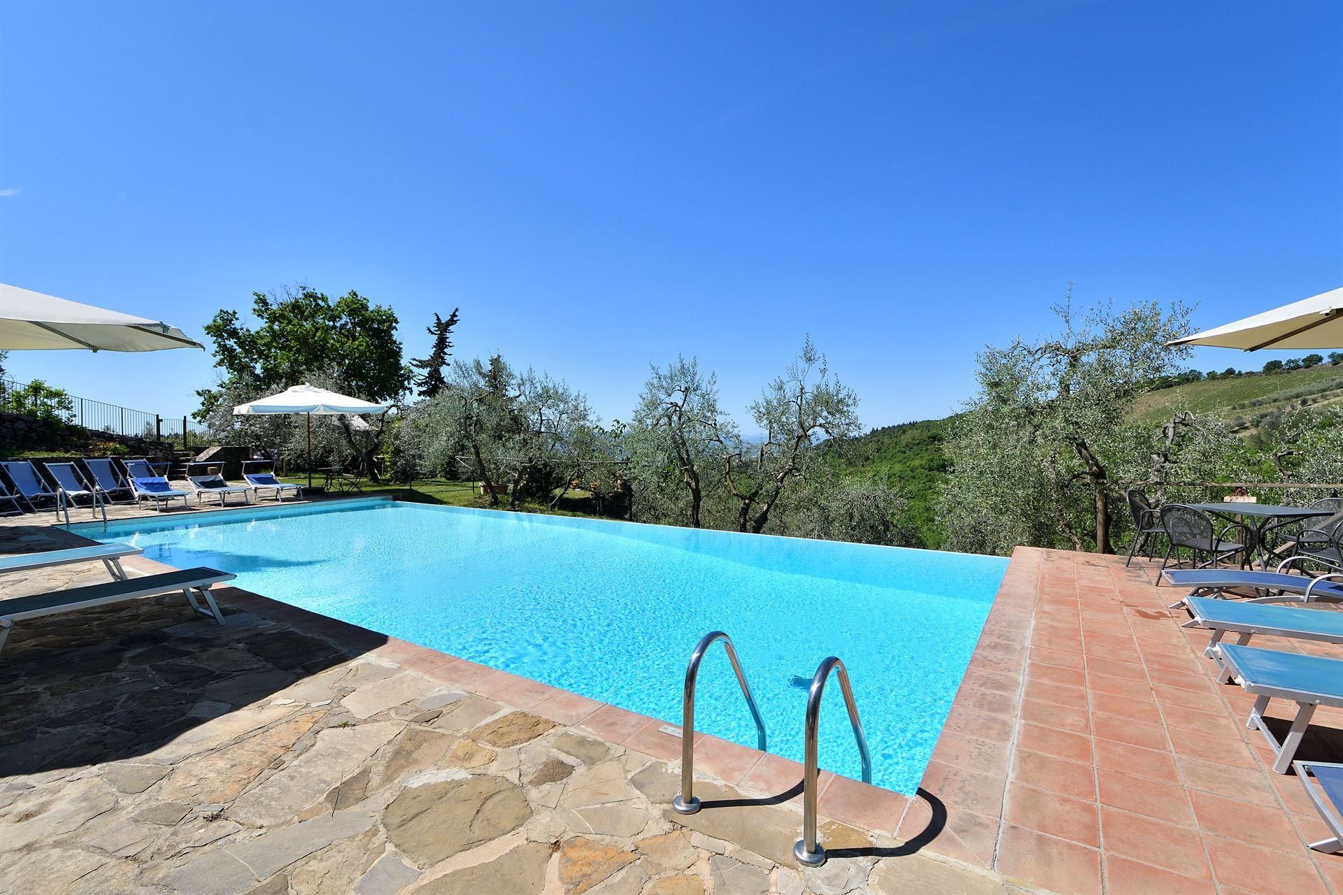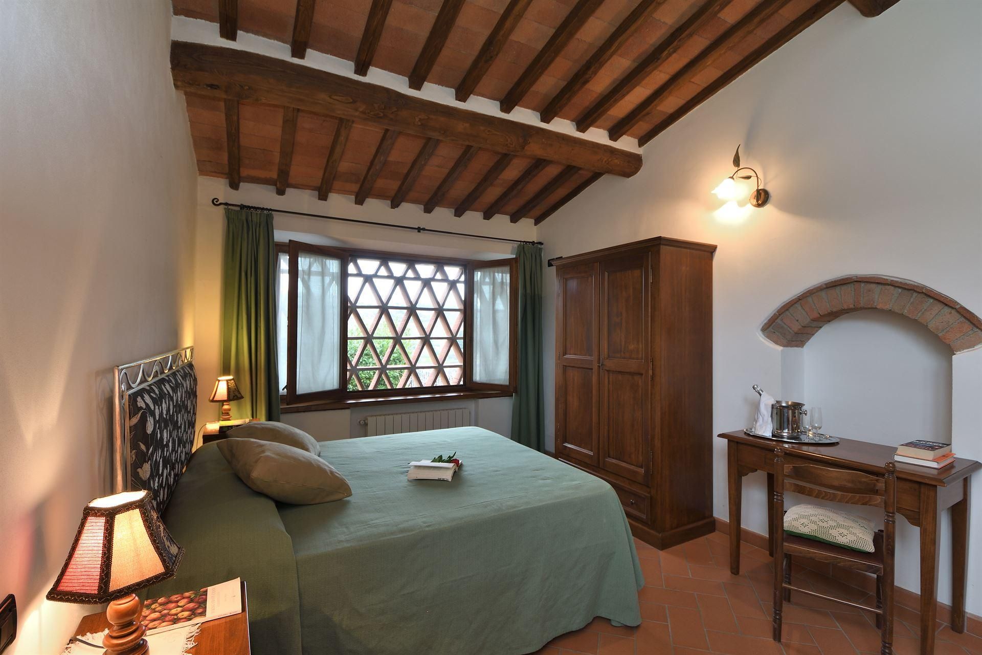 This charming cottage is tucked away on an authentic working vineyard, beside a family farmhouse. It’s just 1 kilometre from Castellina in Chianti, and within driving distance of Sam Gimignano, Siena, and Florence – you’ll have plenty of options for day trips. There’s a sloped garden with a furnished terrace and a shared swimming pool, and exquisite views of the Chianti countryside to be enjoyed from almost every angle. The cottage feels typically Tuscan, with its terracotta tiles and wooden beams. It’s a comfortable holiday home in an idyllic setting.