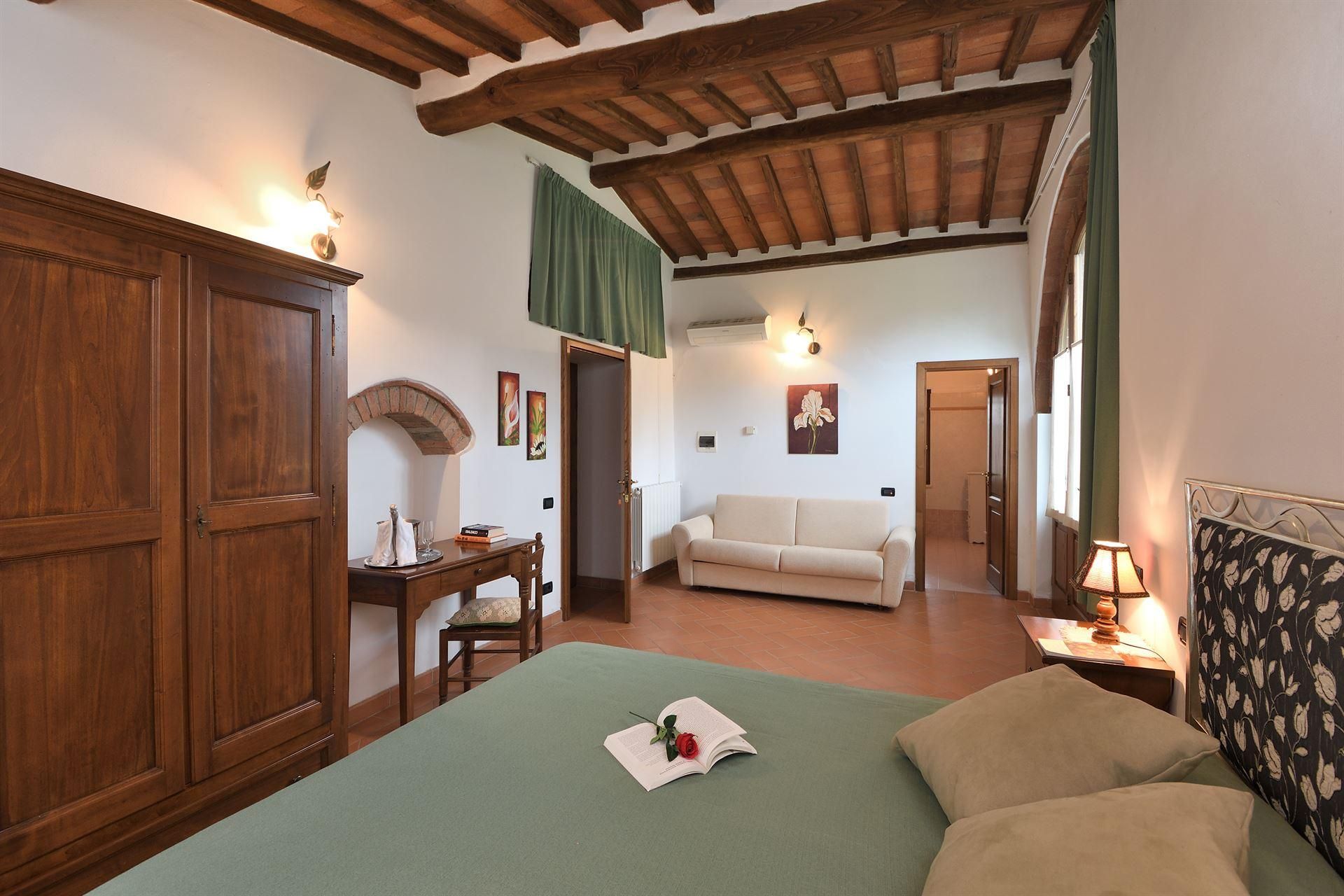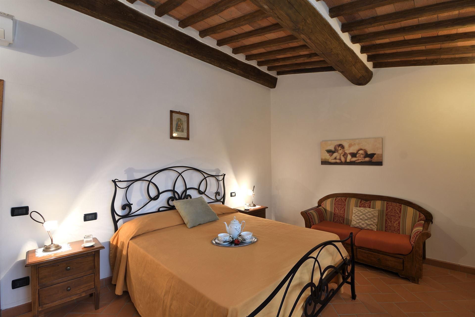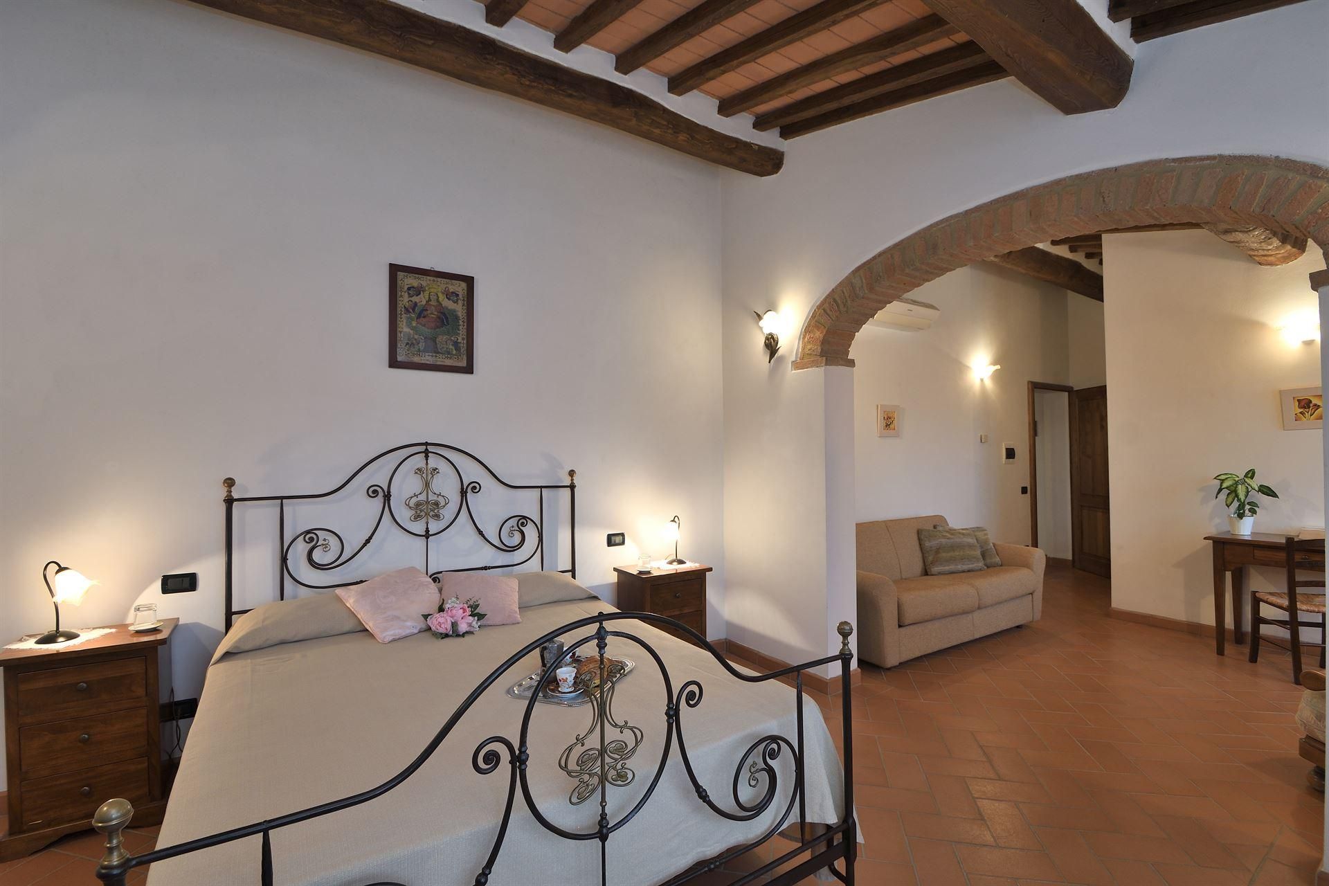 This charming cottage is tucked away on an authentic working vineyard, beside a family farmhouse. It’s just 1 kilometre from Castellina in Chianti, and within driving distance of Sam Gimignano, Siena, and Florence – you’ll have plenty of options for day trips. There’s a sloped garden with a furnished terrace and a shared swimming pool, and exquisite views of the Chianti countryside to be enjoyed from almost every angle. The cottage feels typically Tuscan, with its terracotta tiles and wooden beams. It’s a comfortable holiday home in an idyllic setting.