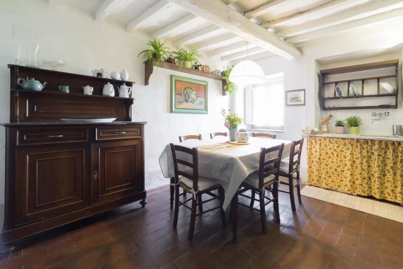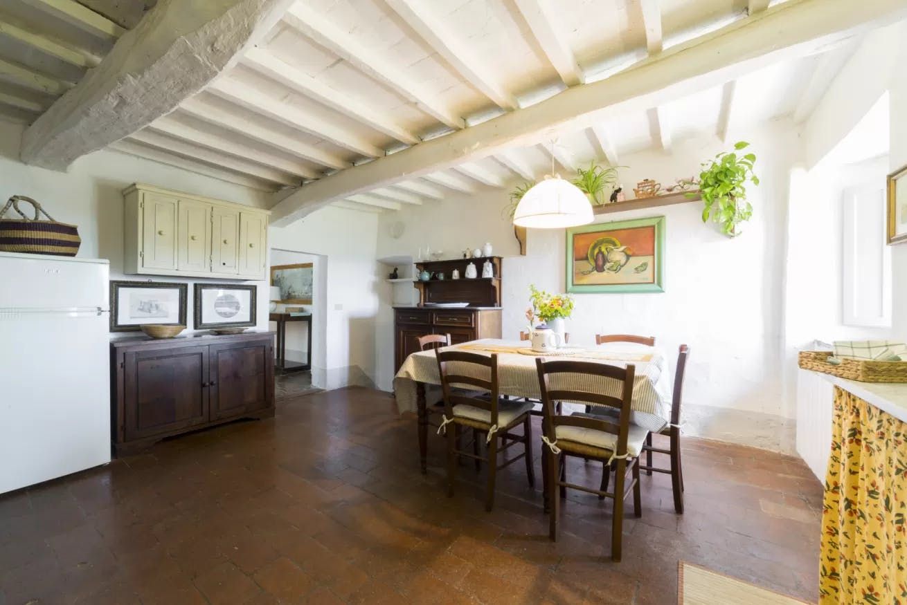 Thanks to the elevated position, the address benefits from sweeping views of the countryside and these can be admired while dining on the terrace or gliding through the swimming pool, which is shared with the other four houses in the tiny village.