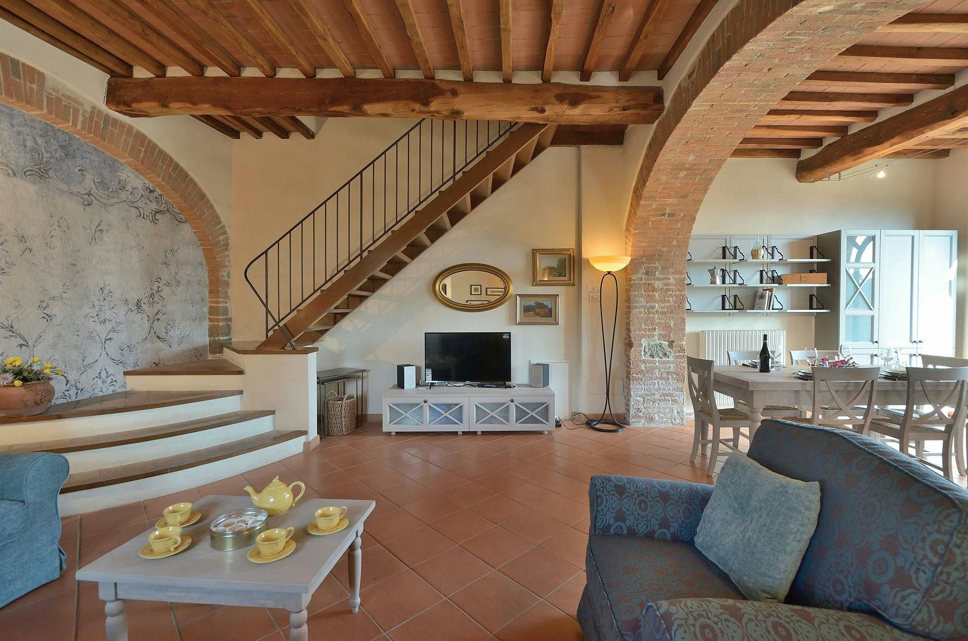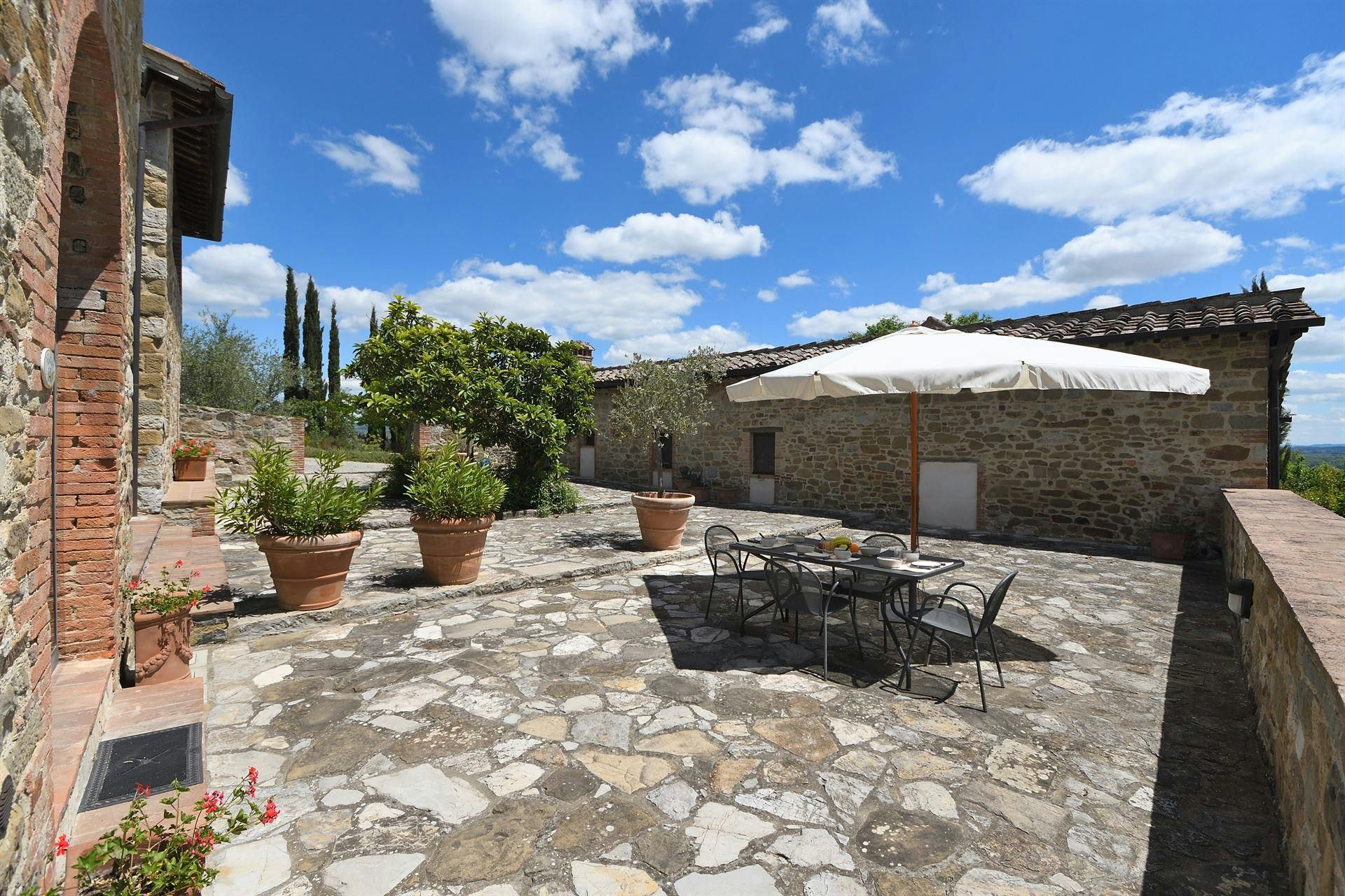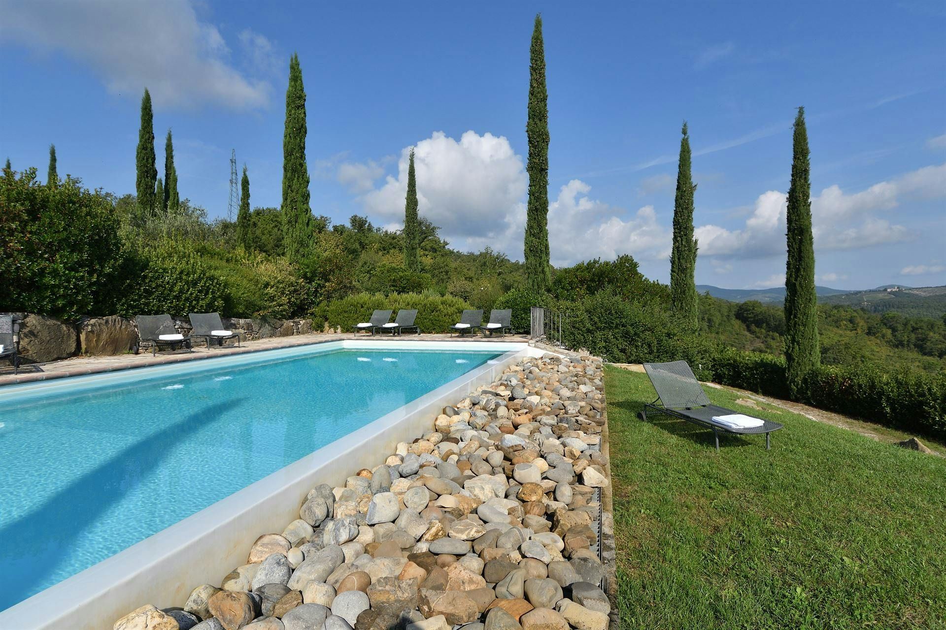 Nestled in a private estate overlooking the Chianti hills, this cottage sets the tone for a magical Italian stay. There’s a private terrace and outdoor seating for alfresco dining, while the rooms make it easy to switch off and unwind. You can enjoy access to the shared swimming pool and there are plenty of spots where you can sit back and admire the views. It also makes a great base for exploring this beautiful region. From here, its a short drive to the local villages of Lecchi and San Sano, while Siena and Florence are also within driving distance.