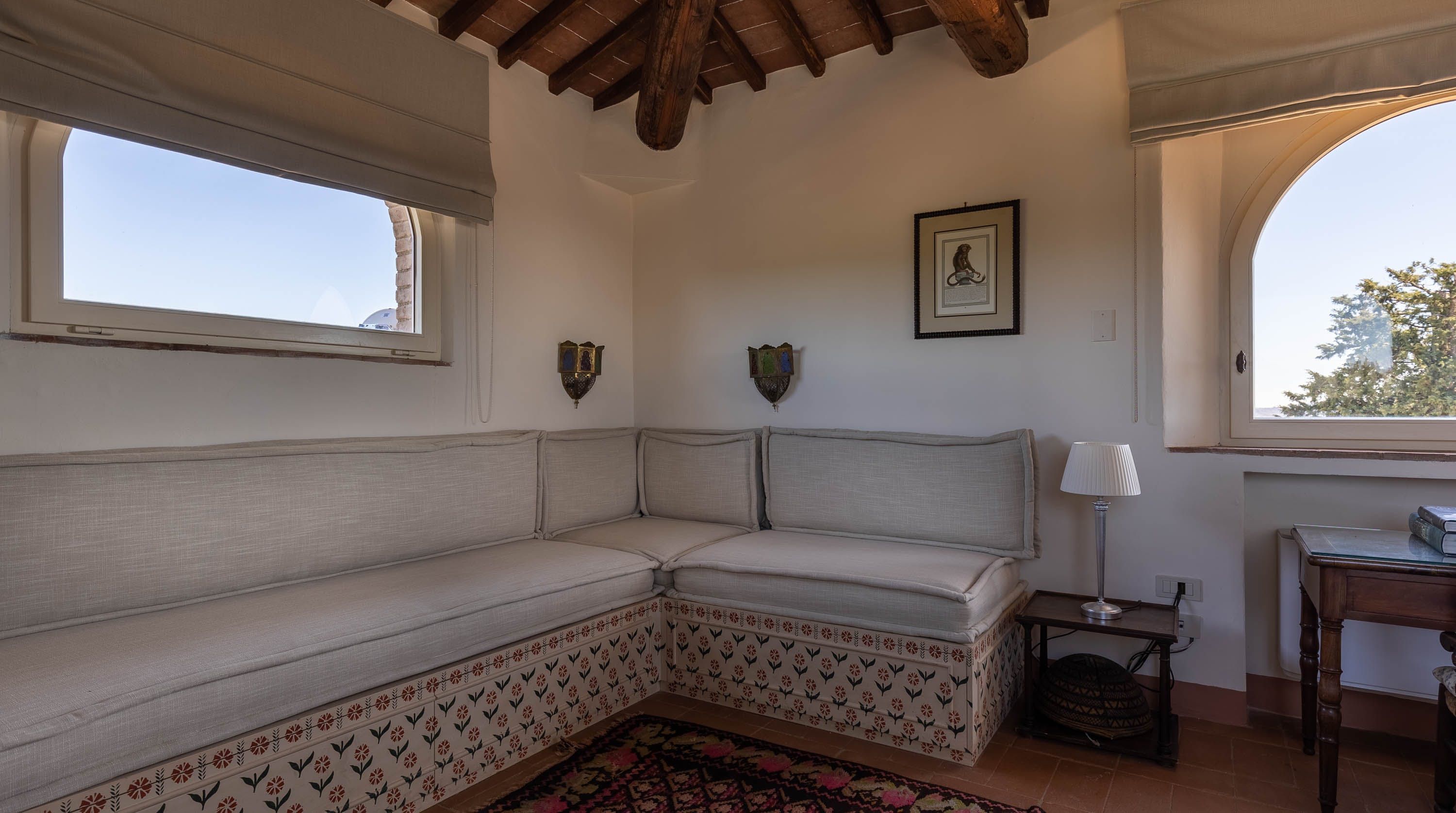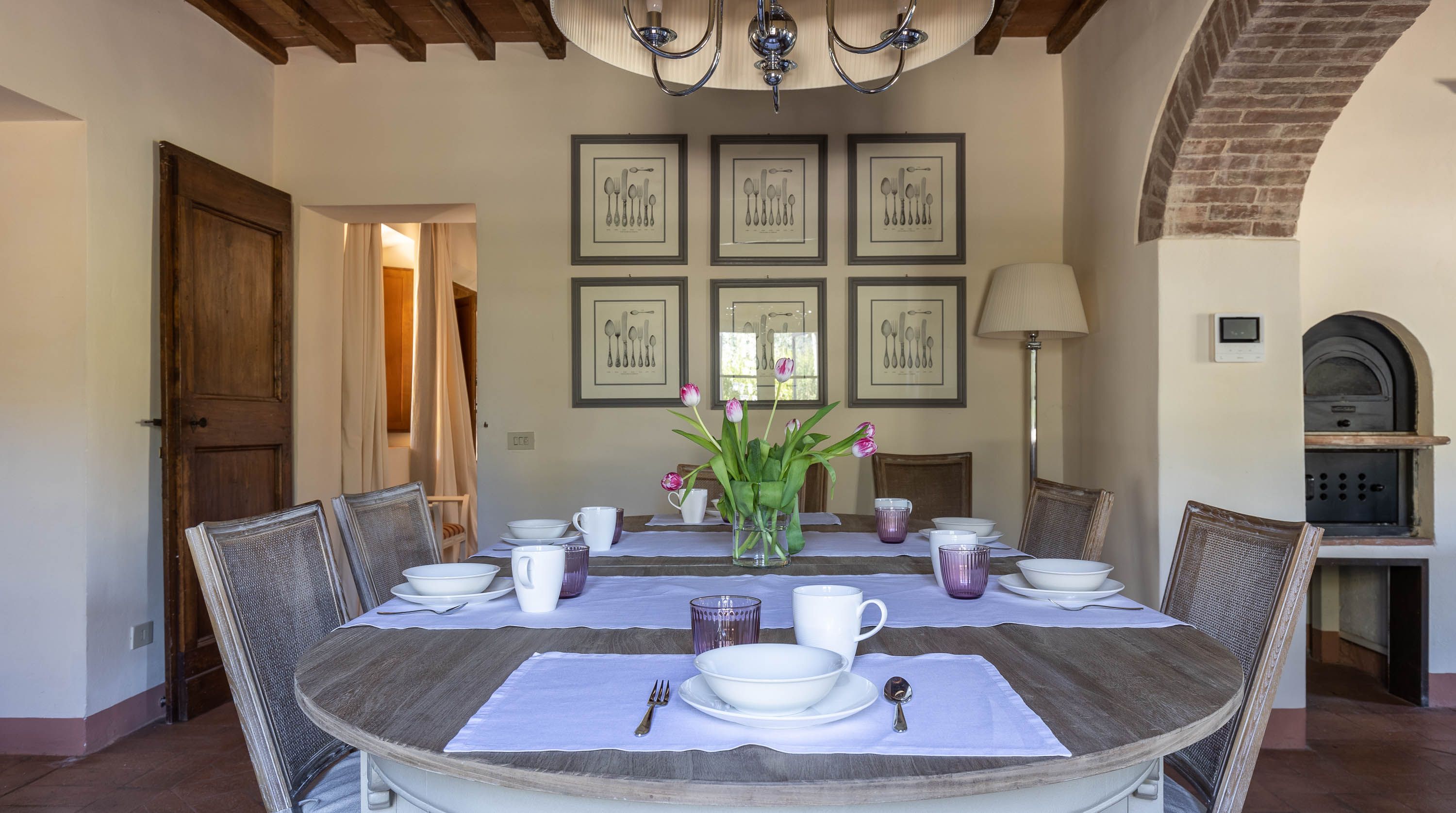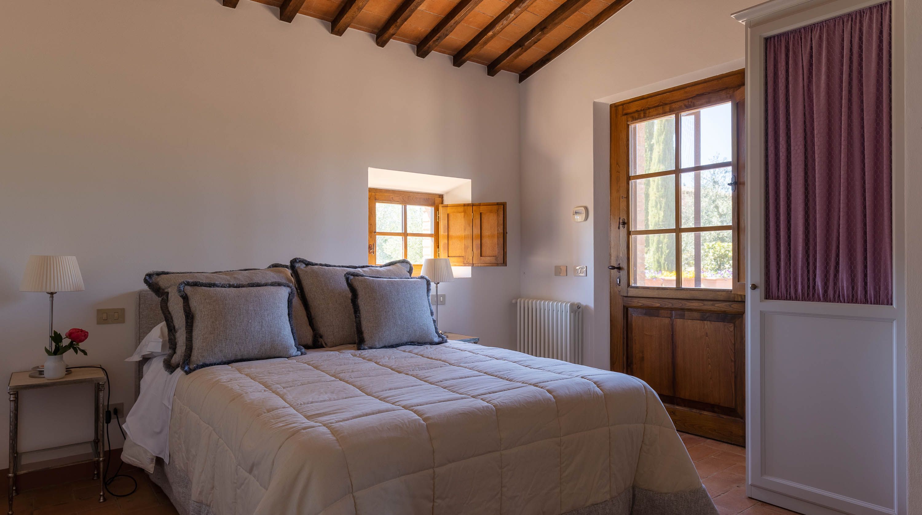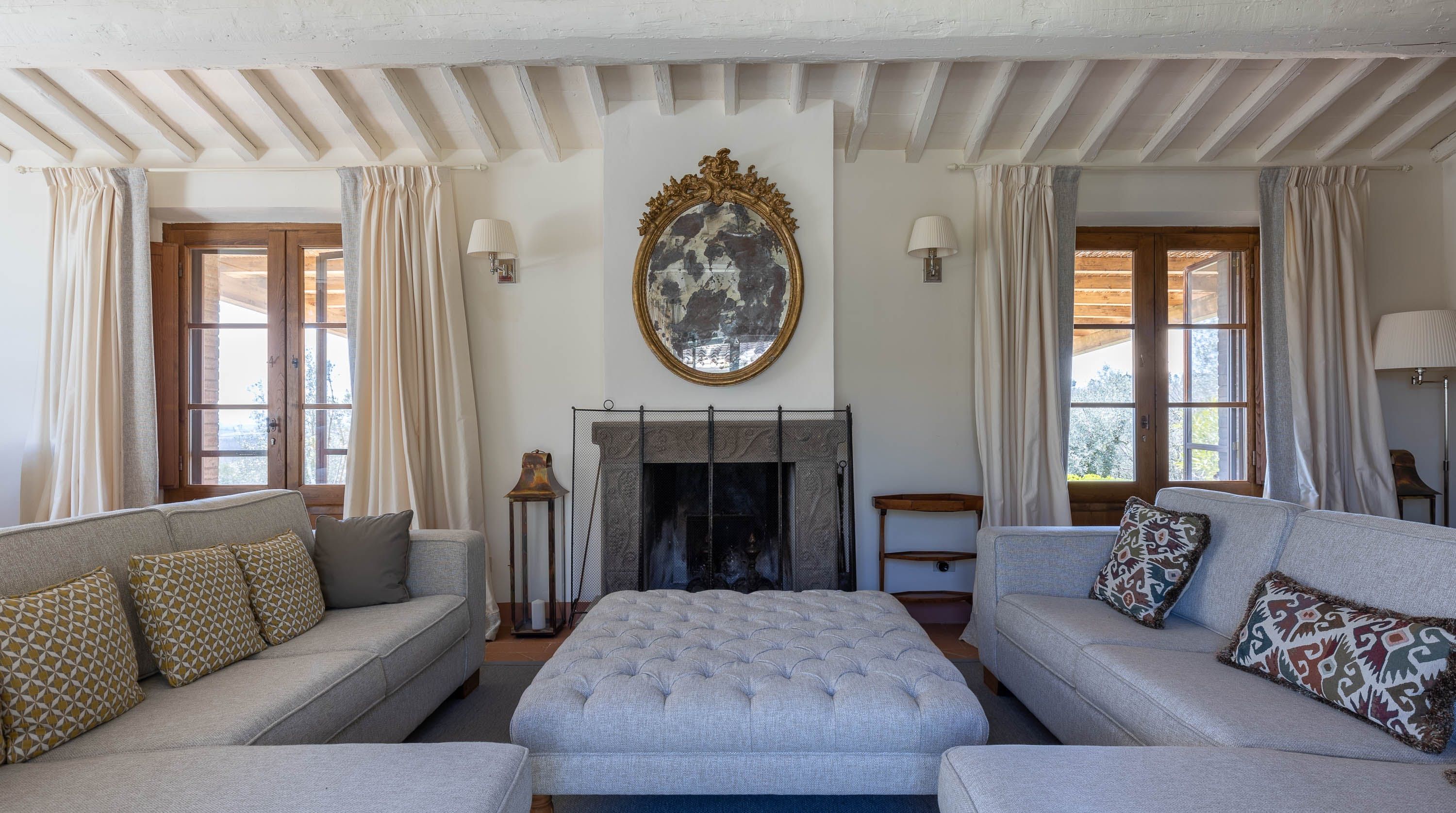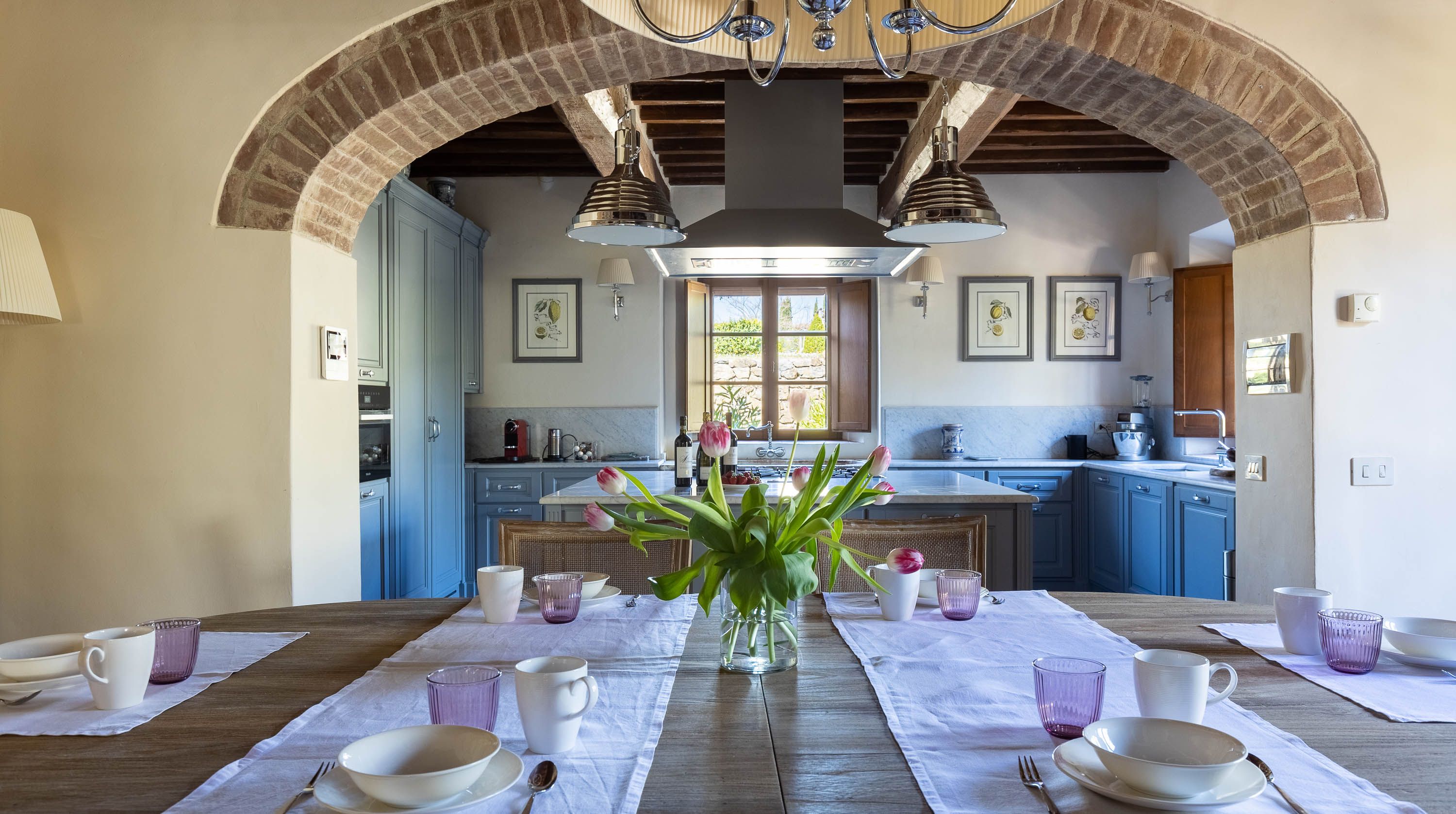 Accessible via an unpaved, cypress-lined road and perched on sloping, vineyard-covered hills, this stylish stone villa is Tuscany at its best. Whether you’re here for an intimate wedding or a big family holiday, the place will set your heart pounding. The interiors have preserved the grace of earlier ages while adding the essential modern cons and amenities. Exposed wood beam ceilings, tiled floors covered with vibrant carpets, and gorgeous vintage furniture make you feel at home, yet so far away from the current era. The master bedroom comes with a four-poster bed, and overall, all sleeping quarters exude a pampering feel accentuated by the gorgeous period furniture. We love the huge dining room, the walls of which are lined with well-stocked bookshelves. After a hearty meal, grab a book, amble outside to the sundeck and lose yourself in another world. When the warmth overwhelms you, take a cooling dip in the massive pool. In the evening you can savour wine and antipasti on the veranda or under the vine-wrapped pergola. If you get the itch to explore, a thirty-minute drive will take you to Siena where you can enjoy dining, shopping and sightseeing.
