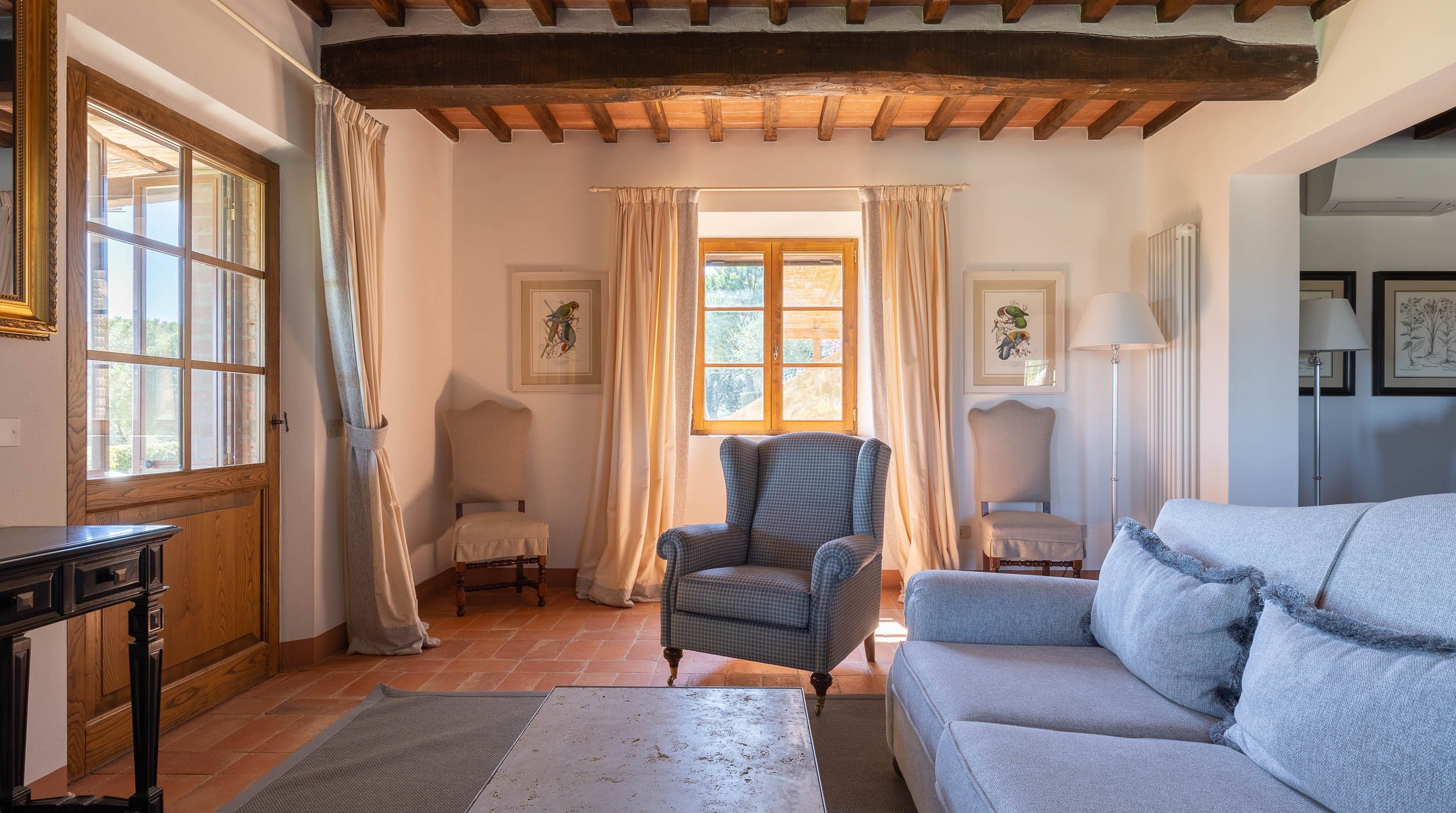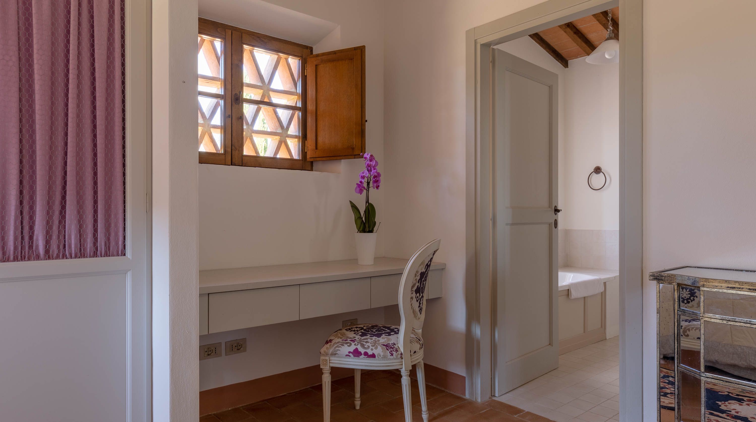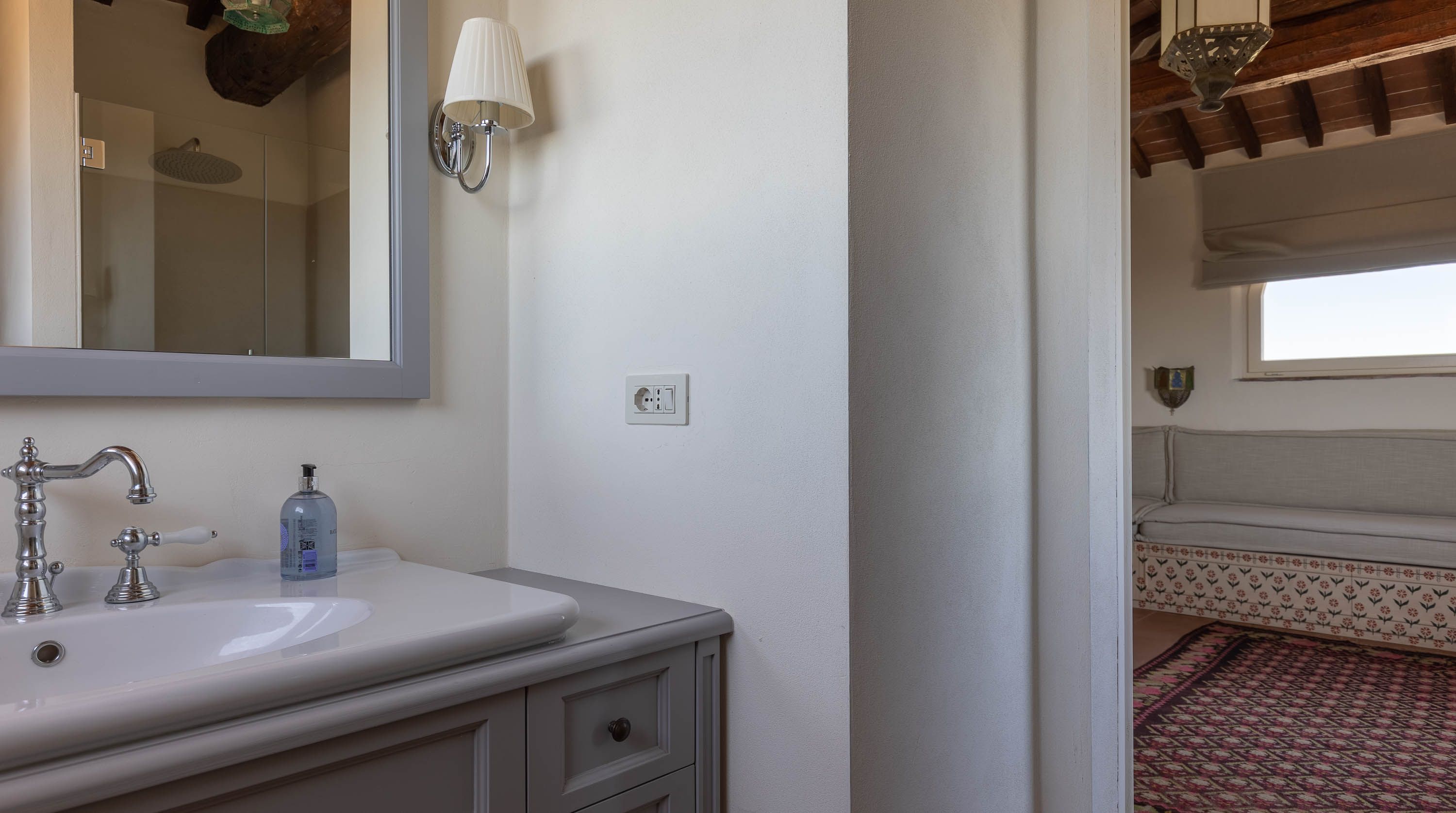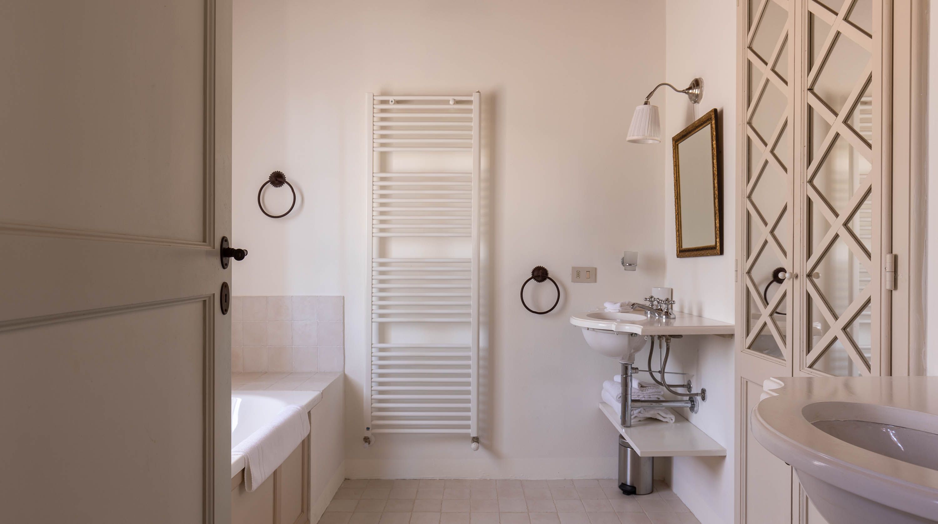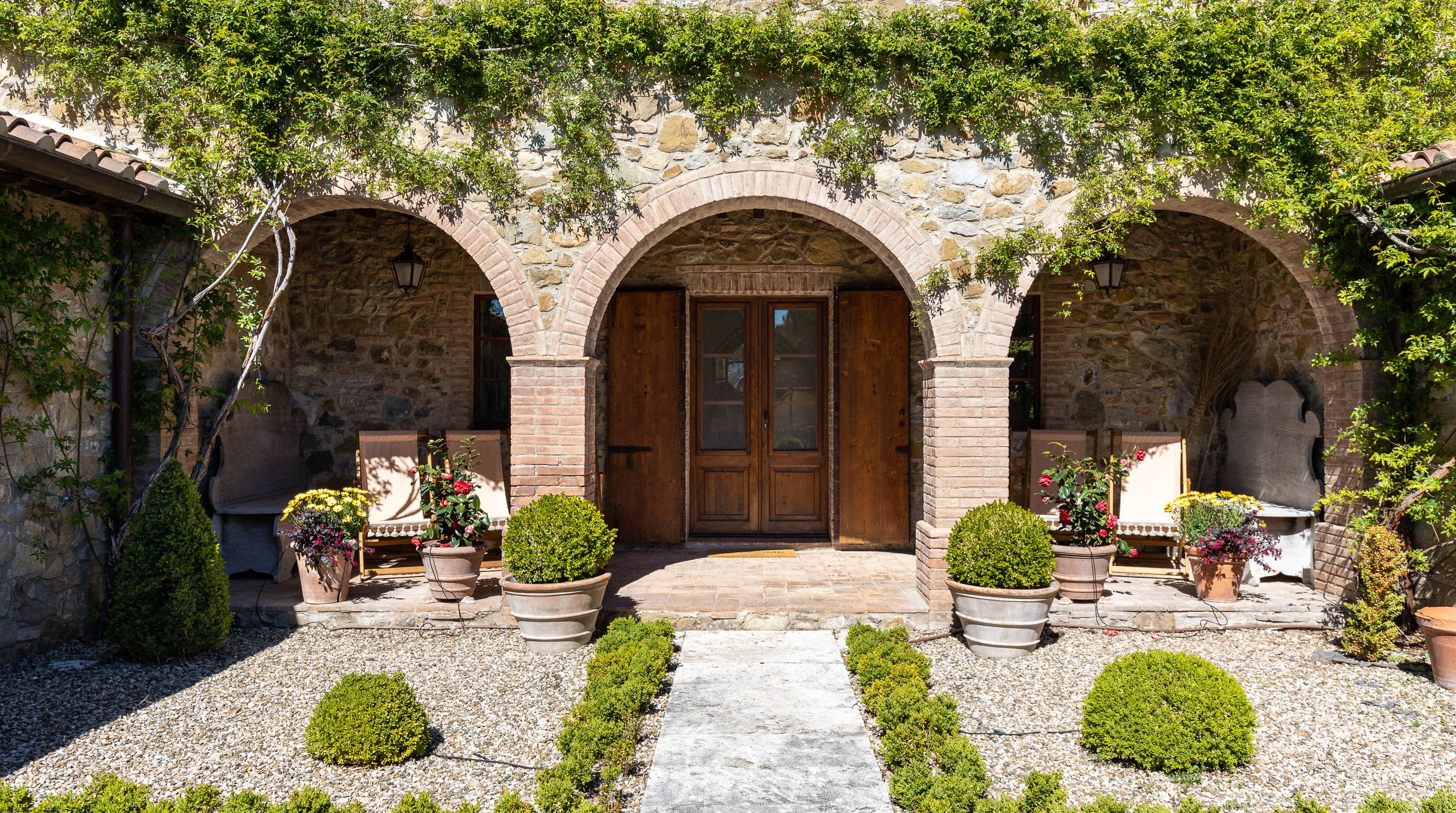 Accessible via an unpaved, cypress-lined road and perched on sloping, vineyard-covered hills, this stylish stone villa is Tuscany at its best. Whether you’re here for an intimate wedding or a big family holiday, the place will set your heart pounding. The interiors have preserved the grace of earlier ages while adding the essential modern cons and amenities. Exposed wood beam ceilings, tiled floors covered with vibrant carpets, and gorgeous vintage furniture make you feel at home, yet so far away from the current era. The master bedroom comes with a four-poster bed, and overall, all sleeping quarters exude a pampering feel accentuated by the gorgeous period furniture. We love the huge dining room, the walls of which are lined with well-stocked bookshelves. After a hearty meal, grab a book, amble outside to the sundeck and lose yourself in another world. When the warmth overwhelms you, take a cooling dip in the massive pool. In the evening you can savour wine and antipasti on the veranda or under the vine-wrapped pergola. If you get the itch to explore, a thirty-minute drive will take you to Siena where you can enjoy dining, shopping and sightseeing.