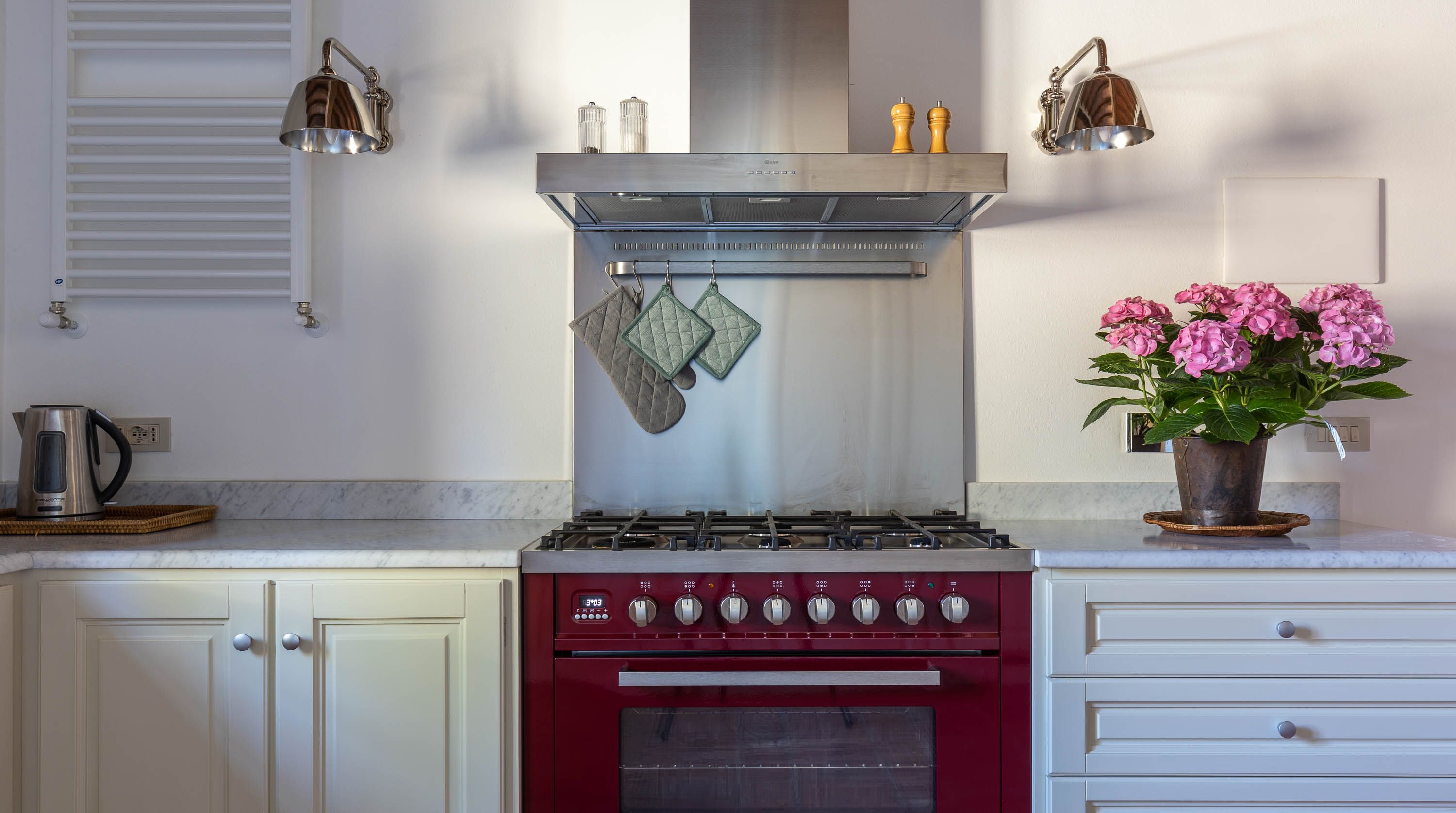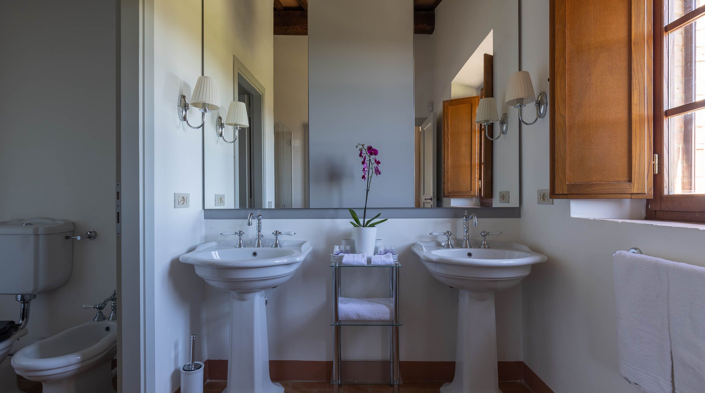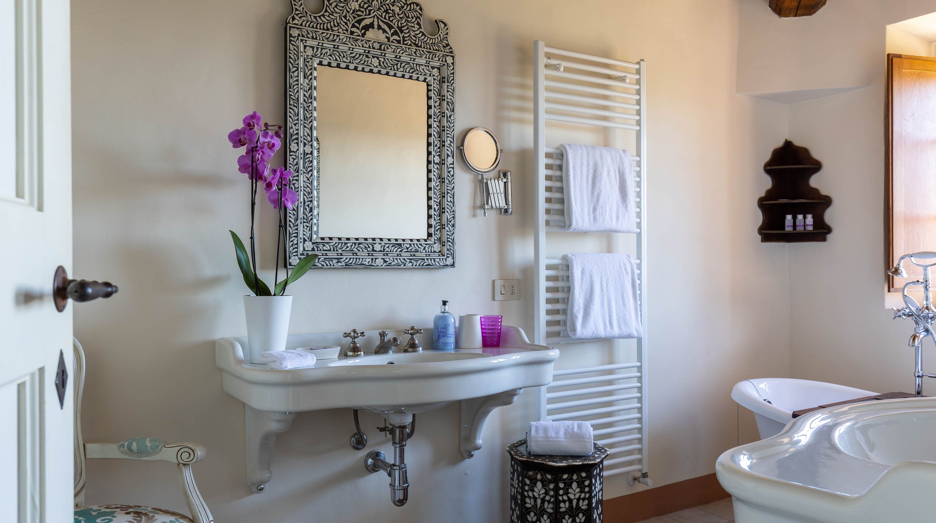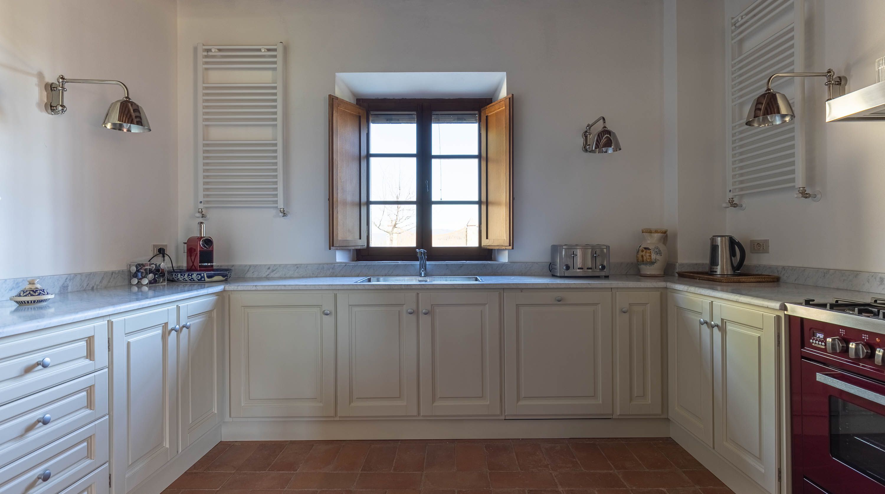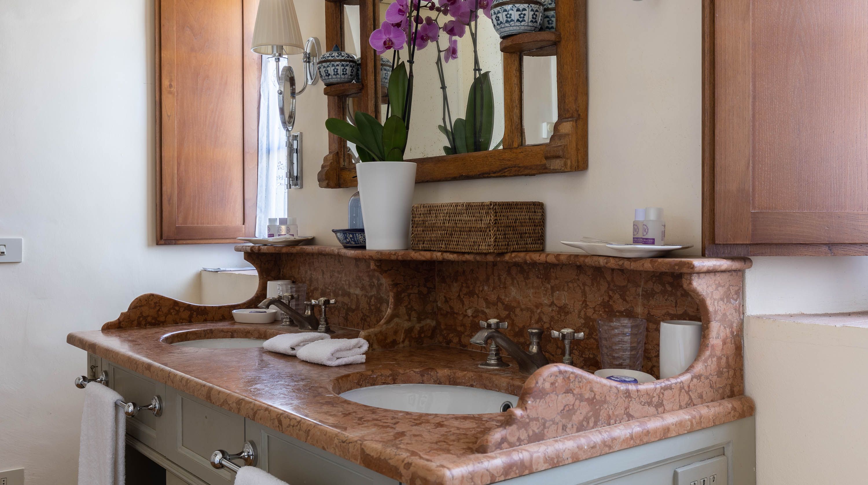 Accessible via an unpaved, cypress-lined road and perched on sloping, vineyard-covered hills, this stylish stone villa is Tuscany at its best. Whether you’re here for an intimate wedding or a big family holiday, the place will set your heart pounding. The interiors have preserved the grace of earlier ages while adding the essential modern cons and amenities. Exposed wood beam ceilings, tiled floors covered with vibrant carpets, and gorgeous vintage furniture make you feel at home, yet so far away from the current era. The master bedroom comes with a four-poster bed, and overall, all sleeping quarters exude a pampering feel accentuated by the gorgeous period furniture. We love the huge dining room, the walls of which are lined with well-stocked bookshelves. After a hearty meal, grab a book, amble outside to the sundeck and lose yourself in another world. When the warmth overwhelms you, take a cooling dip in the massive pool. In the evening you can savour wine and antipasti on the veranda or under the vine-wrapped pergola. If you get the itch to explore, a thirty-minute drive will take you to Siena where you can enjoy dining, shopping and sightseeing.