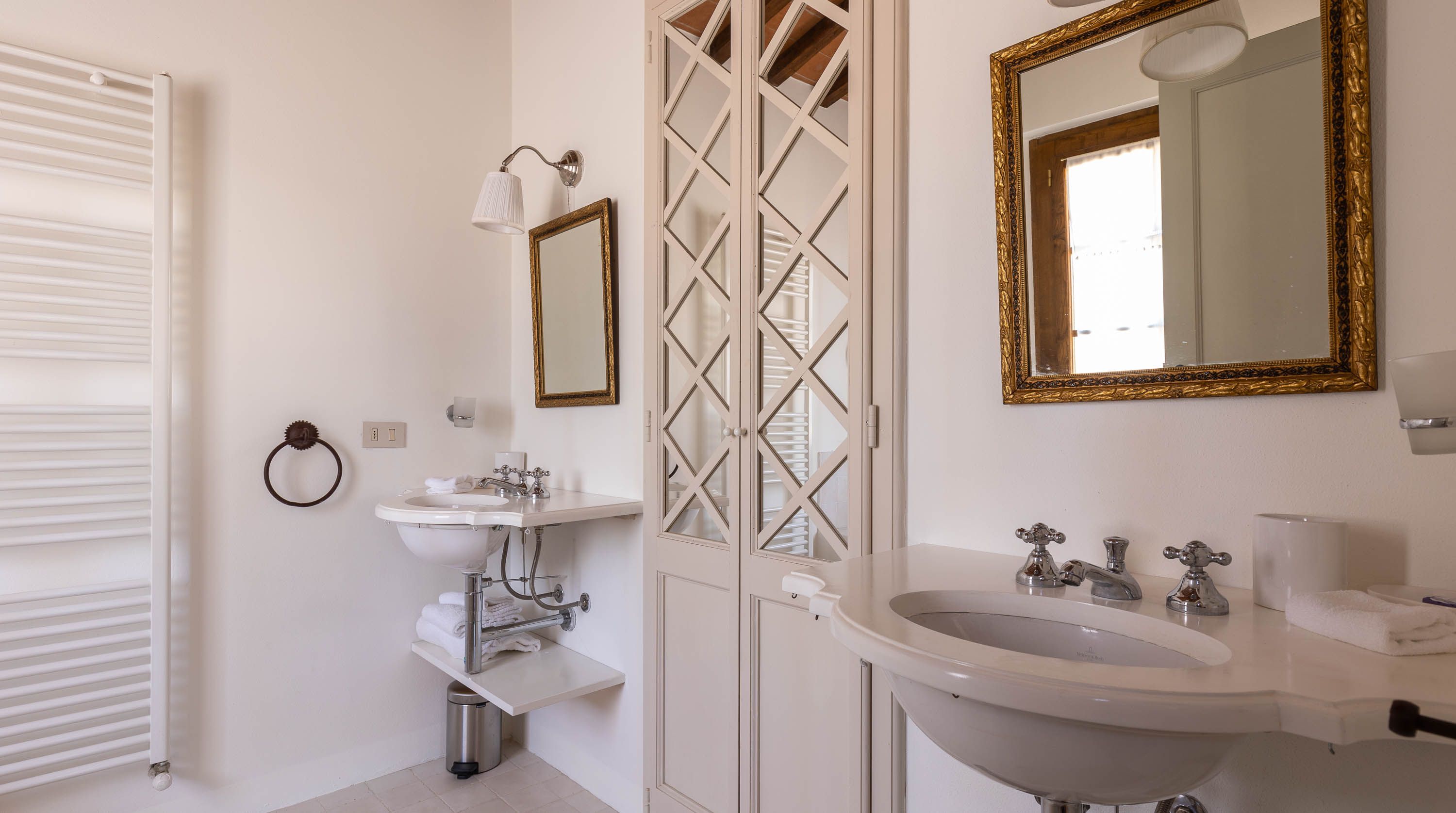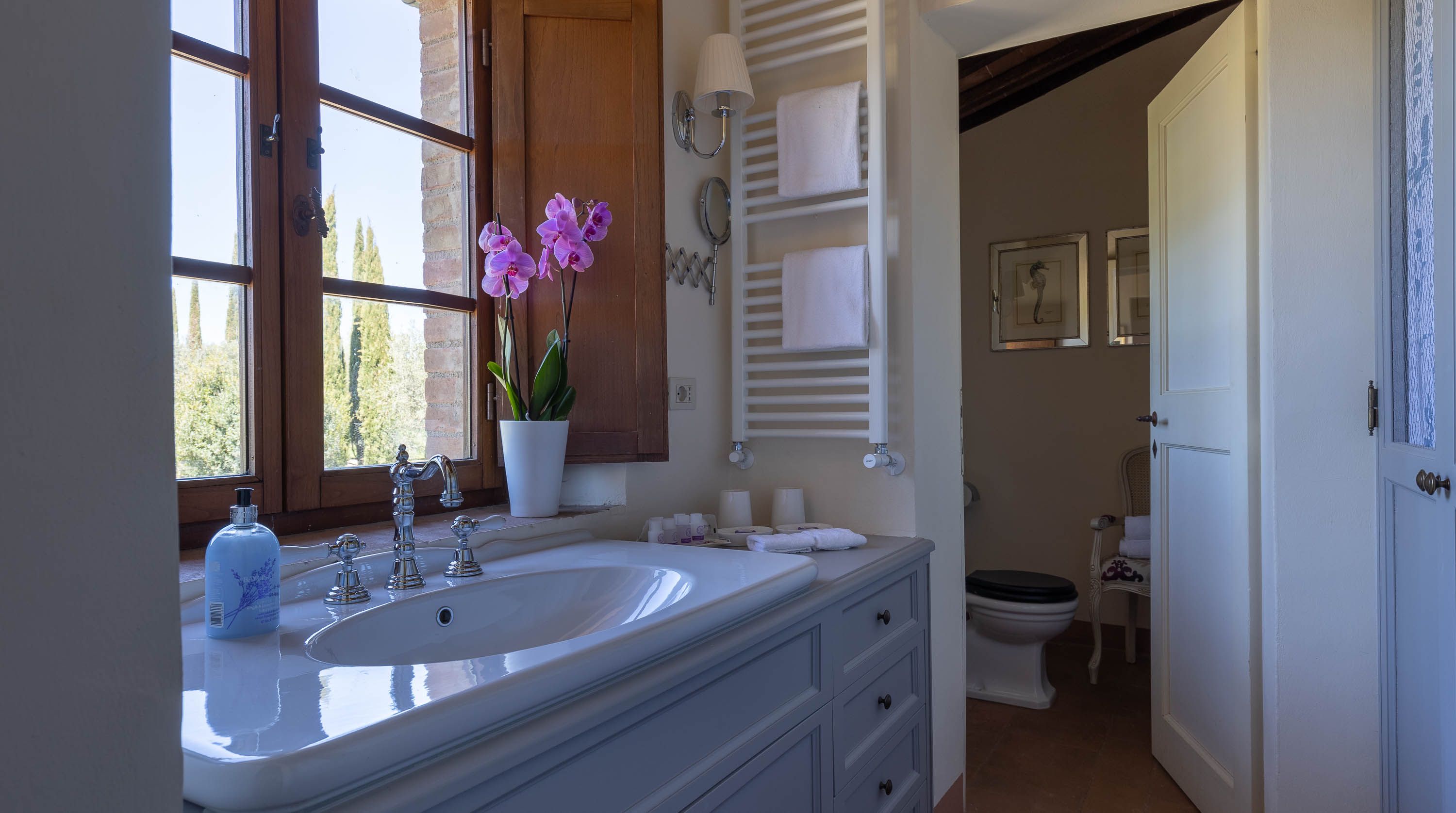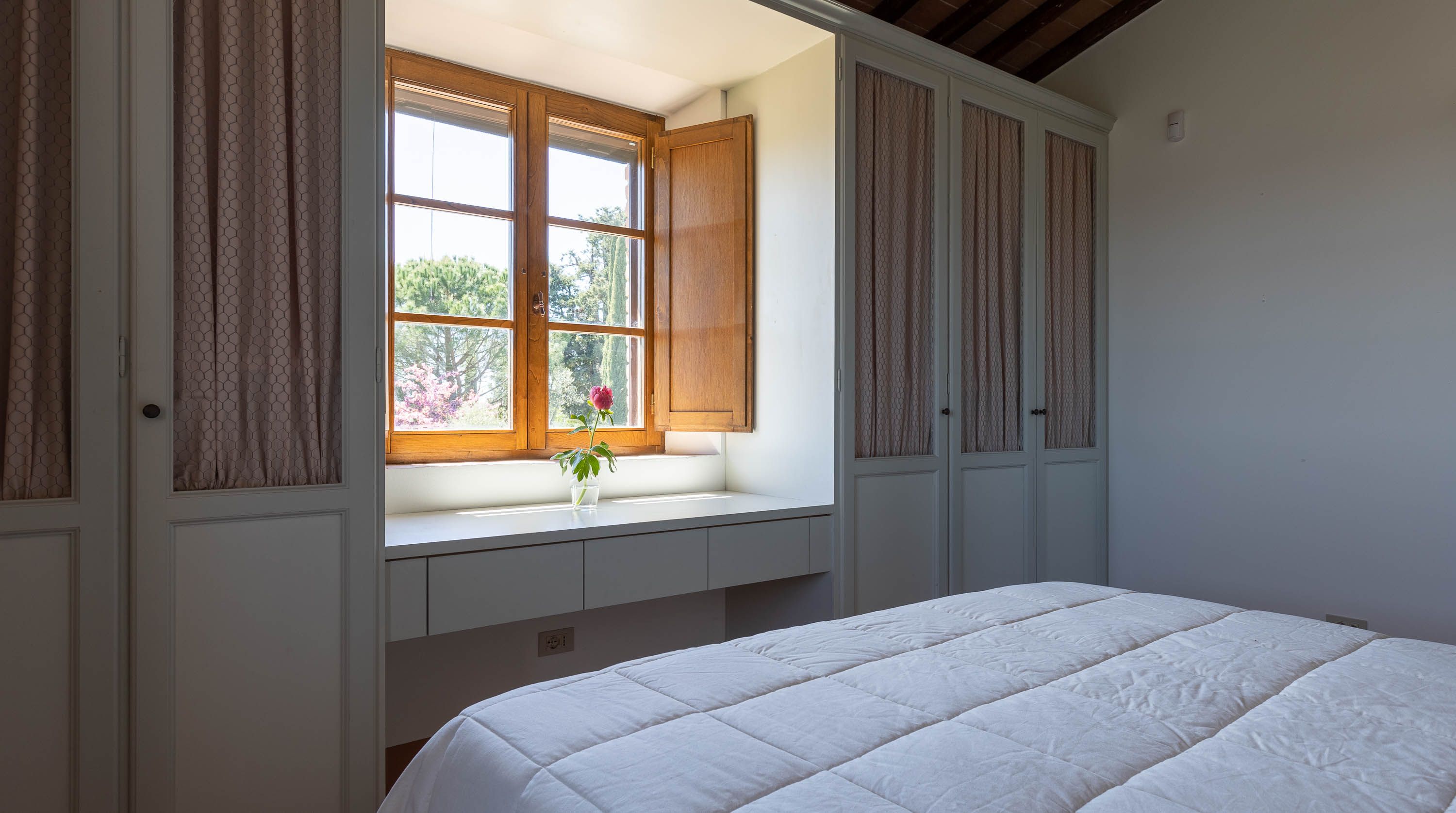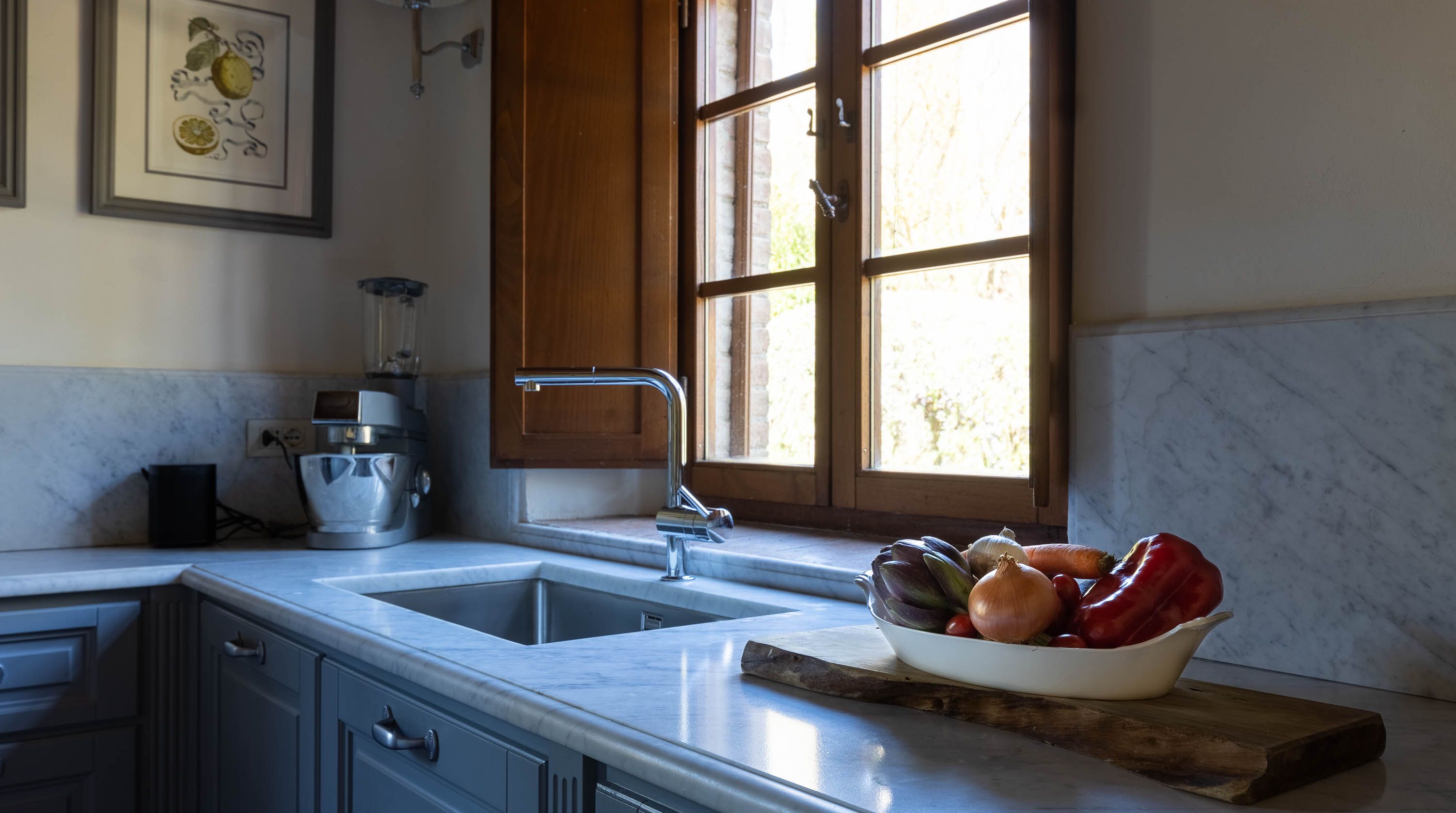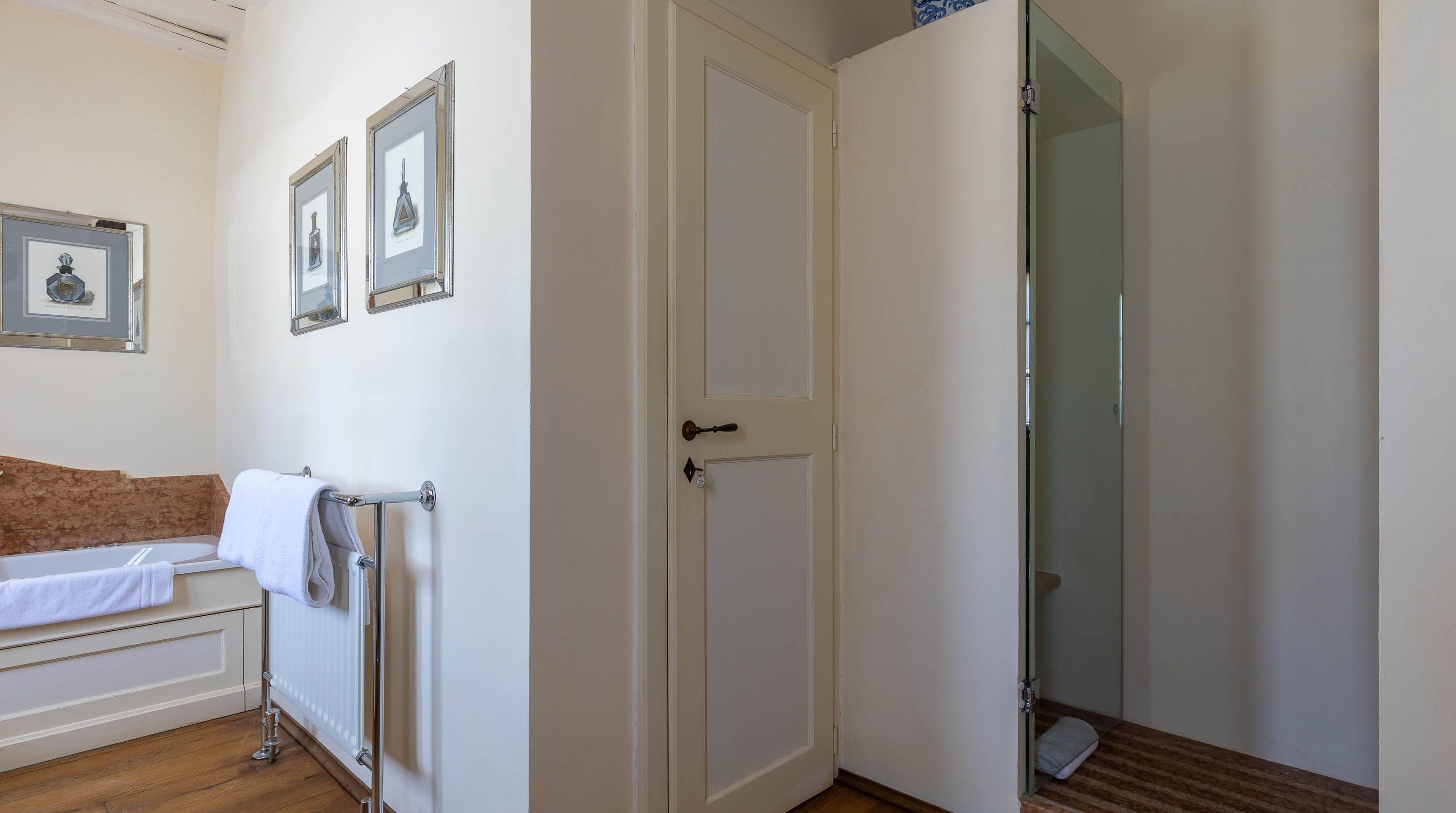 Accessible via an unpaved, cypress-lined road and perched on sloping, vineyard-covered hills, this stylish stone villa is Tuscany at its best. Whether you’re here for an intimate wedding or a big family holiday, the place will set your heart pounding. The interiors have preserved the grace of earlier ages while adding the essential modern cons and amenities. Exposed wood beam ceilings, tiled floors covered with vibrant carpets, and gorgeous vintage furniture make you feel at home, yet so far away from the current era. The master bedroom comes with a four-poster bed, and overall, all sleeping quarters exude a pampering feel accentuated by the gorgeous period furniture. We love the huge dining room, the walls of which are lined with well-stocked bookshelves. After a hearty meal, grab a book, amble outside to the sundeck and lose yourself in another world. When the warmth overwhelms you, take a cooling dip in the massive pool. In the evening you can savour wine and antipasti on the veranda or under the vine-wrapped pergola. If you get the itch to explore, a thirty-minute drive will take you to Siena where you can enjoy dining, shopping and sightseeing.