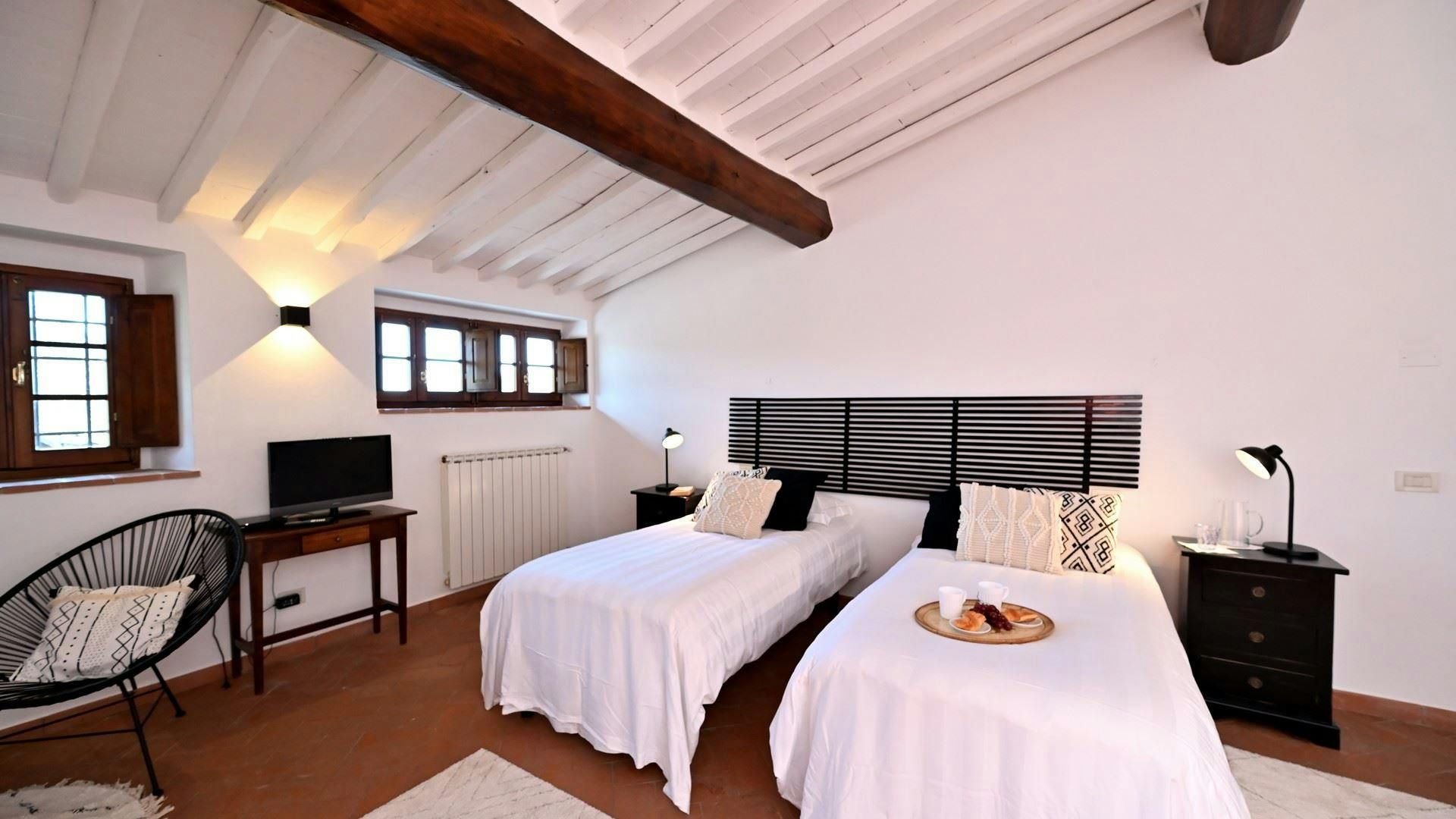 Nestled in the heart of the Tuscan countryside, this charming cottage offers a tranquil retreat for families or small groups. Set on a resort, if you’re not enjoying the privacy of the cottage garden or hot tub, you can take a refreshing dip in the shared pool, just a short stroll away, or challenge your friends to a game on the tennis court. With walking trails including the Dievole Natural Path on your doorstep, wine tasting, and nearby villages to explore, you’ll find the perfect blend of relaxation and adventure.