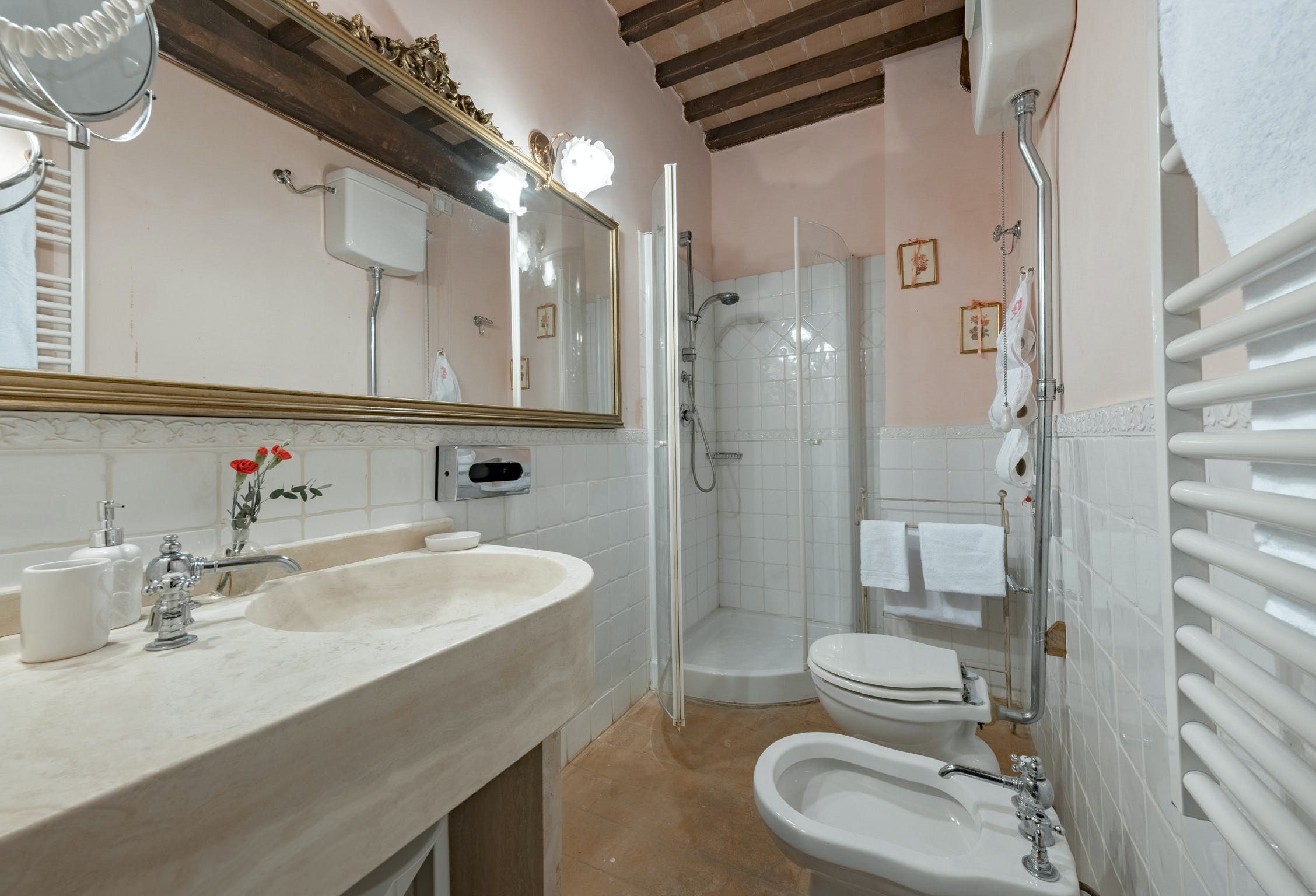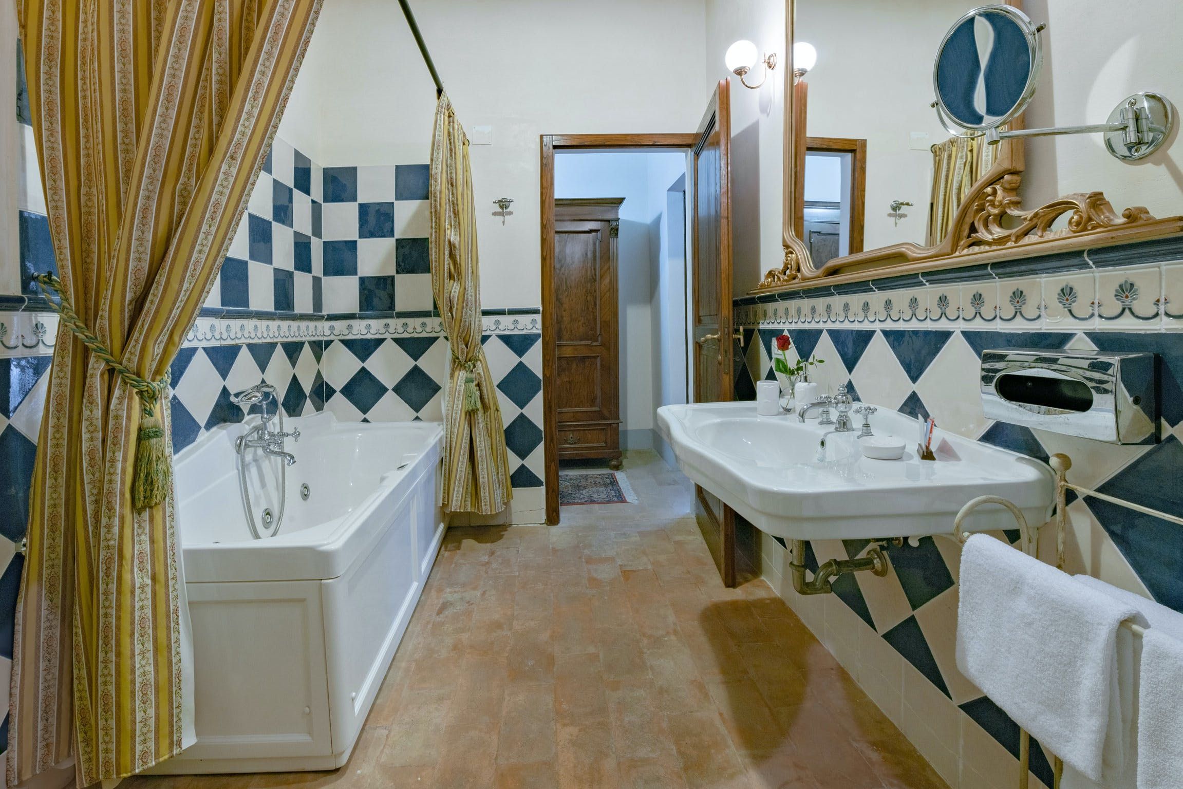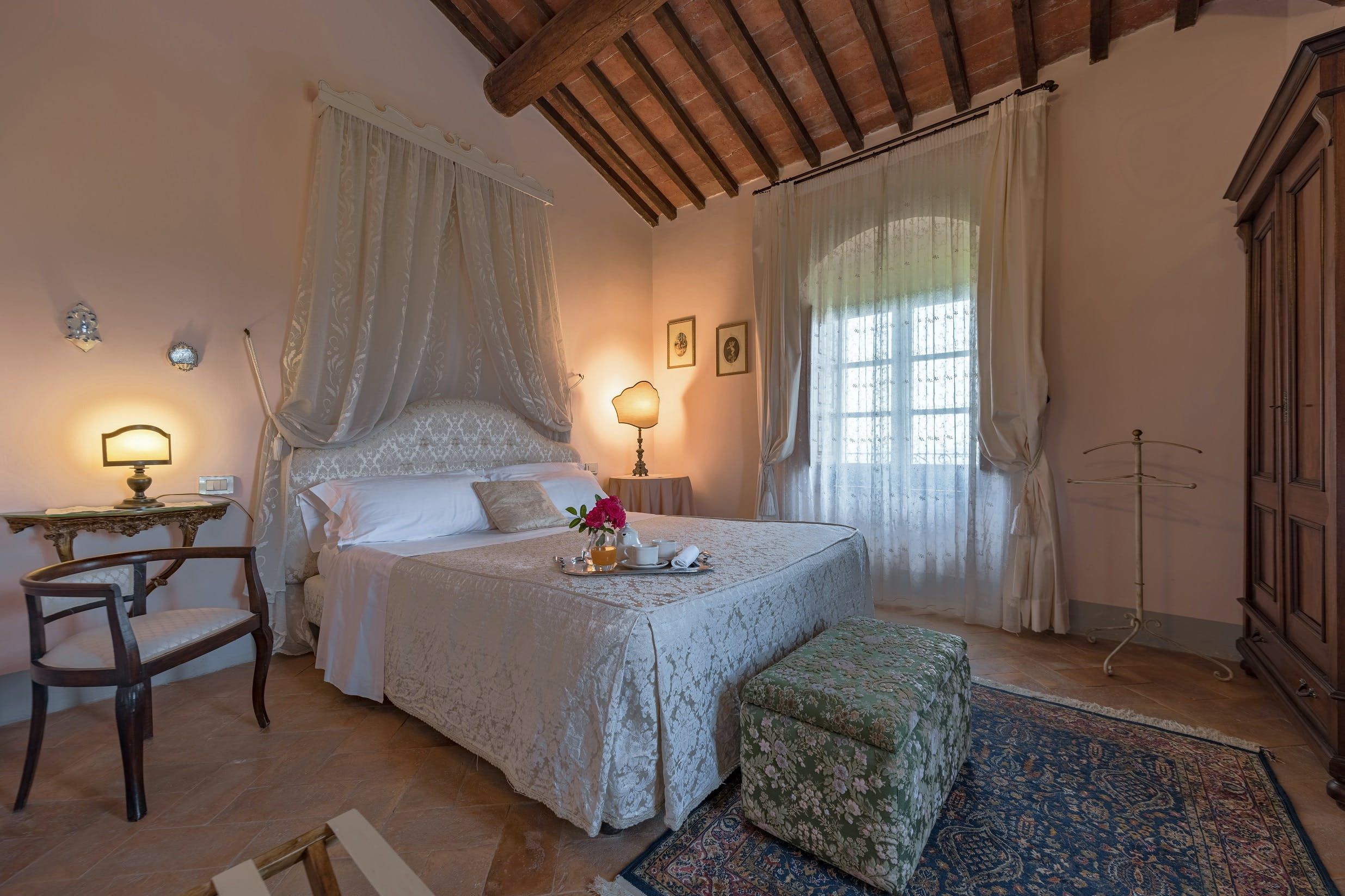 This Tuscan villa was once a hotel, so it’s well set up for large groups. All of the bedrooms are en-suite, there’s an industrial kitchen, and the huge lounge has plenty of sofas. With an indoor and outdoor pool, you can swim in every season here. Plus there’s a sauna and two of the en-suites have Jacuzzi bathtubs. The decor feels a little dated – particularly the bathrooms – but we love the formal dining room and the conservatory overlooking the Tuscan countryside. Located in the centre of Valdichiana, there are plenty of opportunities for hiking in the area. Or you can jump in the car for a day trip to the hilltop town of Cortona or the Medieval city of Arezzo.