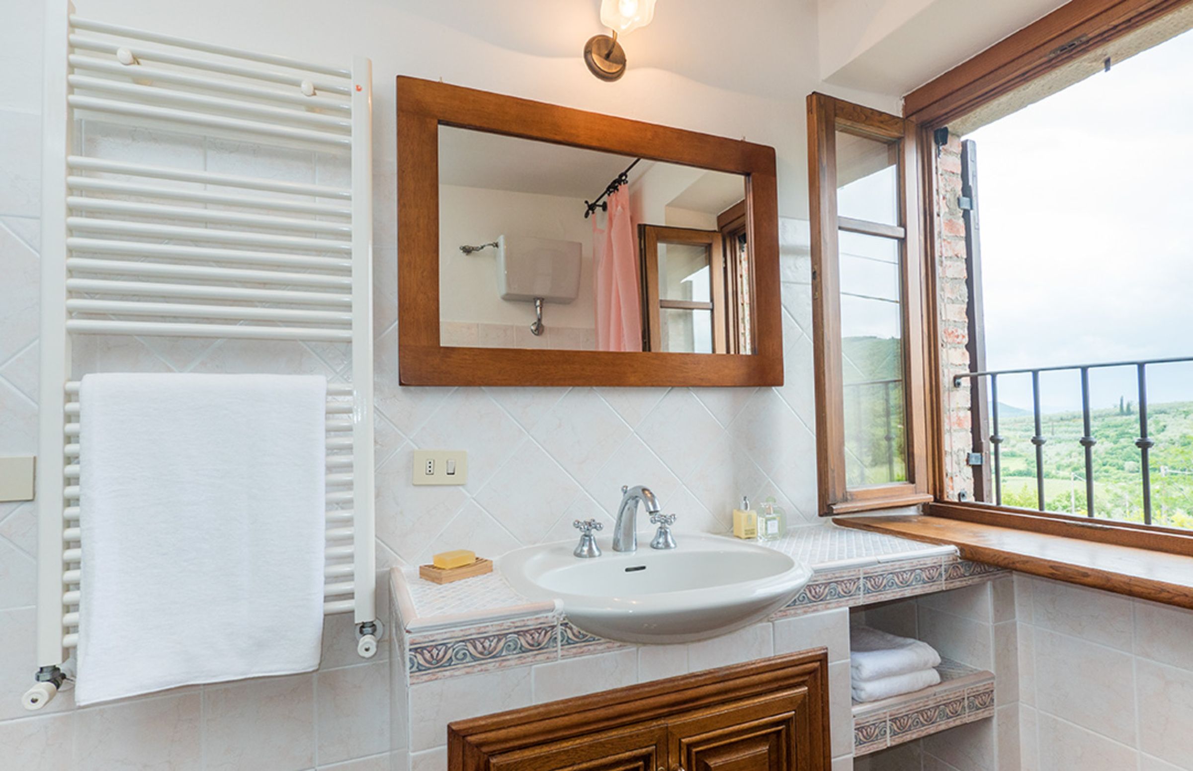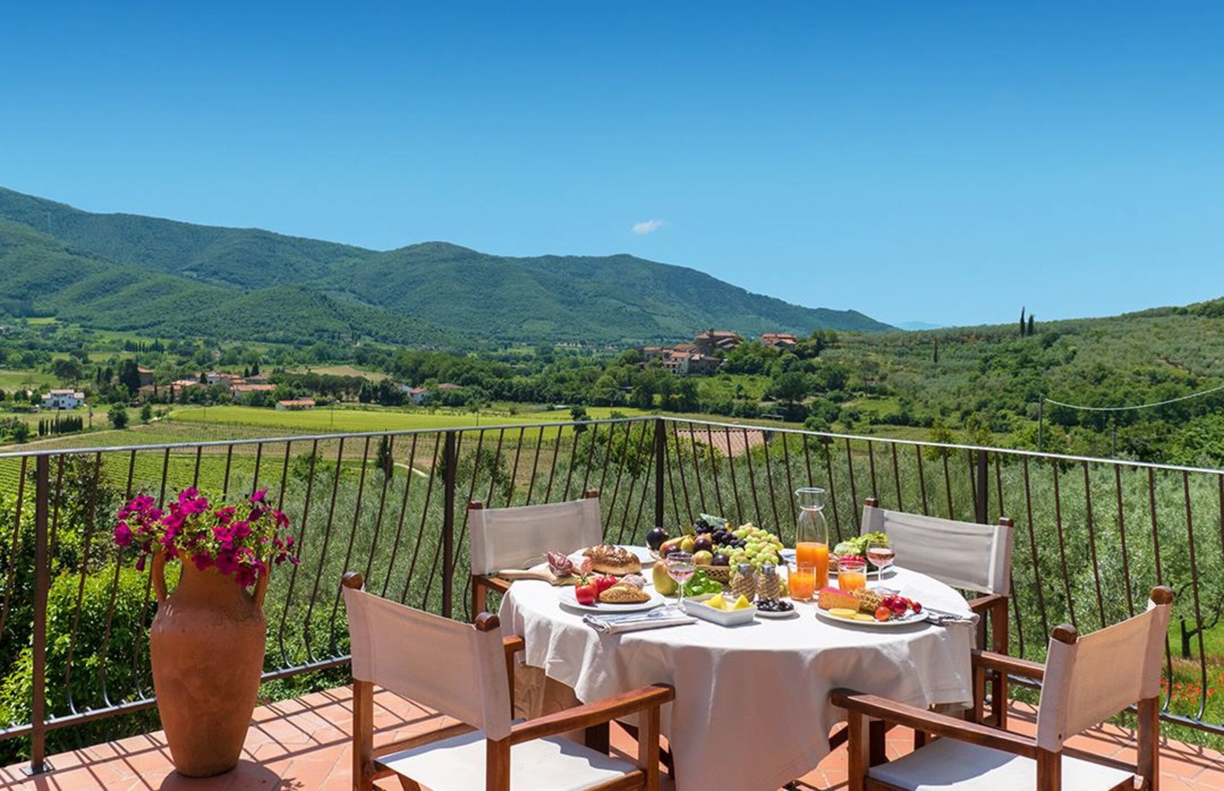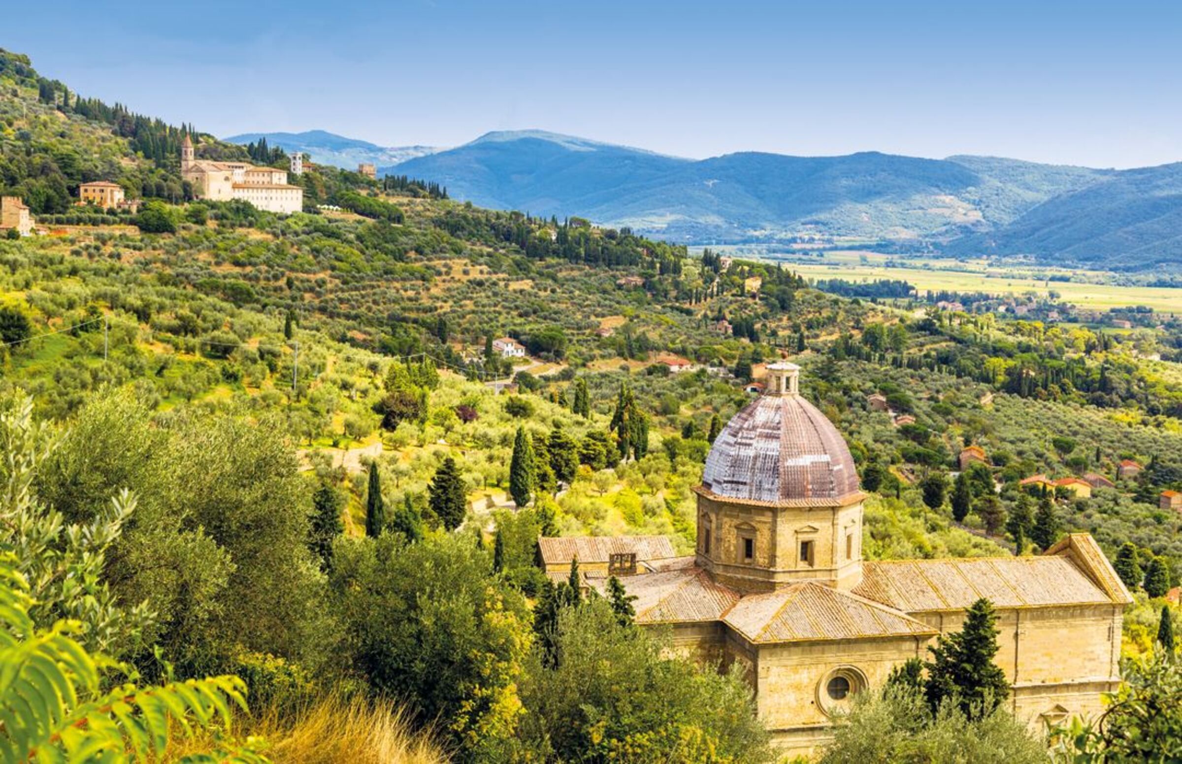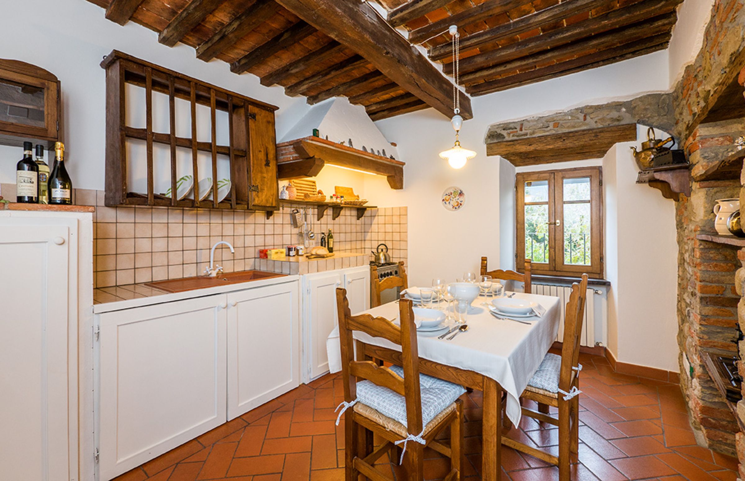 A truly idyllic escape to rural Tuscany requires rolling hills, a rustic farmhouse and panoramic views across olive groves and vineyards. And you'll have all of this and more at this beautiful home deep in the countryside between Arezzo and Cortona. Surrounded by its own lush, terraced gardens, it's a stone-built gem with flexible accommodation to suit a large group. Packed with character features, you'll be welcomed by tiled floors, ancient wooden beams and traditional shuttered windows. The main house is divided into two apartments, each boasting its own kitchen and cosy living room, and with two bedrooms on each of the two floors. Allowing for as much or as little socialising as you require, there's also a stunning dining room with a table big enough to seat up to ten guests. And it has its own kitchenette to make life easier. Elsewhere in the garden, you'll find an additional one-bed guesthouse with its own bathroom – perfect if you really value your privacy. Spend your days swimming in the private pool on a lower level of the garden and eating outside on the huge terrace, pouring local wine and admiring the incredible views. If you want to do some shopping, Arezzo is just half an hour away by car, with Cortona and the Valdichiana Outlet Village around the same.