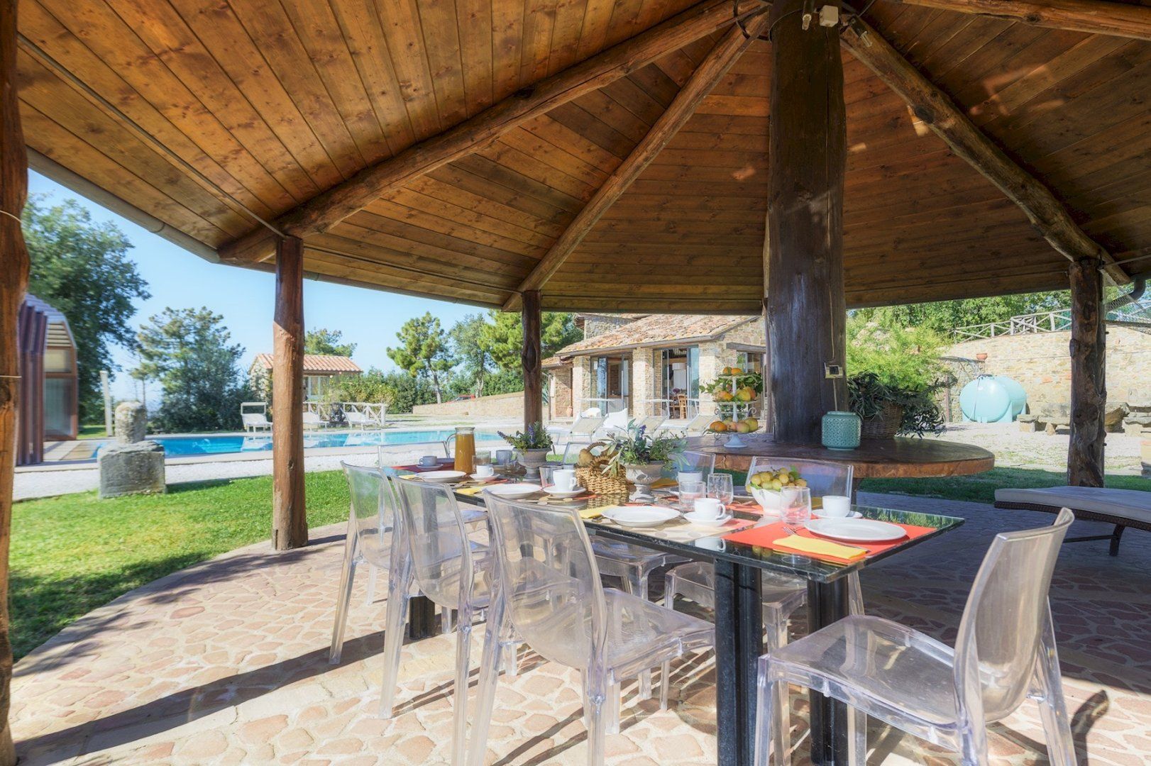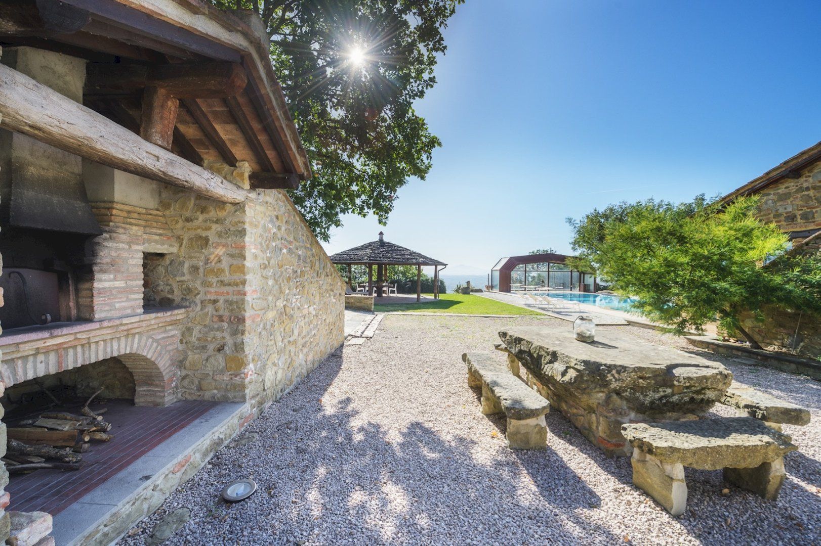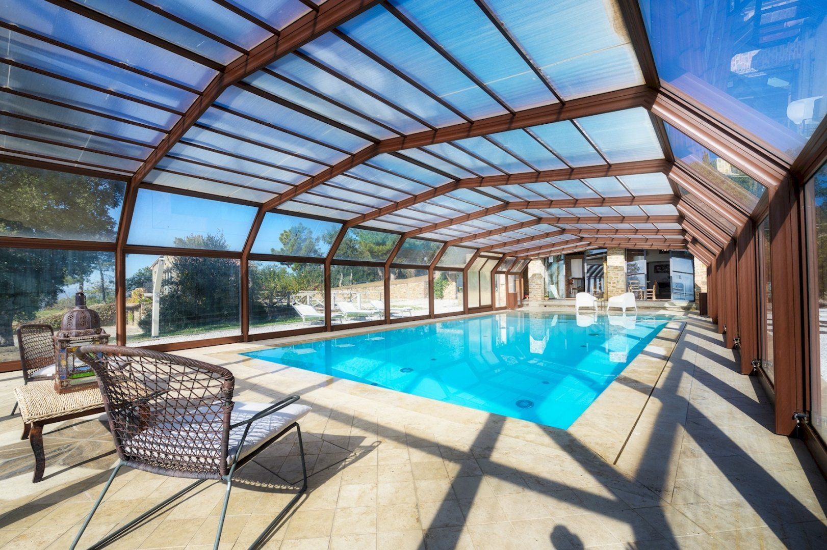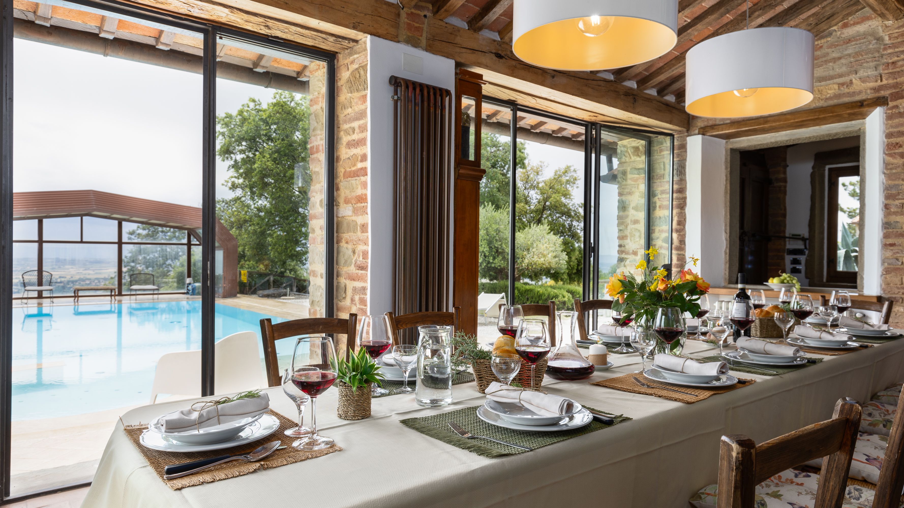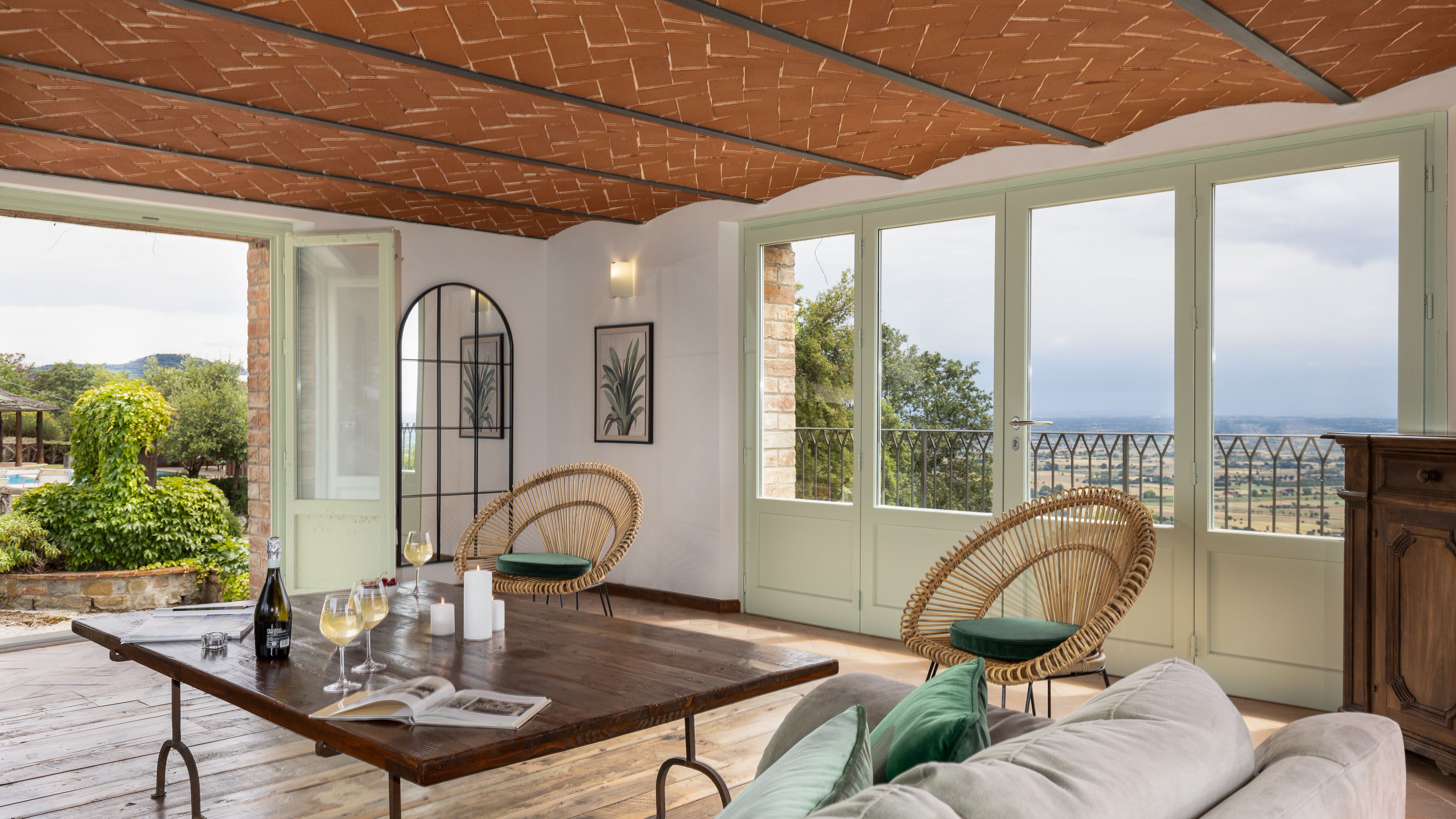 Nestled quietly in the countryside, this beautiful home will enchant you from the moment you first set eyes on it. With views over the Val di Chiana and Cortona, this home has it all – stunning stonework, exposed beams, comfortable furnishings and rich gardens. Spend your days swimming in the panoramic infinity pool which is unique, thanks to its telescopic closure system – close the walls and roof and you can access the pool directly from the living room.