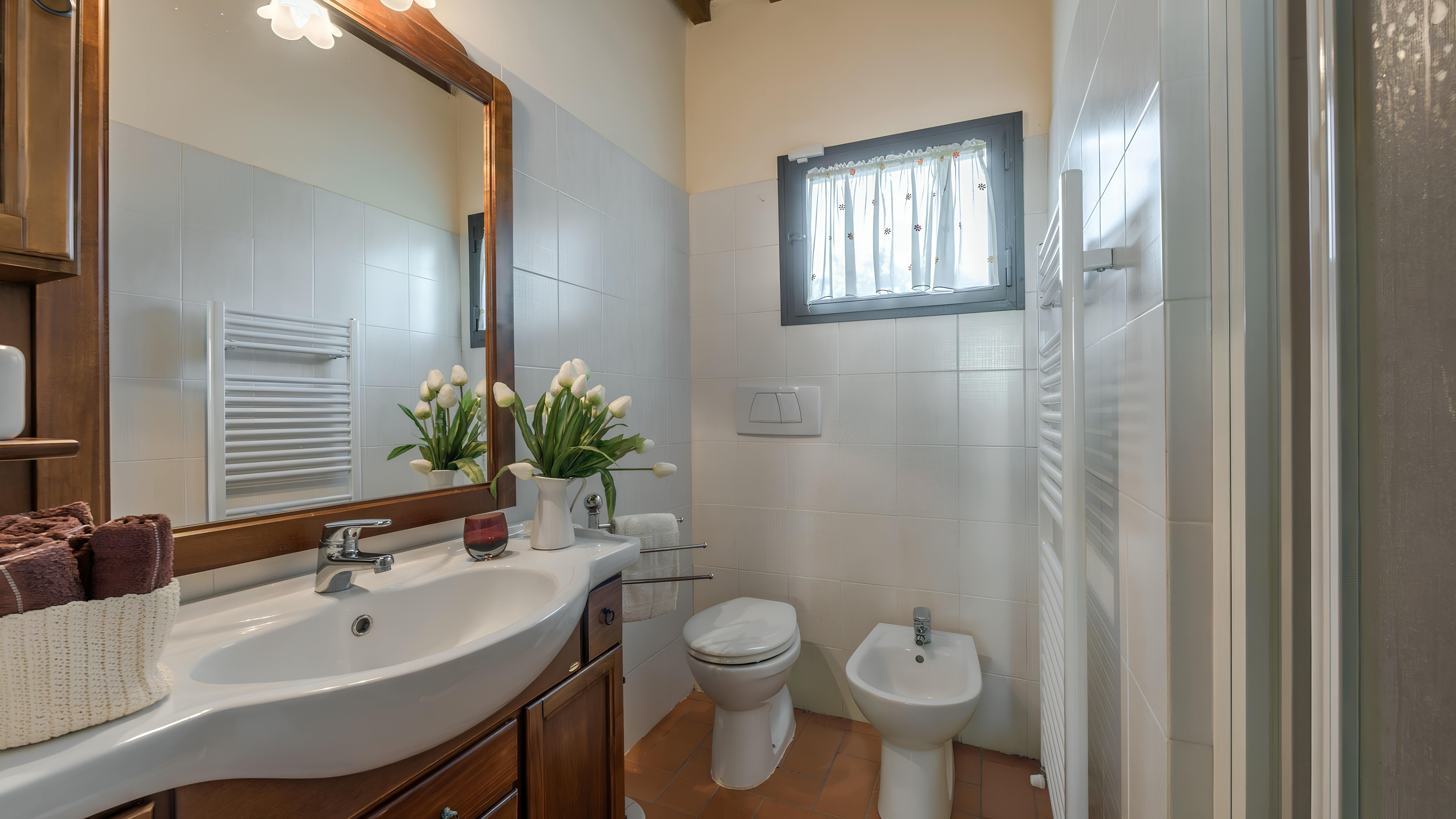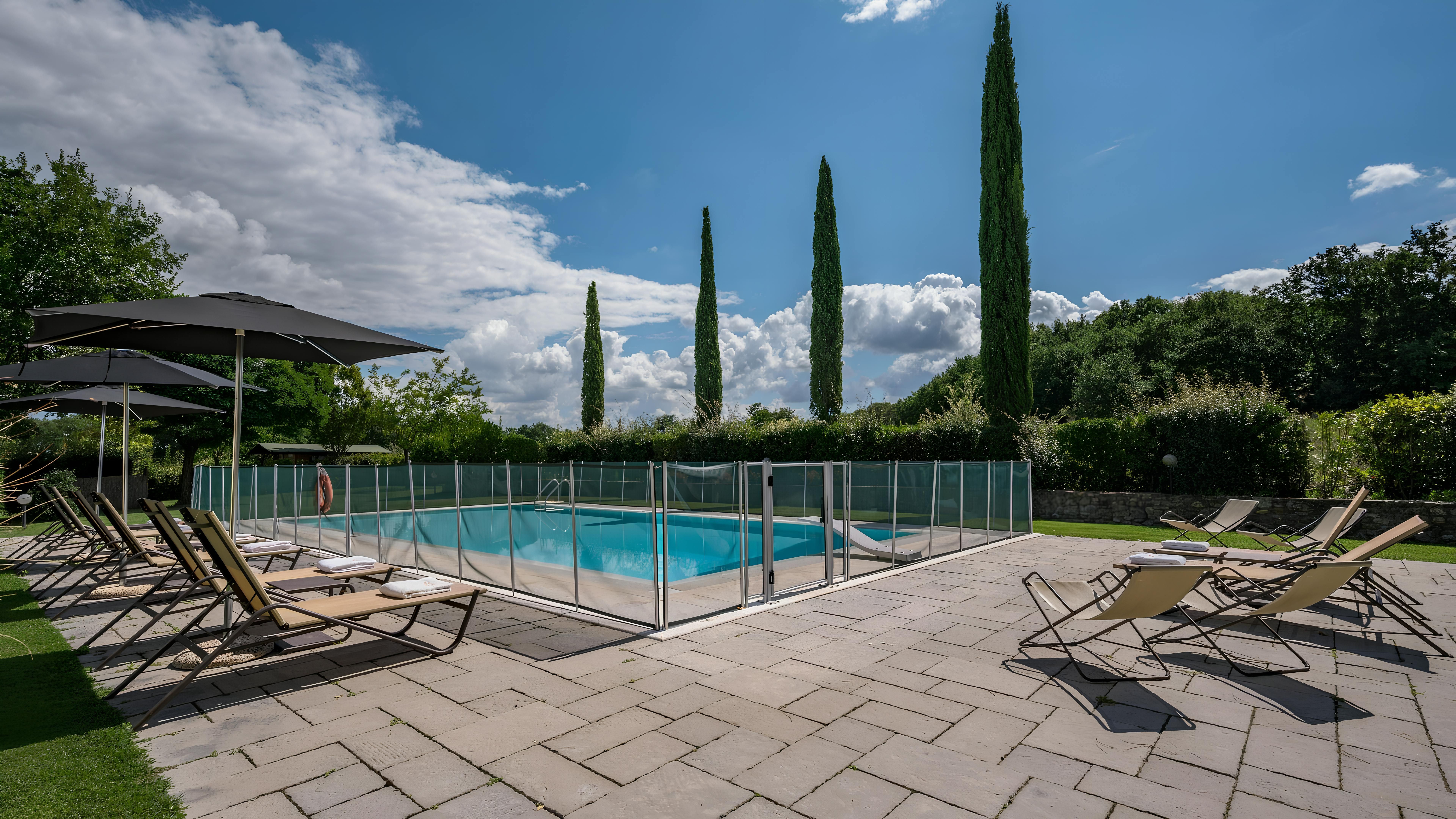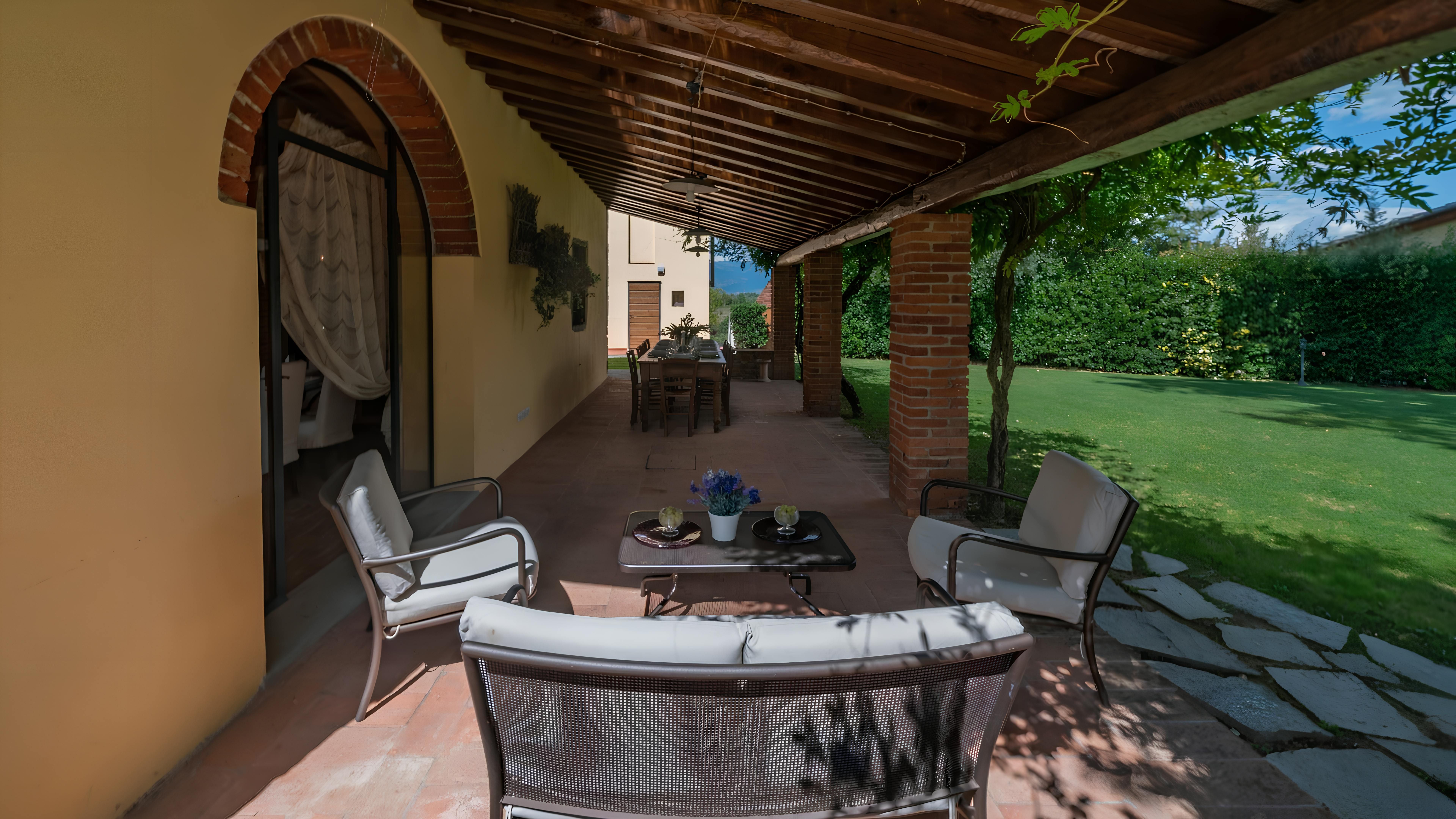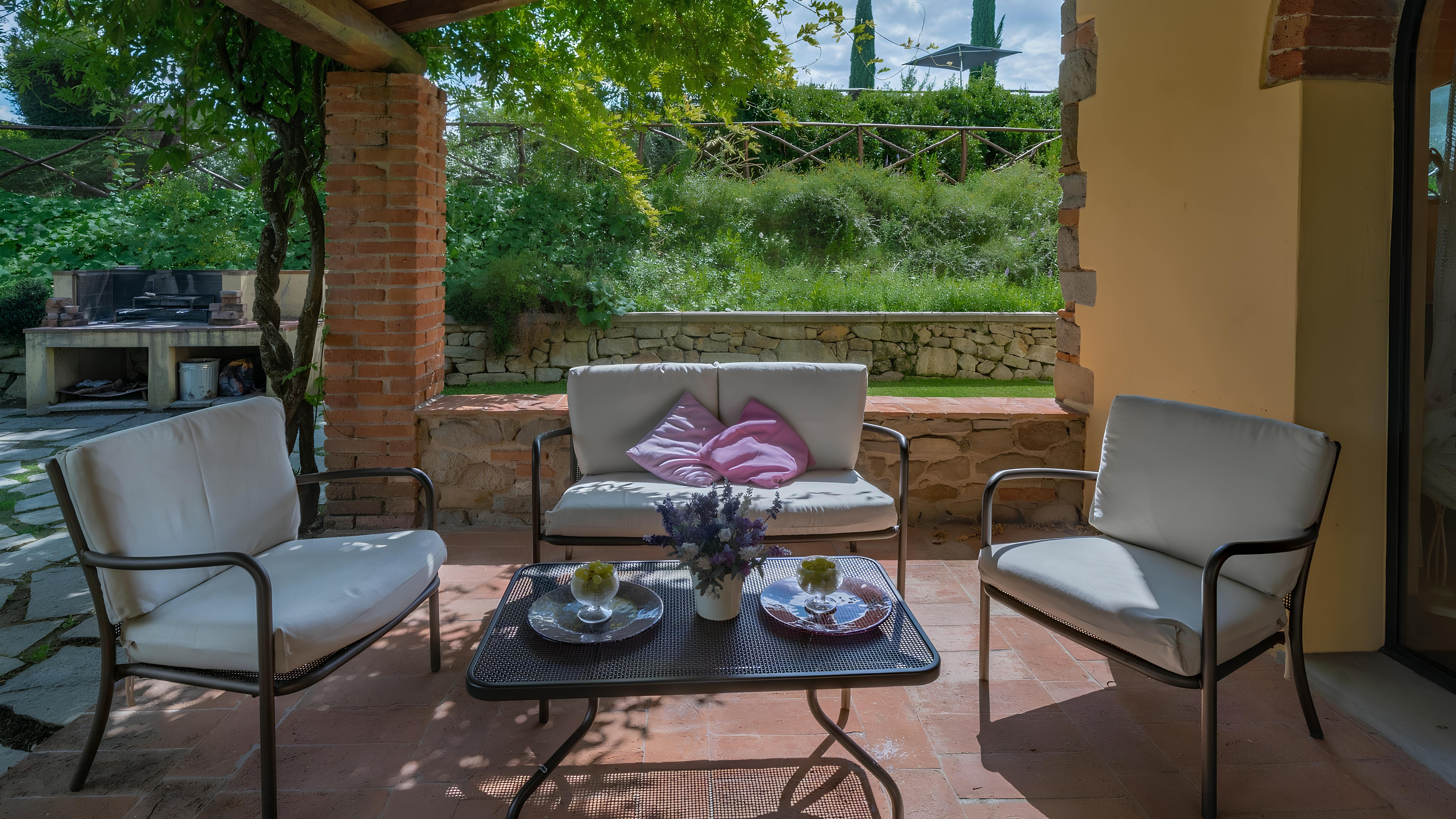 This beautiful Tuscan home caught our attention due to its inspiring views and ample outside living space. Consisting of a farmhouse and a cottage, you'll have access to the well-kept gardens and lovely terraces to help you soak up the rural setting. We think it's a perfect fit for families, due to the abundance of space and fully-fenced swimming pool (complete with a diving board) – plus you've got a table tennis area, sun loungers, a pergola with deck chairs and a covered patio for alfresco suppers. Though you will need a car to explore the region, you'll find the beautiful town of Levane nearby for local amenities.
