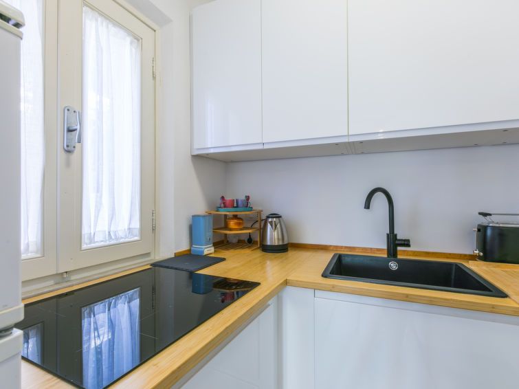 "La Casetta", 2-room apartment. Comfortable and cosy furnishings: living/dining room with TV and air conditioning. 1 double bedroom with 1 bed, 1 wall-trunk bed and air conditioning. Kitchenette (dishwasher, 4 induction hot plates, kettle, microwave, electric coffee machine). Shower/bidet/WC.
