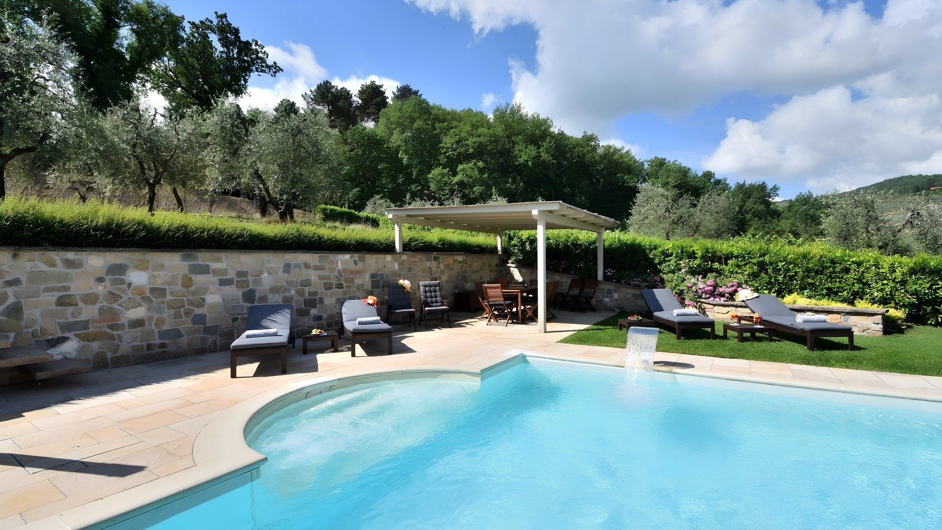 This Tuscan villa is perfect for those seeking a tranquil country retreat – set amidst the rolling green hills of the Arezzo province, the place offers lovely views and plenty of privacy. The outdoors boasts a large swimming pool and a hot tub, as well as a lush garden and an alfresco dining area. The interior is all about that rustic charm – while some of the furnishings and the overall style may be a bit old-fashioned, we love the authentic character of this home. Bear in mind that a car is necessary here in order to explore the area and reach the shops and restaurants in the town of Gaiole.
