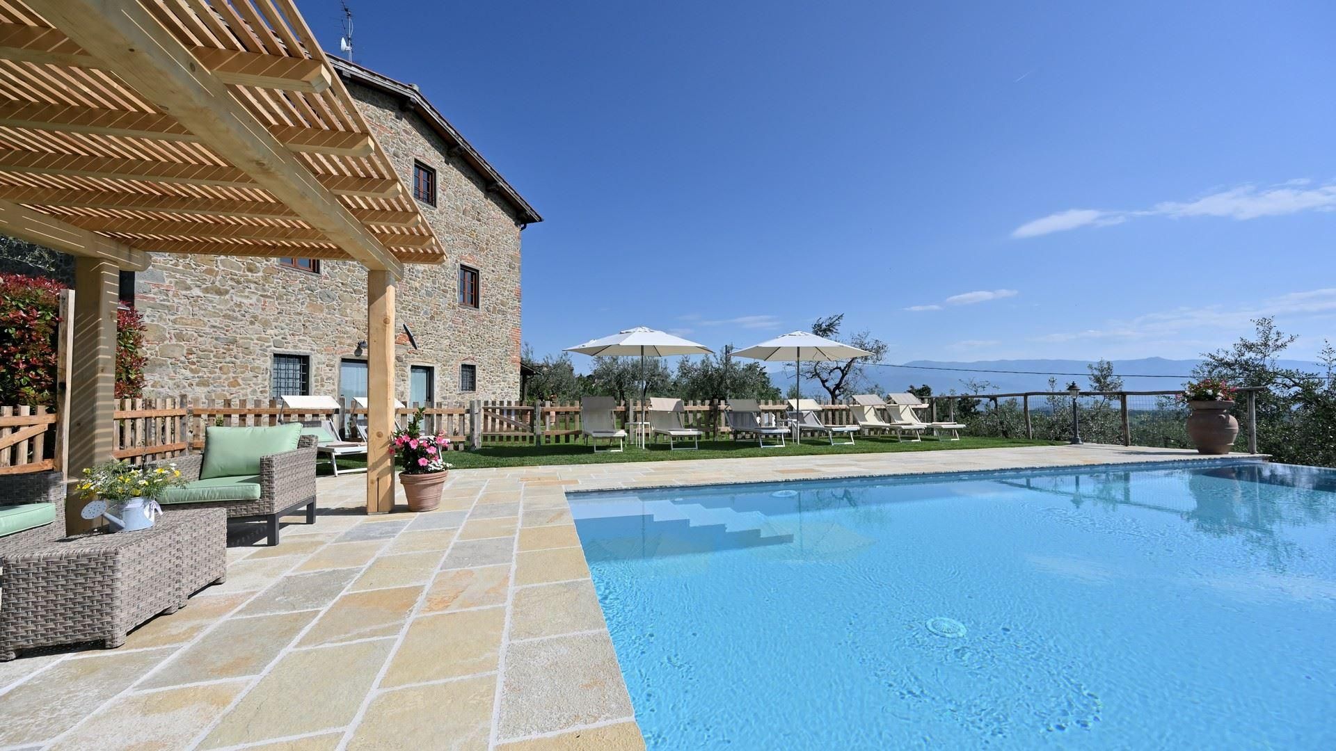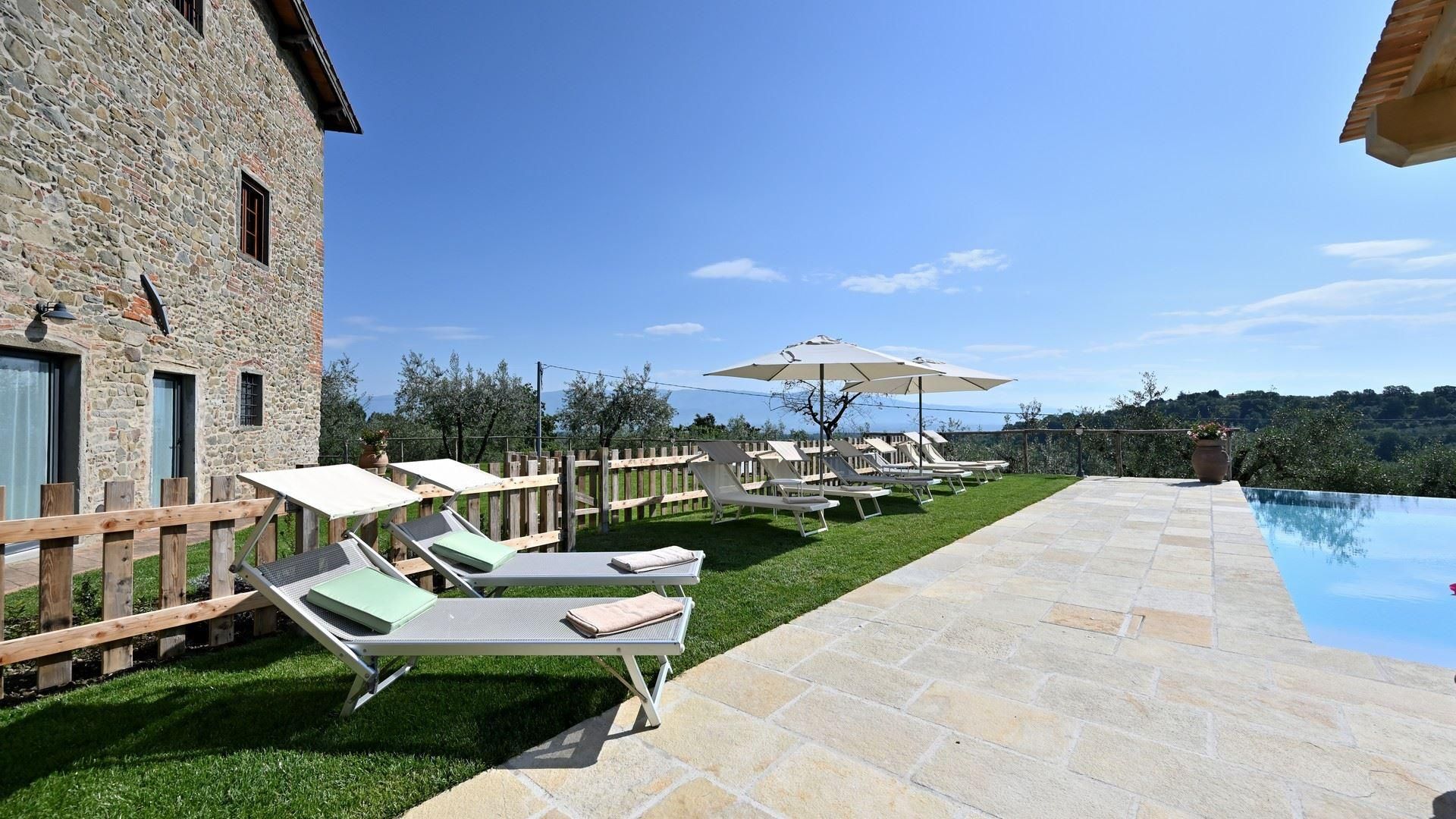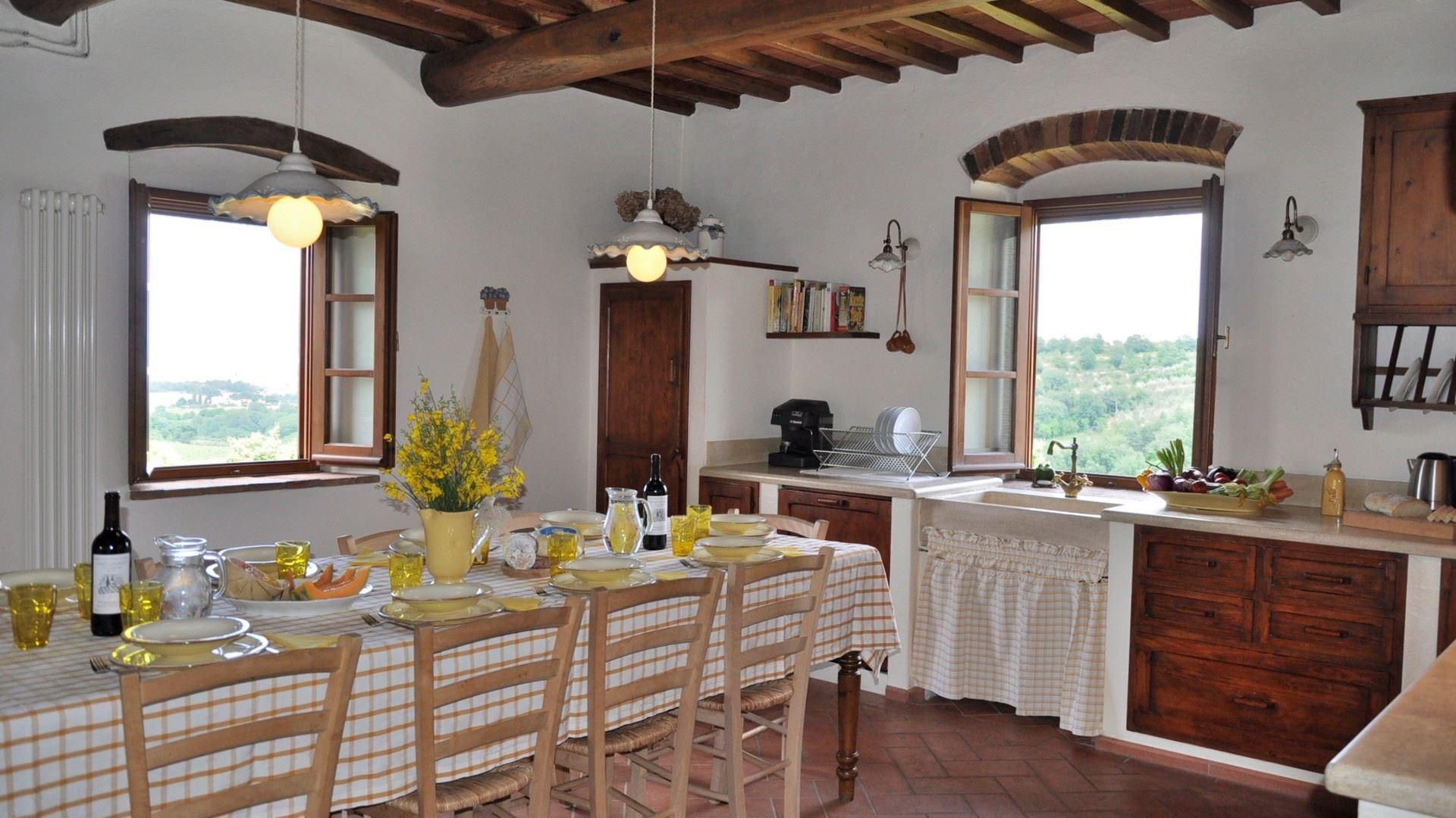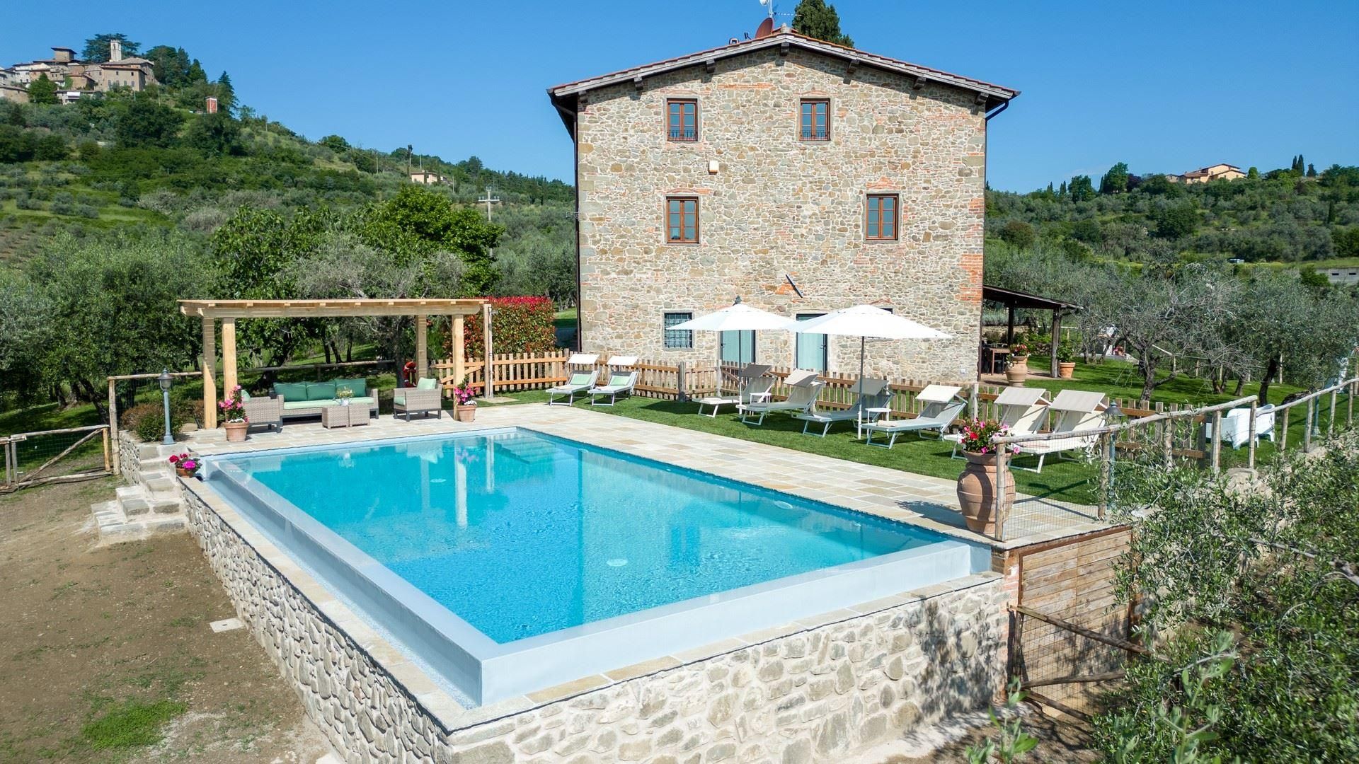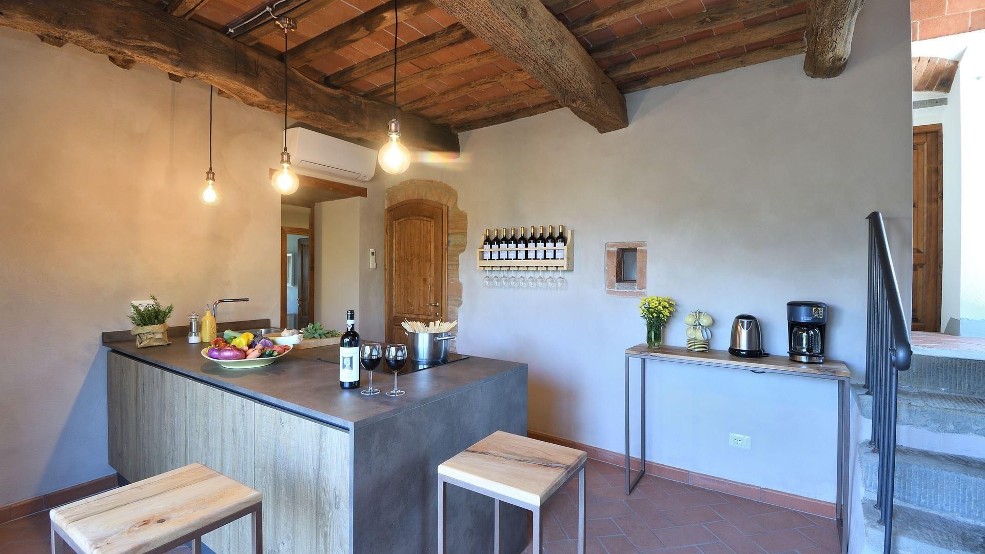 Buried deep within the vineyards and olive groves, this rural retreat offers ample outside space for those wanting a quiet getaway to Tuscany. The interiors are rustic and traditional, so the decor won't be to everyone's taste, but most of your time will be spent outside. With a well-kept garden and private swimming pool, there's plenty of space to while away the afternoons here. Alfresco meals are best enjoyed on the covered dining patio, although, the neighbouring hamlet of Montegonzi offers authentic eateries and bars if you don't feel like cooking. You'll need a car to explore but prepare for a hilly, uneven drive at times.