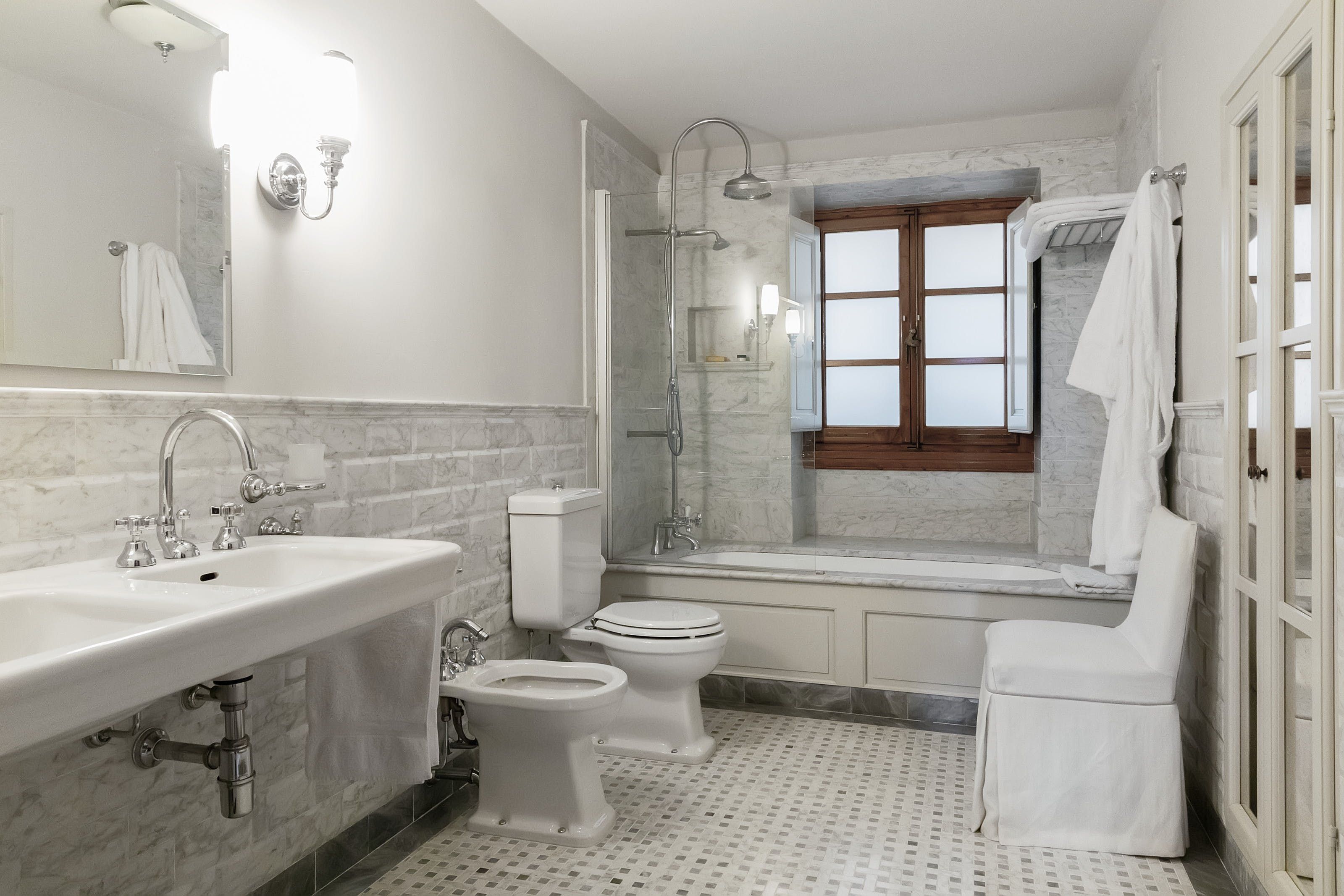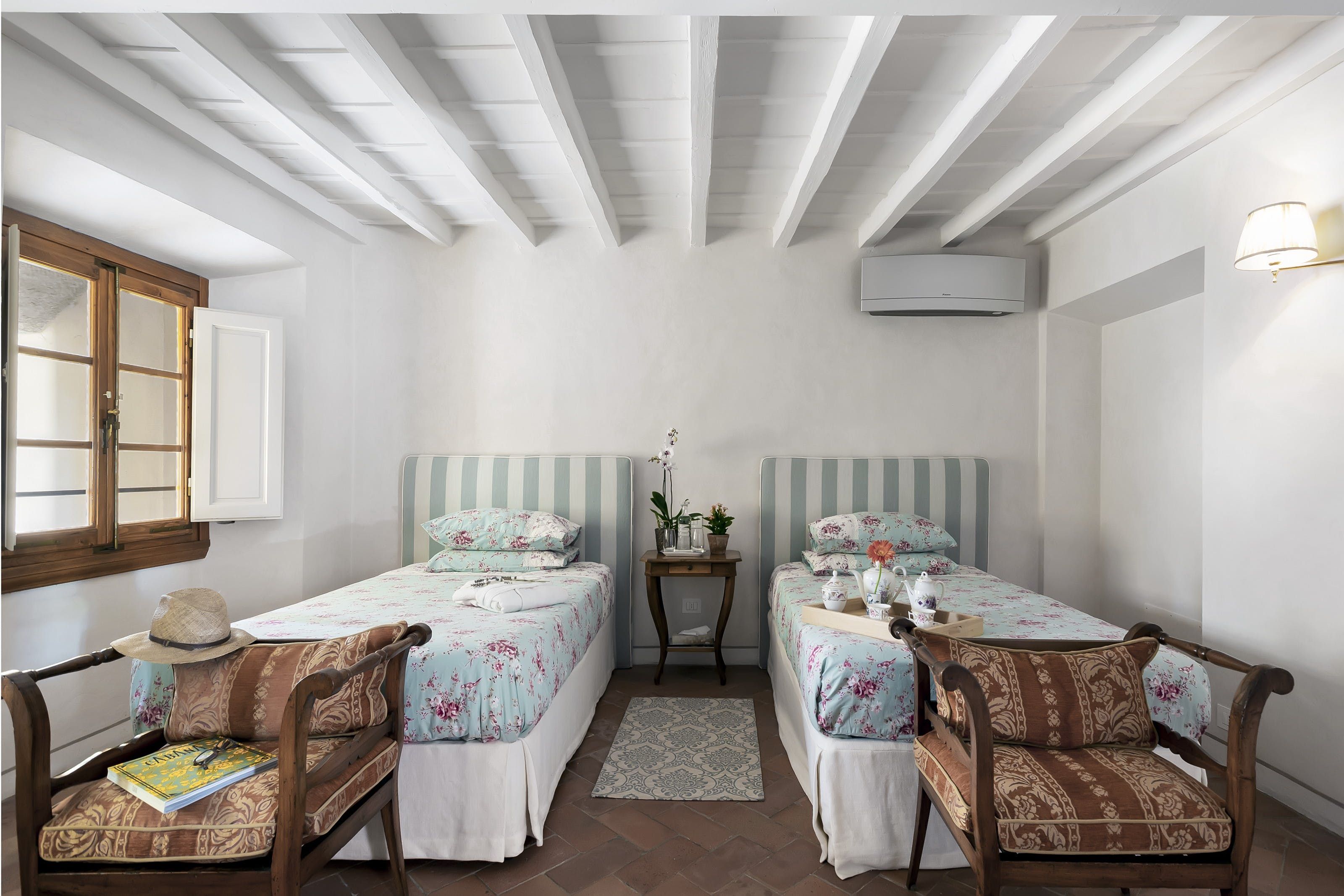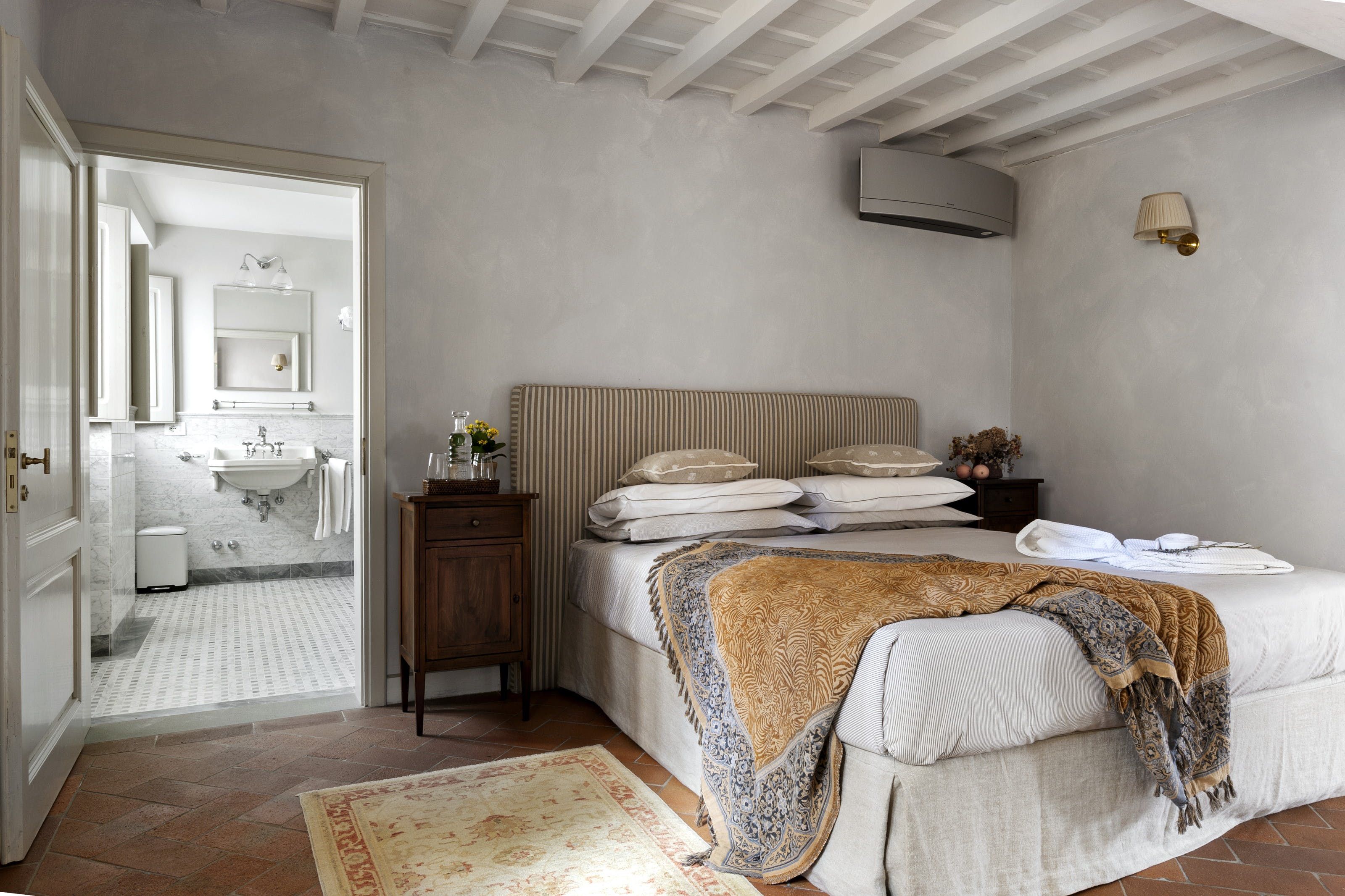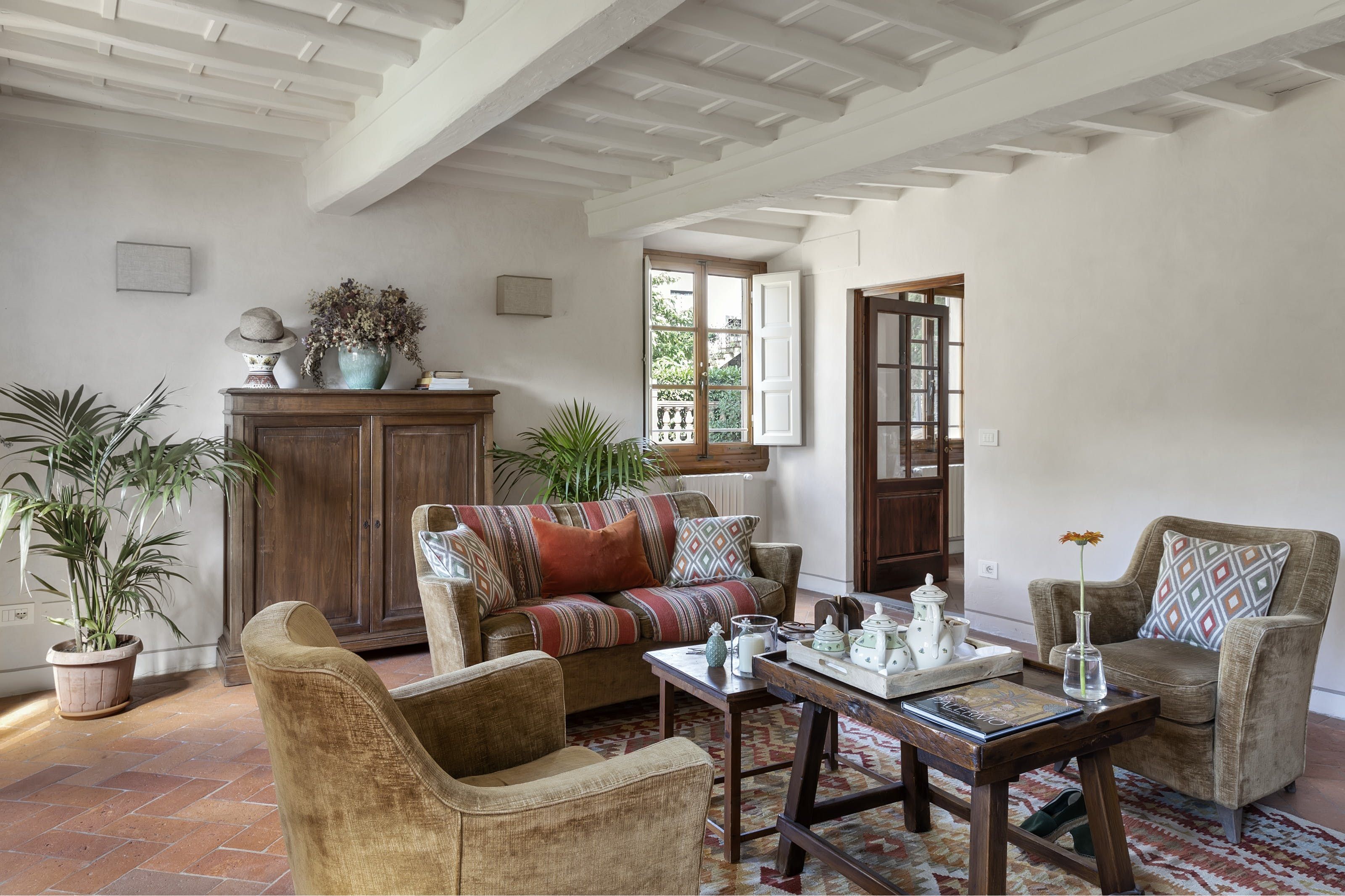 Step inside your apartment, and you'll discover a typically Tuscan scene, with tiled terracotta floors, exposed wooden ceilings and frescoes painted directly on the walls. Four individually decorated bedrooms, each as enchanting as the last, will serve as your soothing sanctuaries for you to unwind at the end of each day. The spacious interior includes not one but two seating areas, so you can always claim a secluded spot as your own for the afternoon if you want to get lost in the pages of a good book. Meanwhile, the kitchen and dining area are perfect for sociable meals with family and friends in true Italian style.