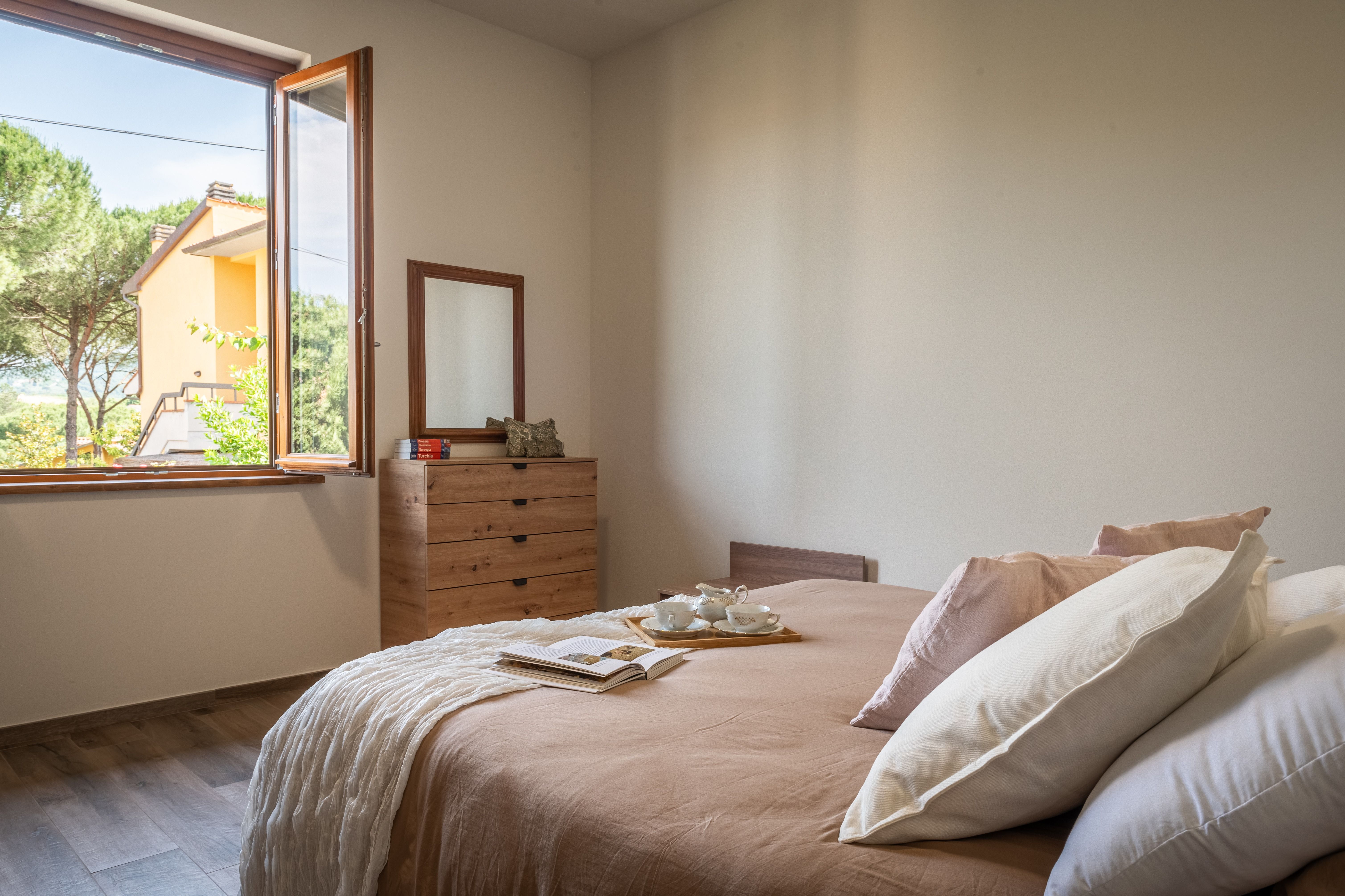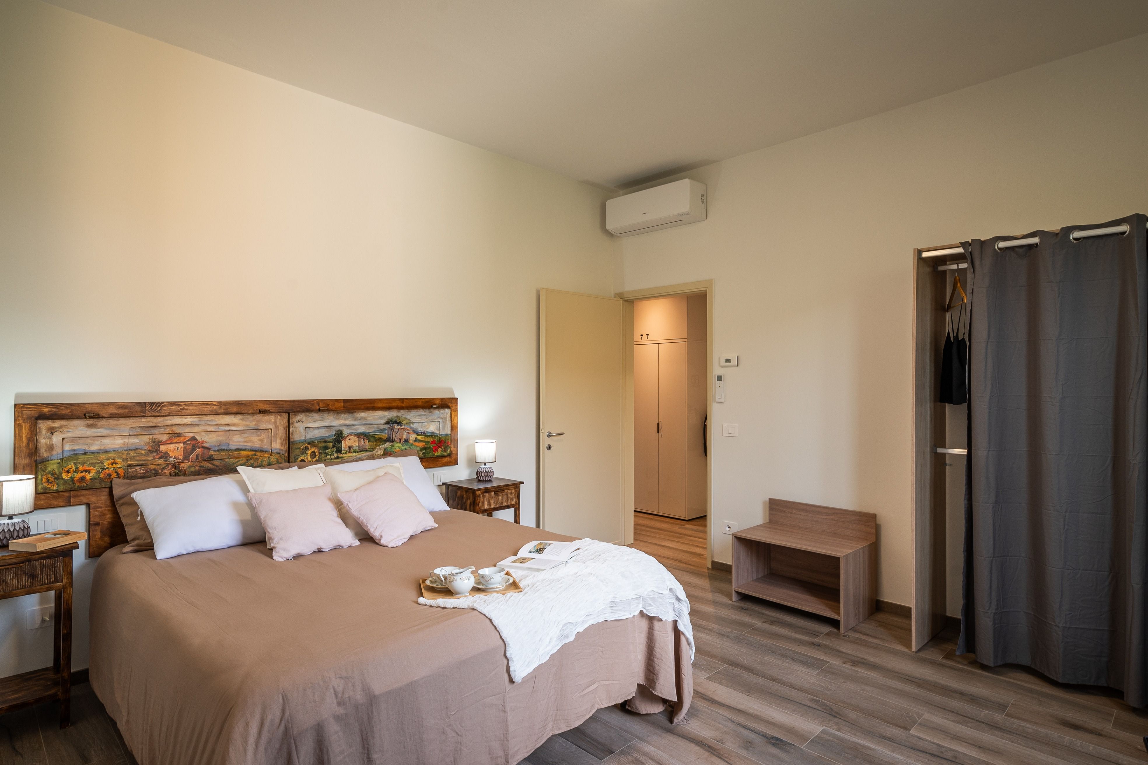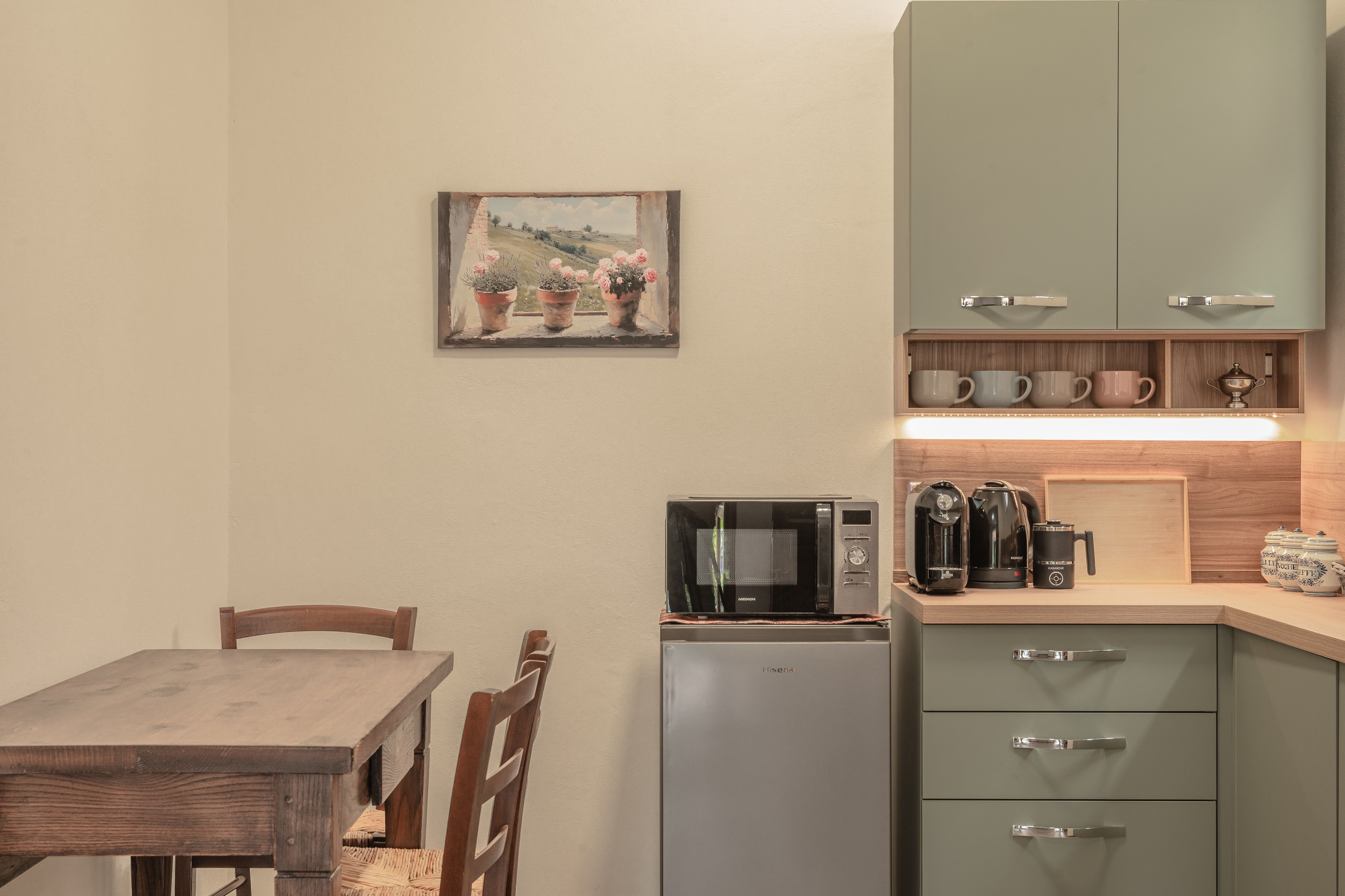 You'll find this cosy apartment a forty-minute drive from central Florence. It's the ideal base for a couple looking to be close to the Tuscan countryside, yet still within easy reach of the city for some sightseeing. A car is a must, but private parking is available for easy exploration. Inside, there's a small kitchenette that's best for breakfast. The living area is traditional but comfortable, offering a sofa bed for the third guest. Outside, a small sunny terrace is the perfect spot to perch with a glass of wine and admire the hillside views.