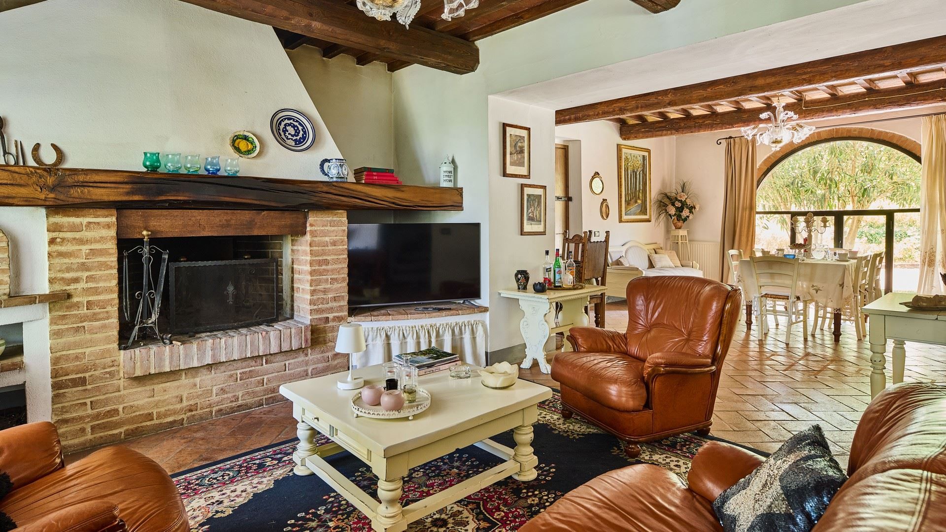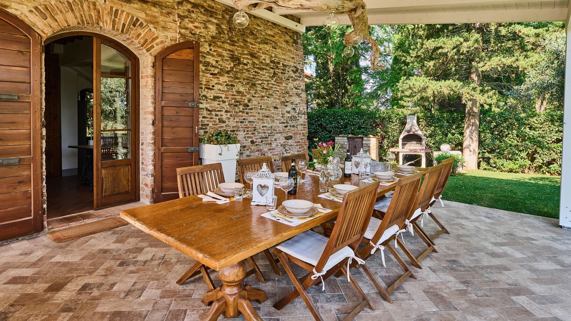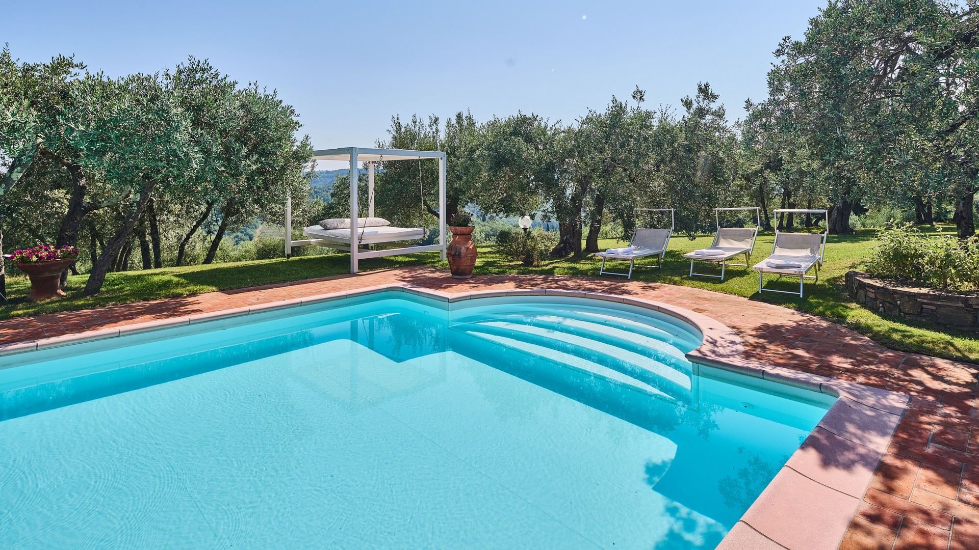 Tucked into the vine-covered Tuscan hills, this home promises an idyllic escape from day-to-day life. Sure, the traditional interiors may not be everyone’s cup of tea, but you’ll find everything needed for a comfortable stay here and plenty of room to spread out and relax. The outdoor space is sure to become a favourite for the whole group, with sun beds, alfresco dining spots, and a private pool to enjoy. Ready to explore the local area? We recommend a trip to Certaldo. Here, you can take the funicular up to the old walled settlement or dine out on authentic Italian cuisine to your heart’s content.