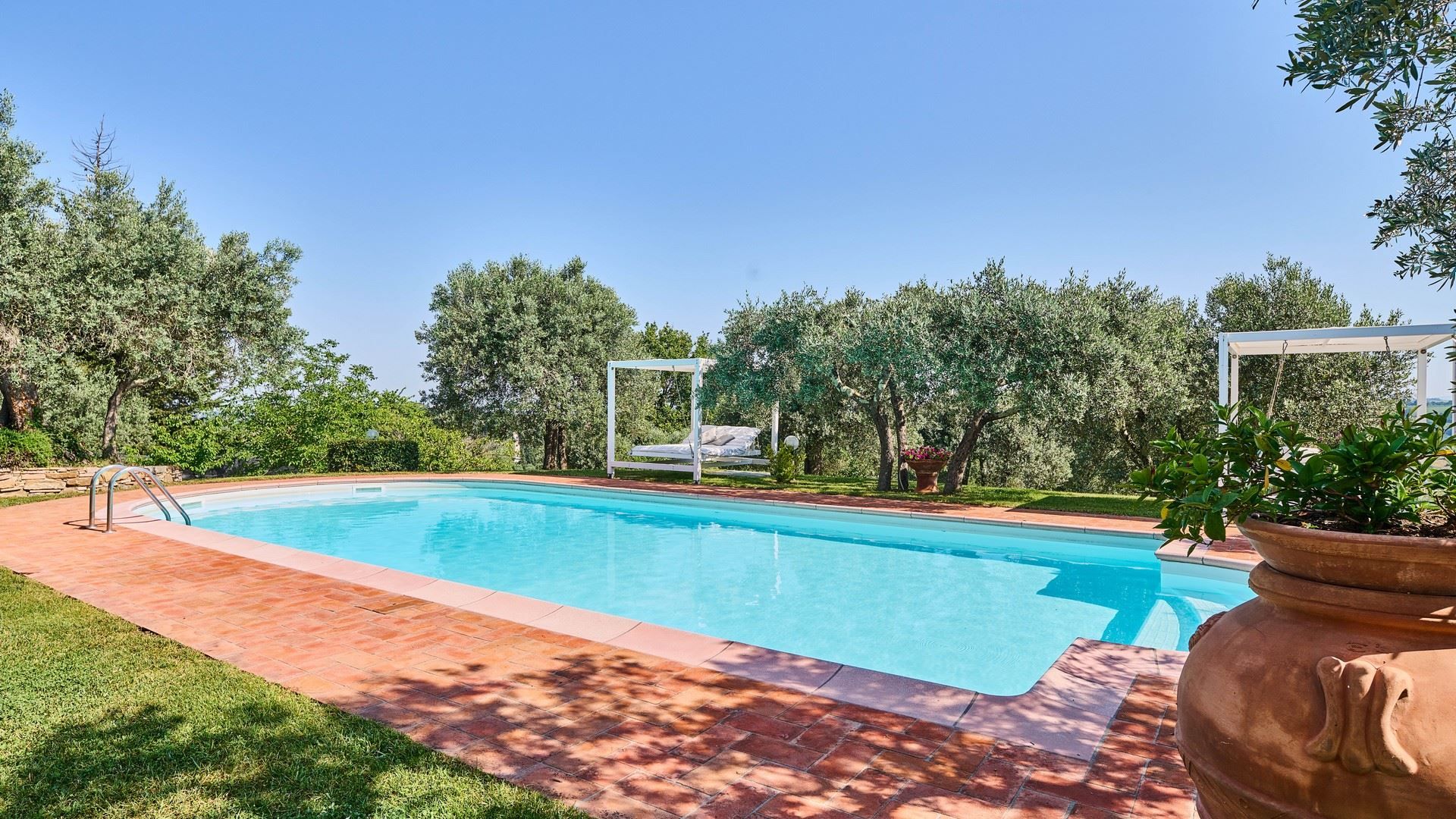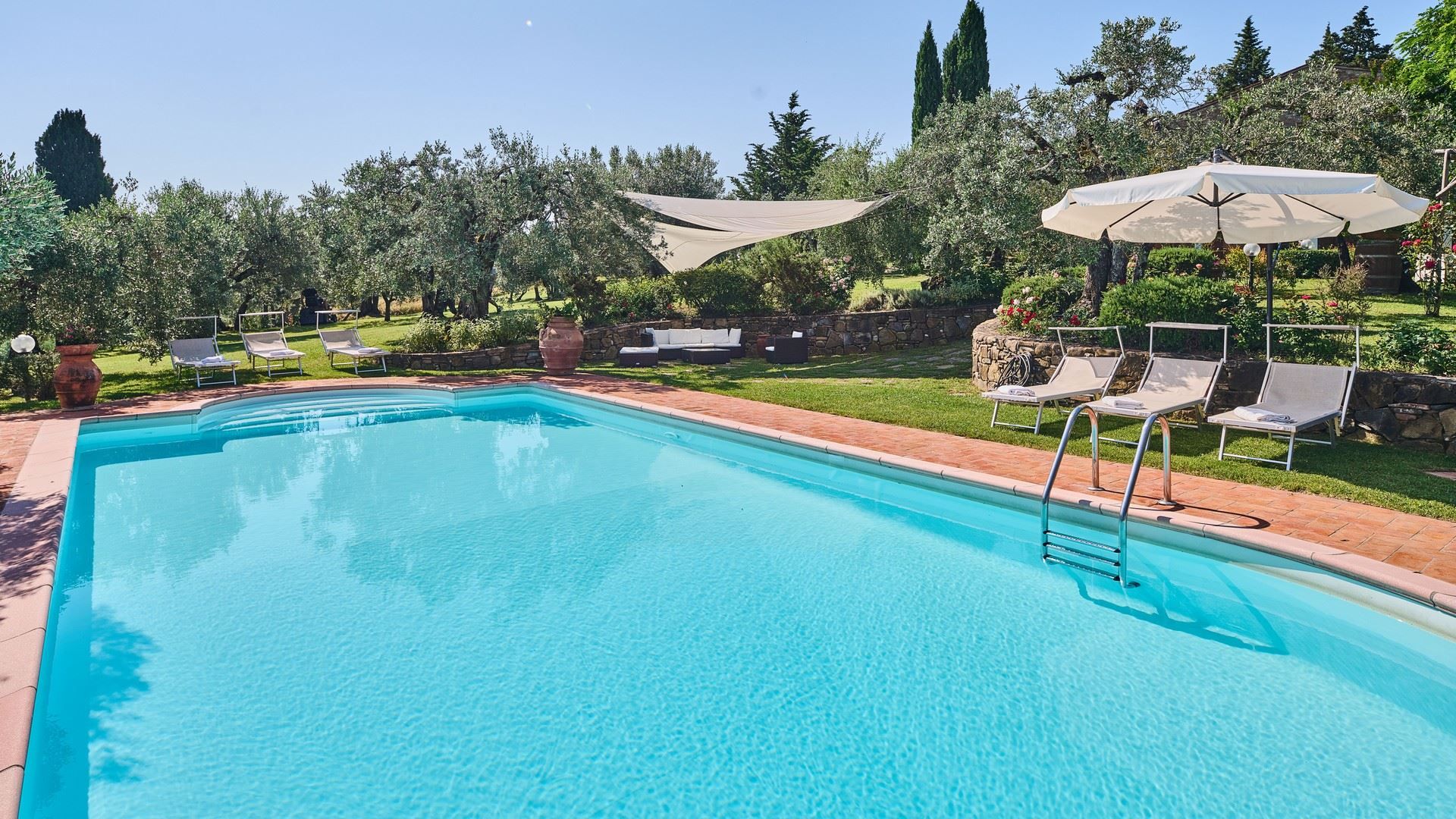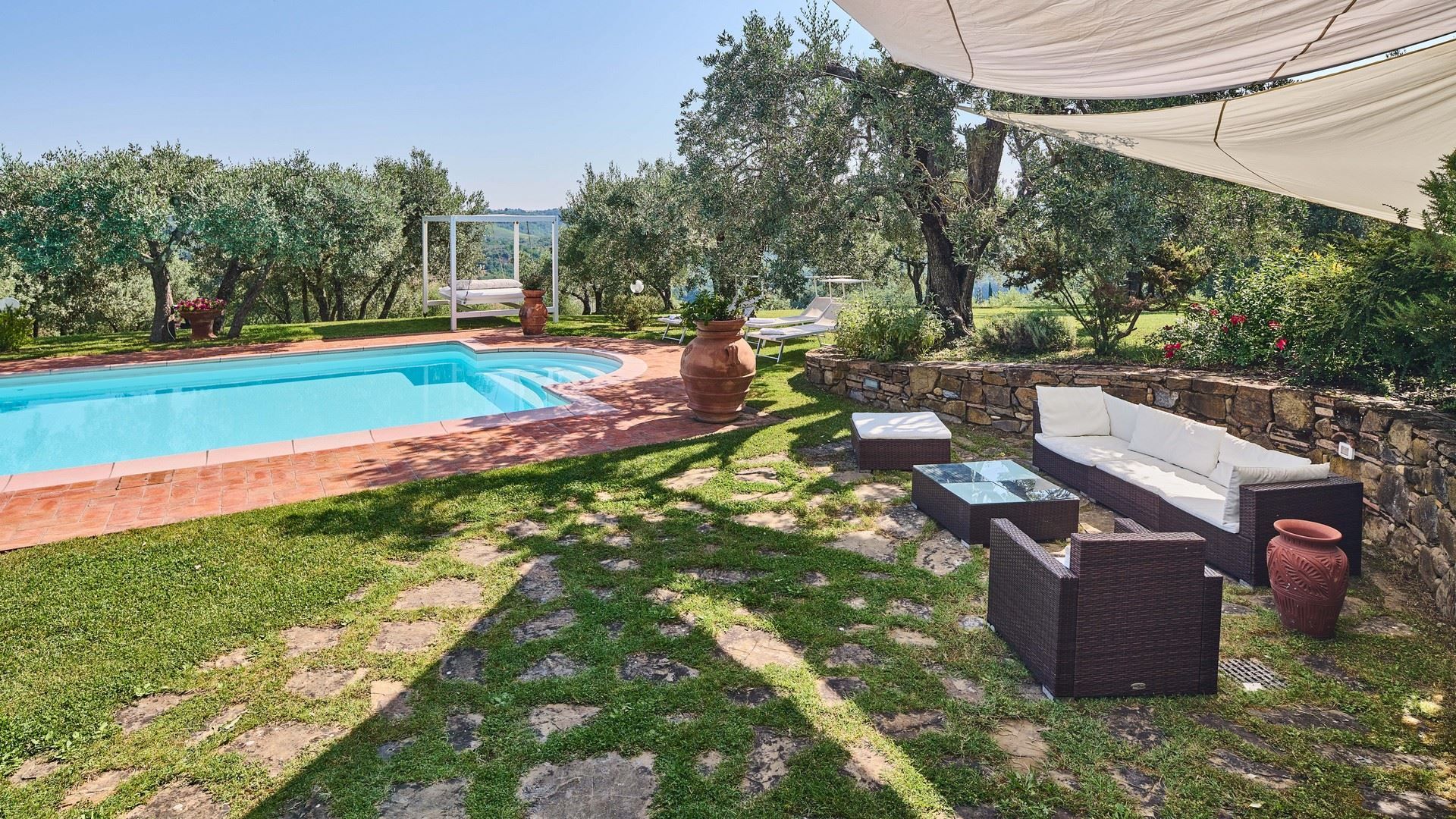 Tucked into the vine-covered Tuscan hills, this home promises an idyllic escape from day-to-day life. Sure, the traditional interiors may not be everyone’s cup of tea, but you’ll find everything needed for a comfortable stay here and plenty of room to spread out and relax. The outdoor space is sure to become a favourite for the whole group, with sun beds, alfresco dining spots, and a private pool to enjoy. Ready to explore the local area? We recommend a trip to Certaldo. Here, you can take the funicular up to the old walled settlement or dine out on authentic Italian cuisine to your heart’s content.