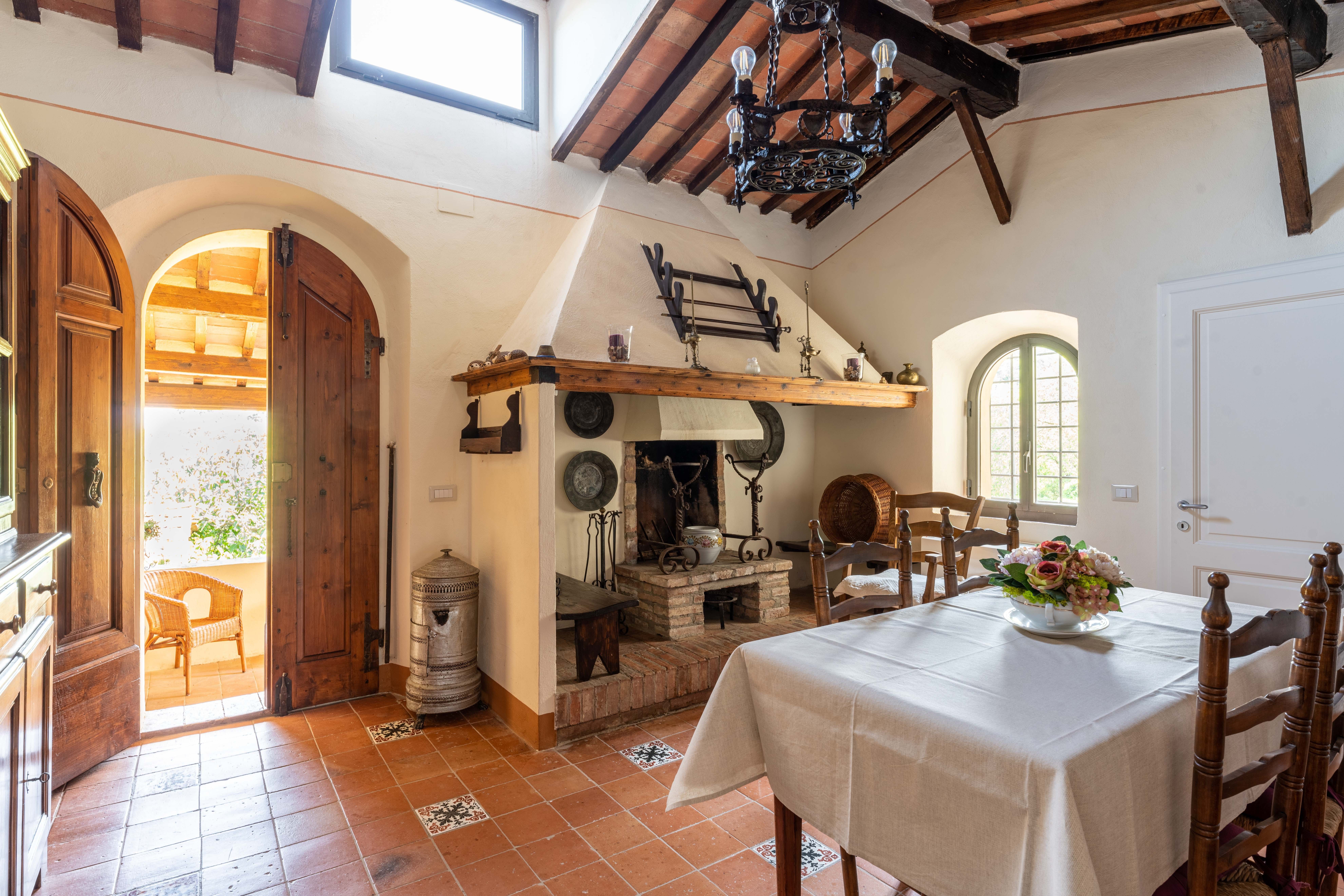 Nestled among verdant hillsides, woodland and olive groves, this location couldn't be more Tuscan if it tried and the home itself is entirely in keeping with local traditions. Having been recently restored, the former farmhouse is full of lovingly preserved rustic features, from the wooden beams in the high vaulted ceilings and the terracotta tiling underfoot to the arched windows and the furniture made by local crafters.