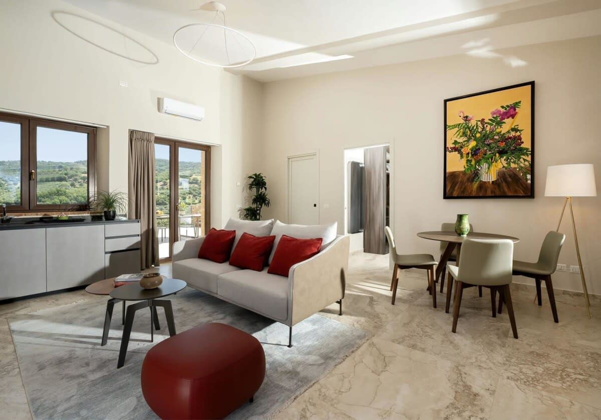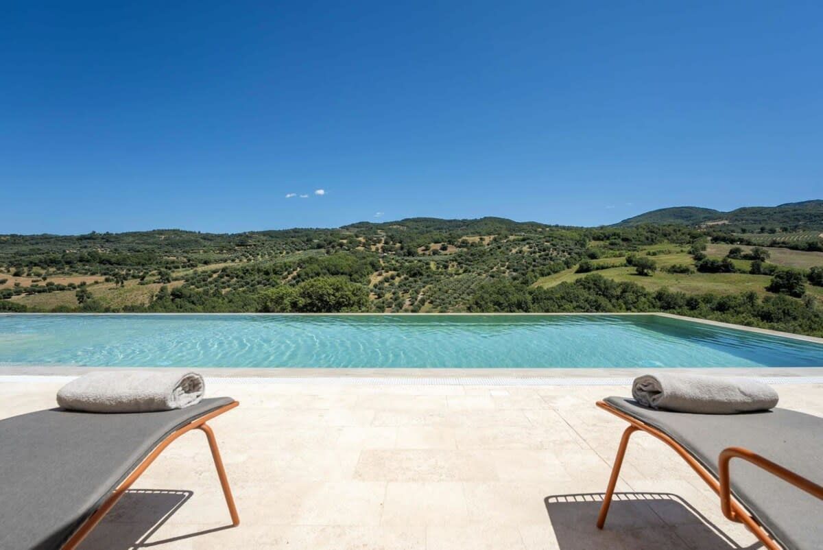 This villa in the hills of southern Tuscany is an art-lover’s dream – an inspired collaboration between a hotelier, architect, and property developer, and decorated with original works by Gil Goren. You can admire the views from floor-to-ceiling windows, squeeze in a workout in the gym, and cool off by the infinity pool. The local region is full of trails, streams and local villages to explore, along with the hillside town of Montalcino and the Castello Banfi Wine Resort. After a day of Tuscan adventures, pour yourself a glass of local wine on the terrace and watch the sun go down.