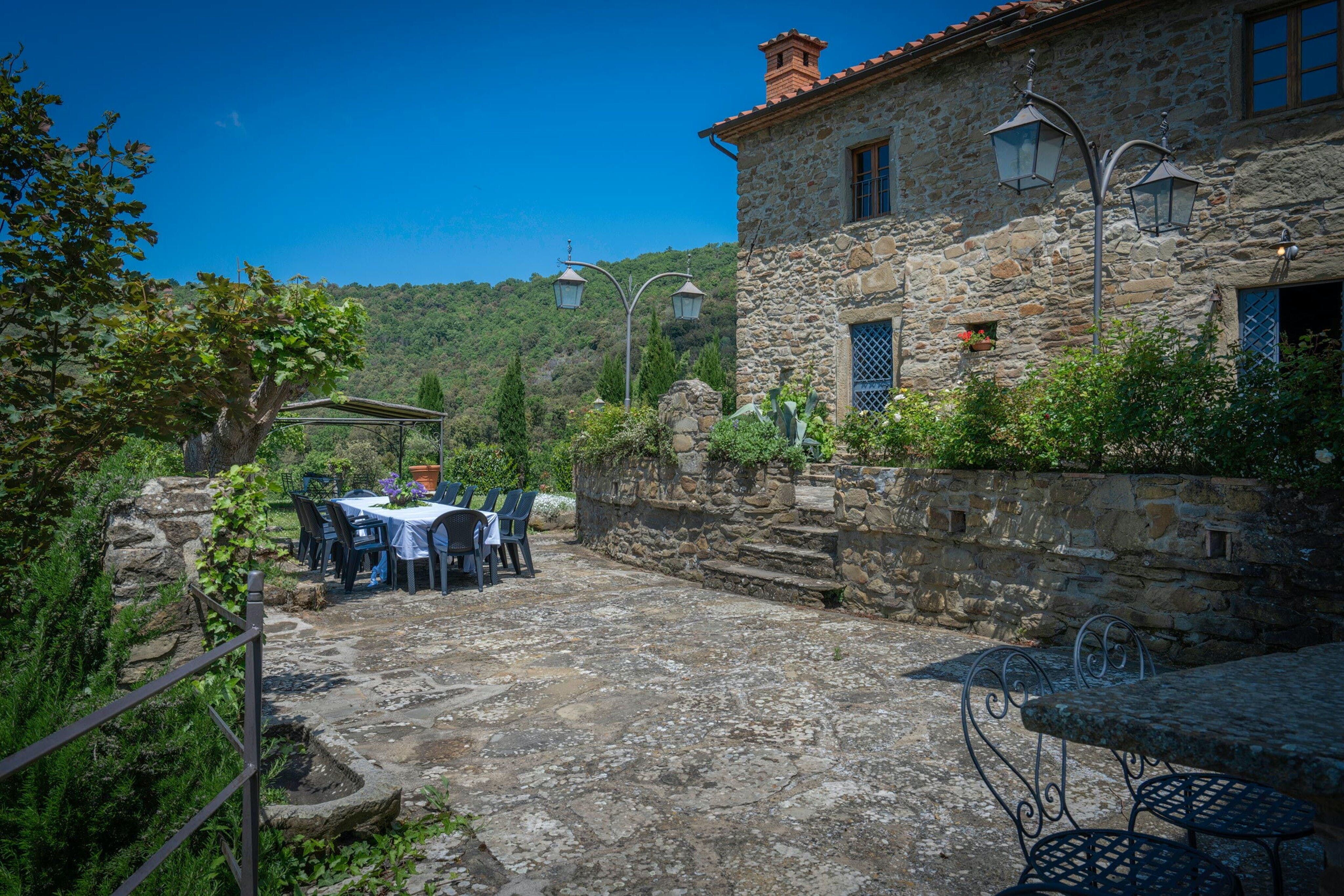 For a taste of authentic Tuscany, look no further than this former farmhouse, just a fifteen-minute drive from Cortona and less than an hour from Arezzo. The home includes two independent apartments, so it’s perfect for families staying together or those seeking more privacy. The interiors are rustic yet comfortable with plenty of original features – we loved the exposed stone and timber beams. Outside, there’s a dining terrace, a private swimming pool and loungers for soaking up the sunshine.