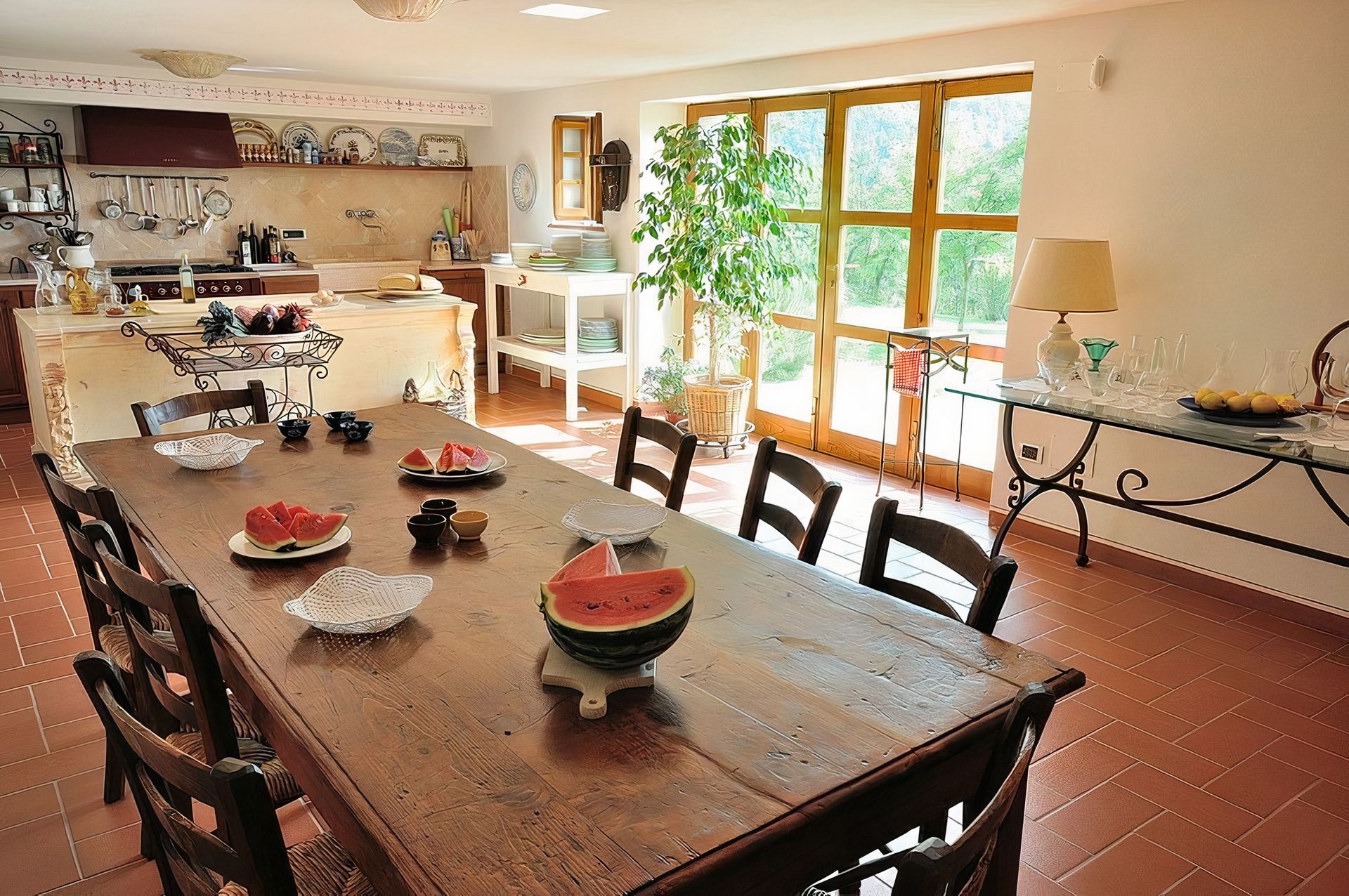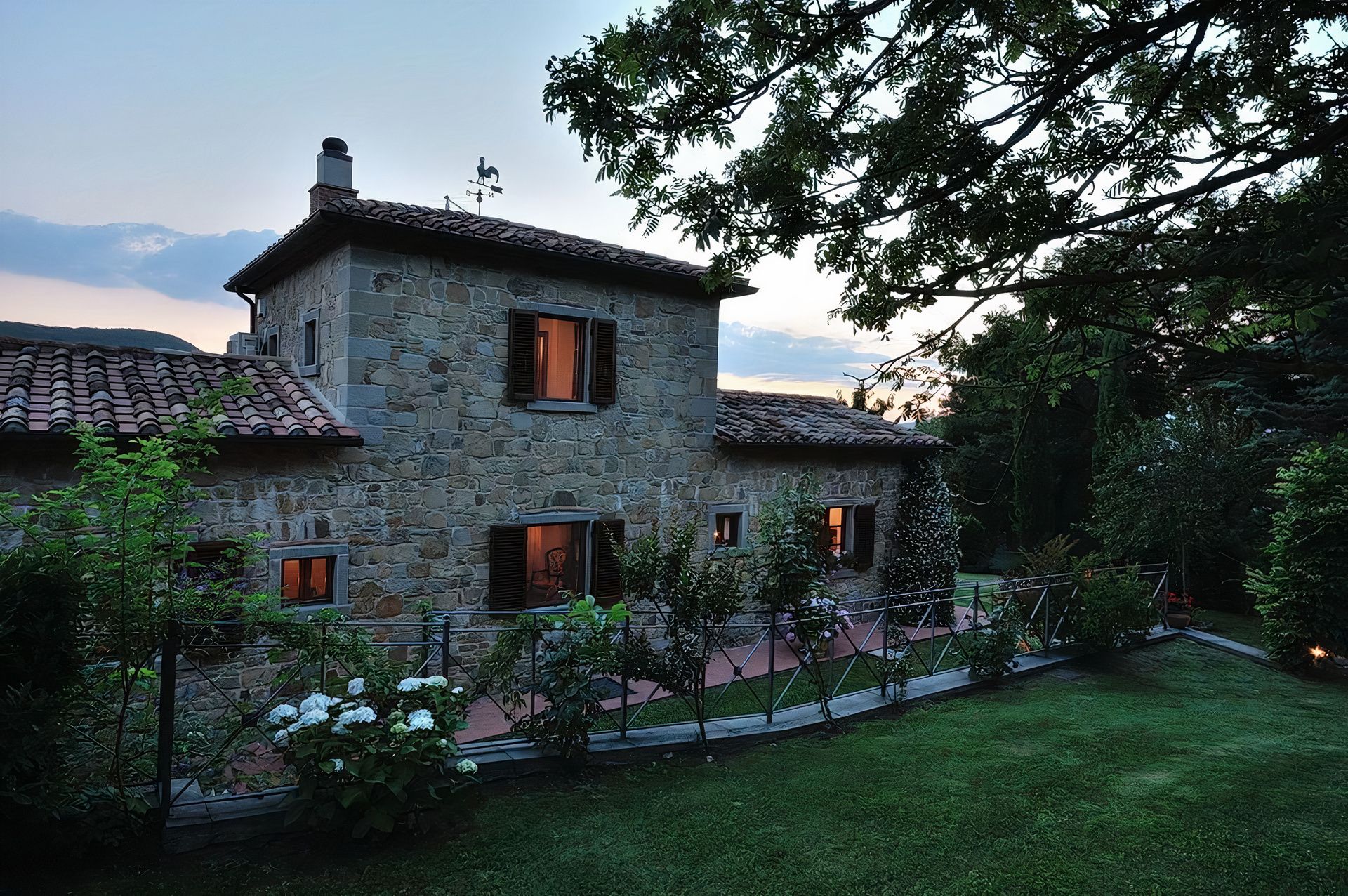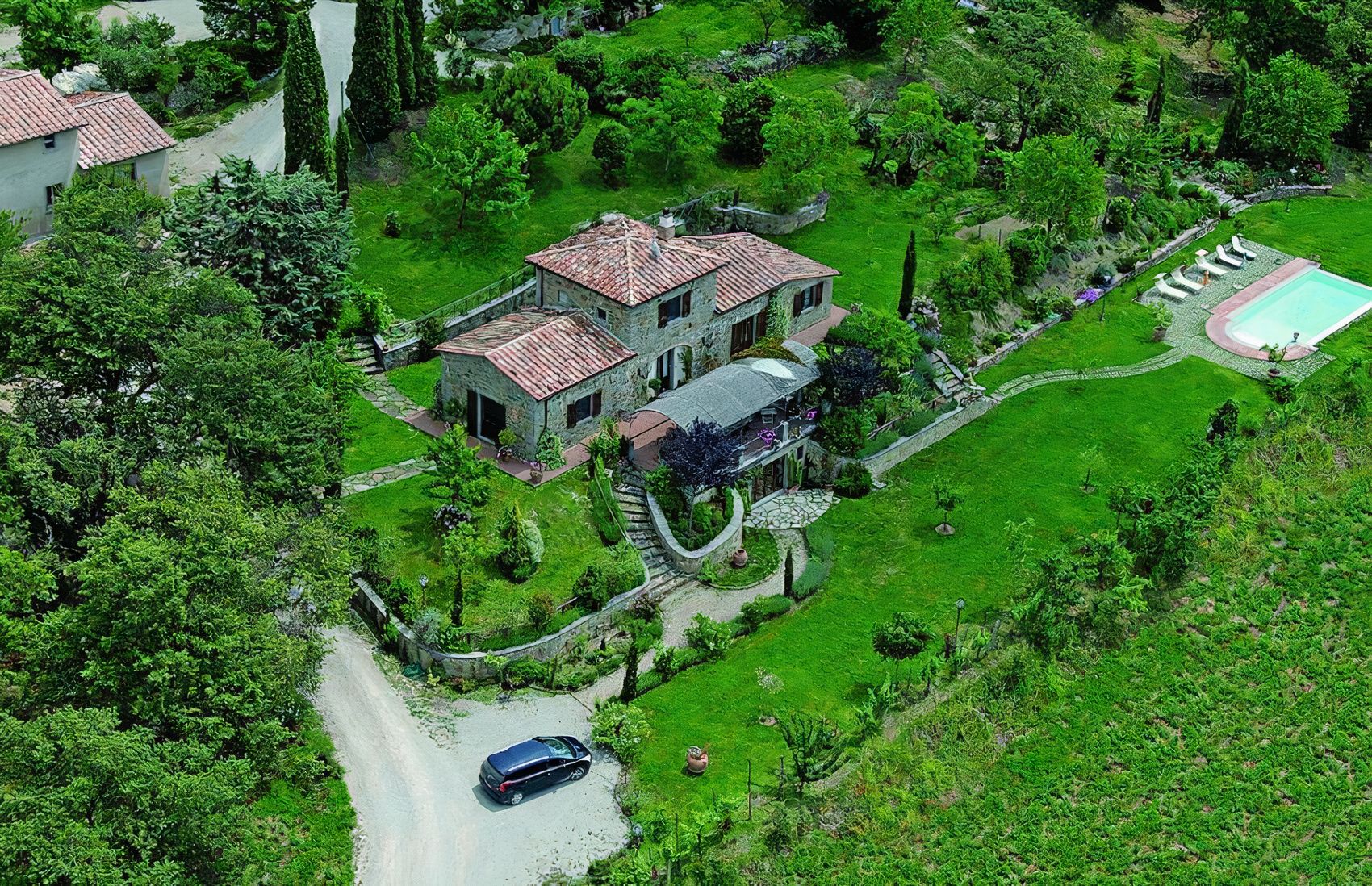 In the folds of the hills, this home is all about those Tuscan sunsets. Catch the golden hour, as the sun dips below the forest-clad hills, from the terrace where curtains frame the view and dining by candlelight is a delight. Days can be spent drifting from one terrace lounge to another, or swimming laps in the pool – the sun hits the water throughout the day. There are two farmhouse-style kitchens to choose from – one is professional-grade in the basement of the main villa and the other, a smaller affair in the separate cottage. Guests can spread out between both buildings, each with its own living room, and join together for excursions to Cortona, 10 kilometres away.