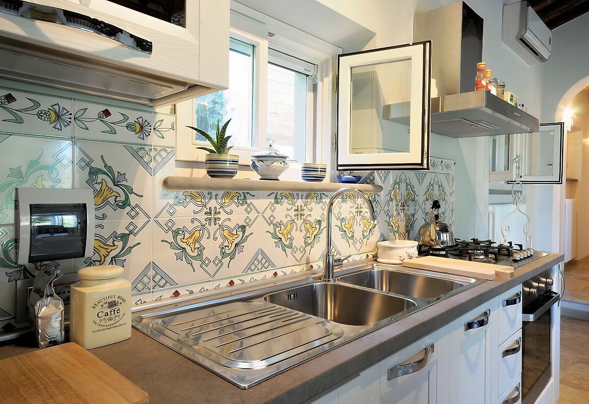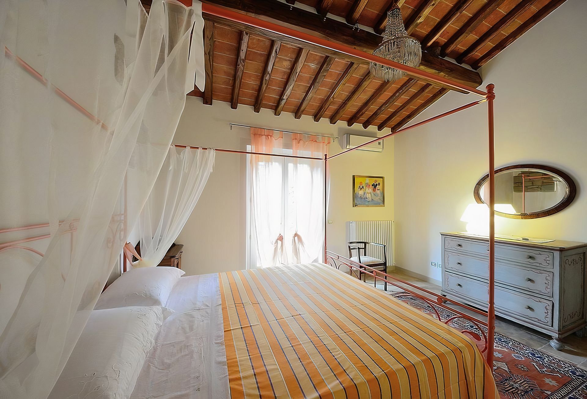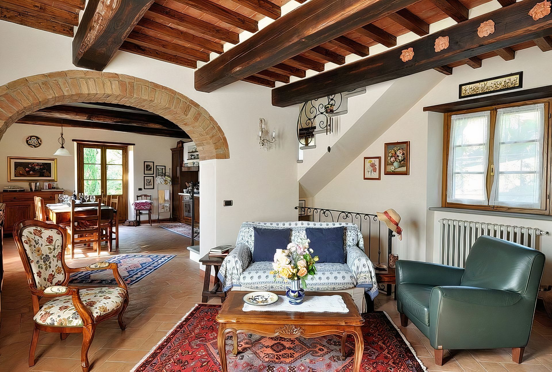In the folds of the hills, this home is all about those Tuscan sunsets. Catch the golden hour, as the sun dips below the forest-clad hills, from the terrace where curtains frame the view and dining by candlelight is a delight. Days can be spent drifting from one terrace lounge to another, or swimming laps in the pool – the sun hits the water throughout the day. There are two farmhouse-style kitchens to choose from – one is professional-grade in the basement of the main villa and the other, a smaller affair in the separate cottage. Guests can spread out between both buildings, each with its own living room, and join together for excursions to Cortona, 10 kilometres away.