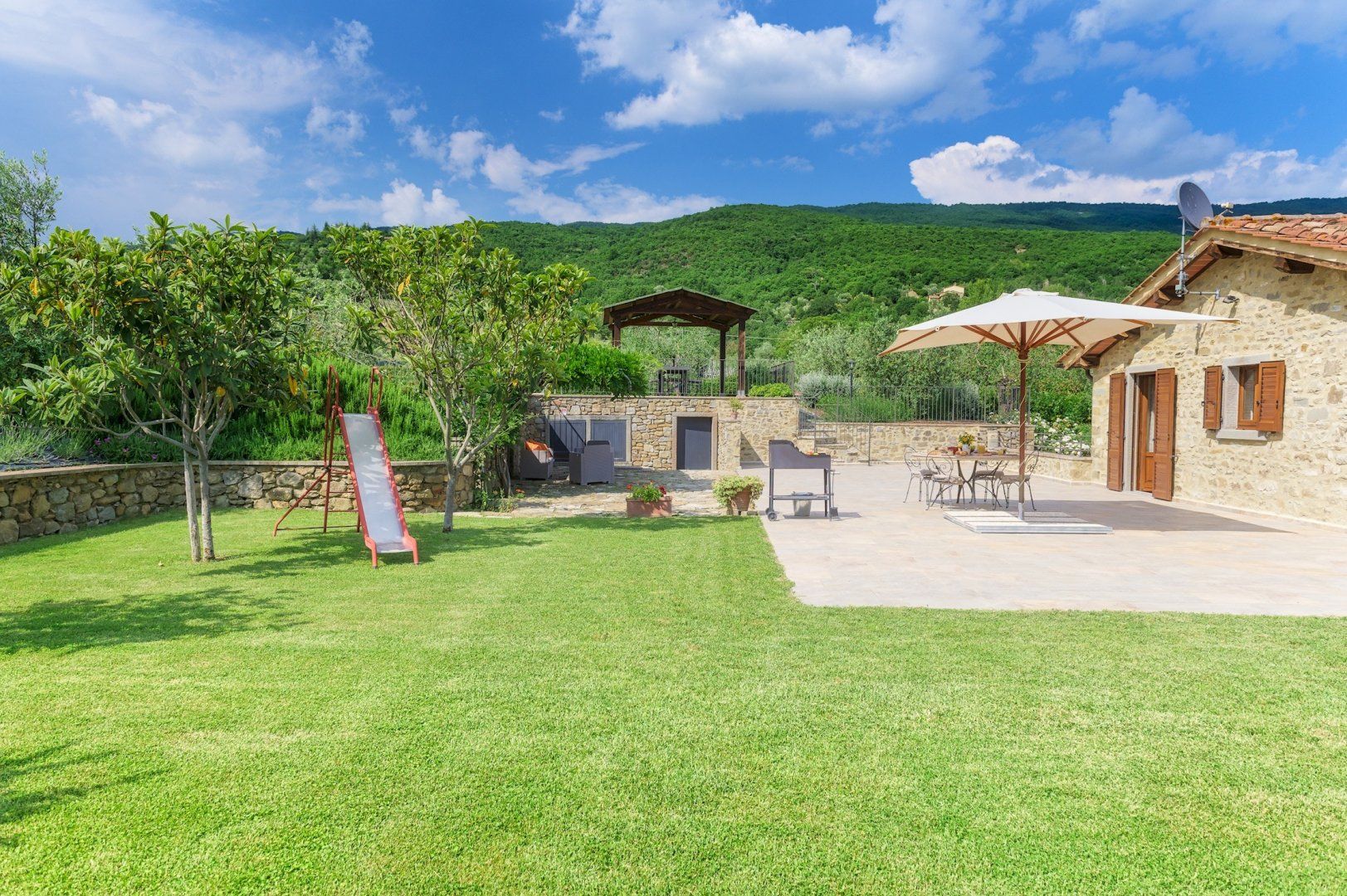 This rustic-style villa, nestled amid unspoiled swathes of the Italian countryside close to the quintessentially Tuscan town of Cortona, provides the perfect place to slow down, reconnect, and immerse yourself in the laid-back way of life this area offers. In the surrounding area, named Val d'Esse, you will find a wealth of historical, cultural, and archaeological treasures, as well as the eponymous river that runs through the valley and plenty of fantastic local eateries serving traditional delicacies – so there really is something for everyone.