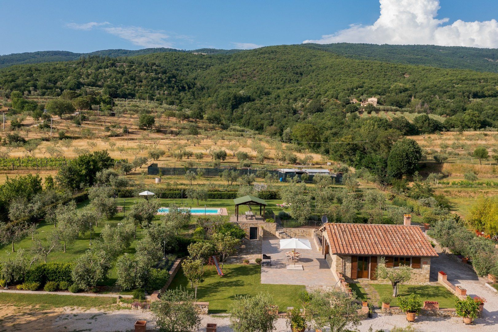 Step outside and the pool area provides the perfect spot to take some time for yourself, soaking up the sun as well as the tranquillity of the rural location. As the sun begins to set, experience that elusive sense of holiday bliss as you dine overlooking the rolling green landscape, feasting on regional delicacies and sampling some of the area's delicious wines. When you want to venture further afield, then the iconic towns of Siena, Florence, and Assisi are all accessible for a day trip too.