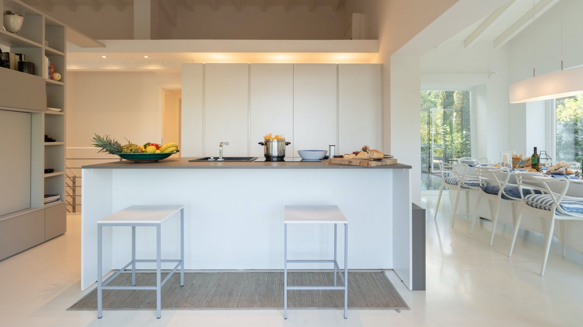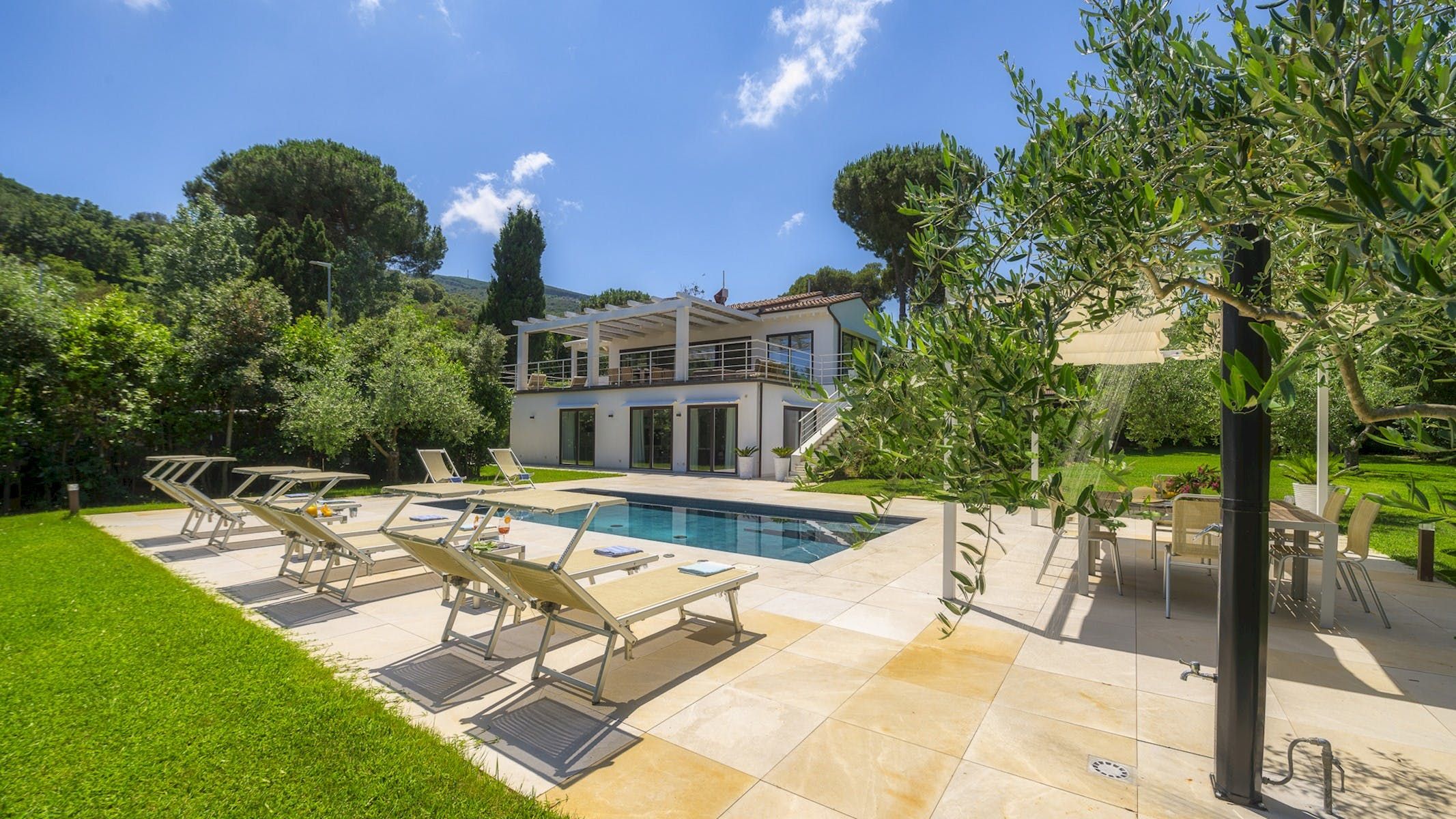 Not many people know about the island of Elba's beautiful beaches and turquoise waters – even fewer know about this stunning home on the east coast. Hidden in 3000 sq metres of private parkland and just a short stroll from the Mediterranean sea, this place is an ode to the colour white. Built in 2019, everything is shiny and new. The bright, open living area flows easily out onto the patio and pool area, with several sets of French doors, while huge sliding doors in the upstairs kitchen open it up to a beautiful raised terrace – the best place to soak up your breathtaking surroundings. On the edge of the Costa dei Gabbiani Nature Reserve, you'll be surrounded by lush greenery but only a short drive from Capoliveri.