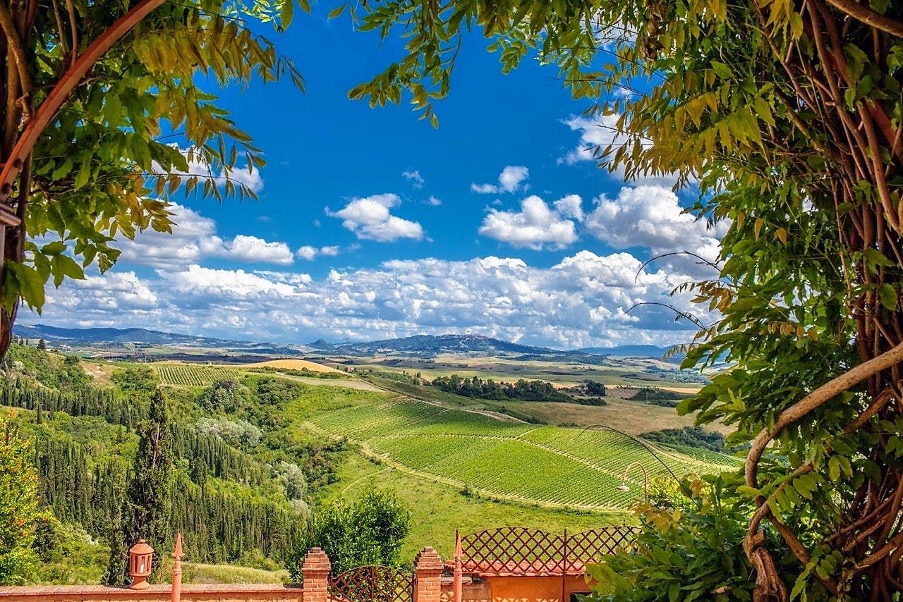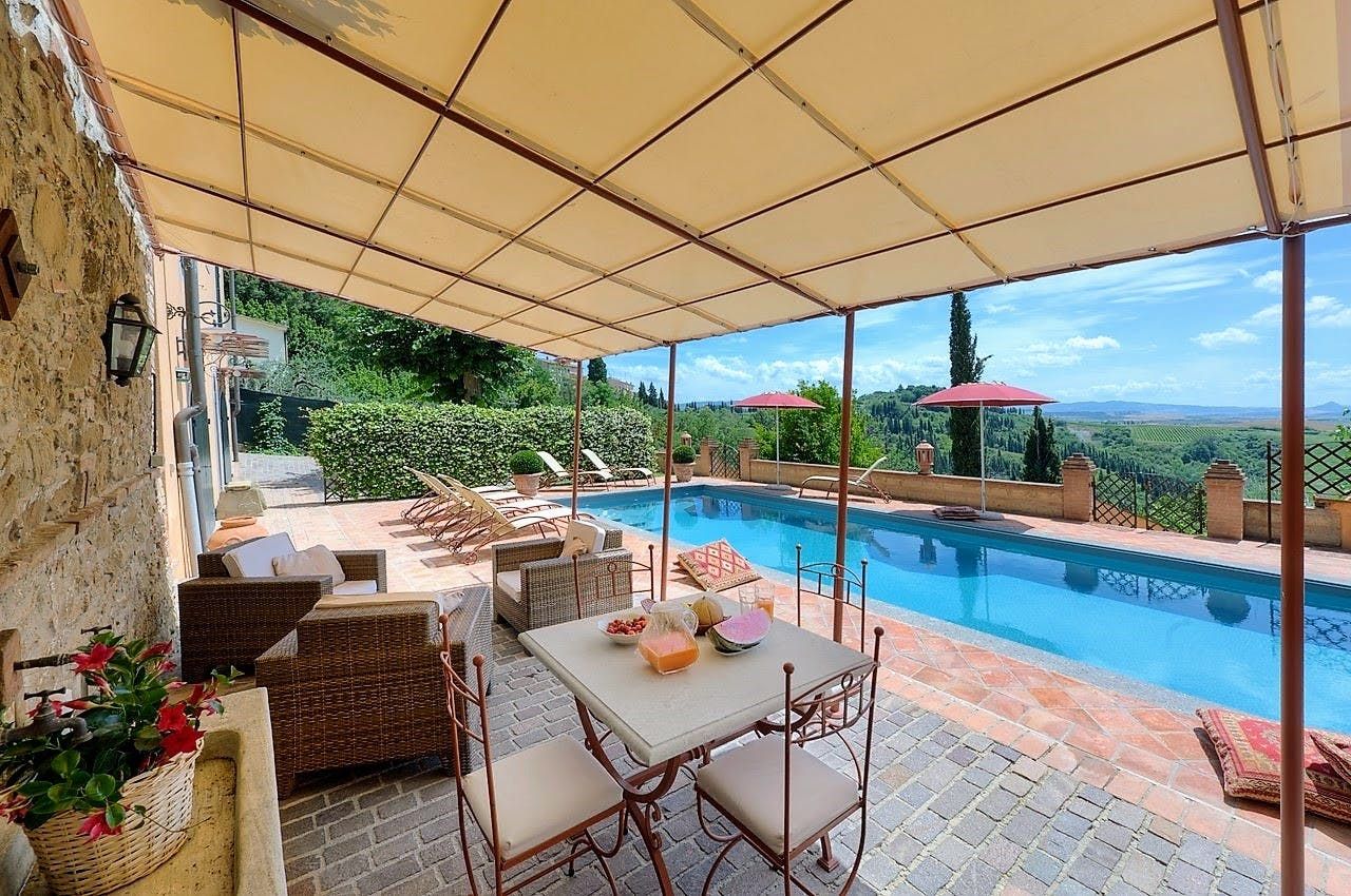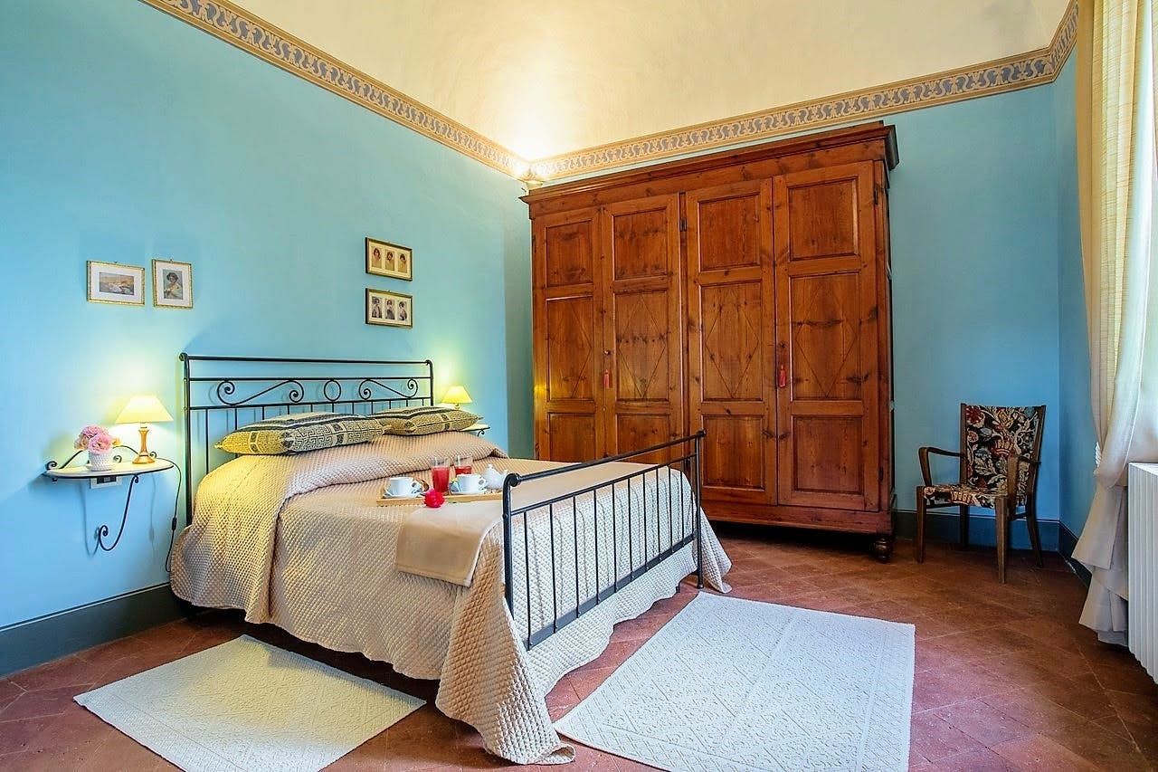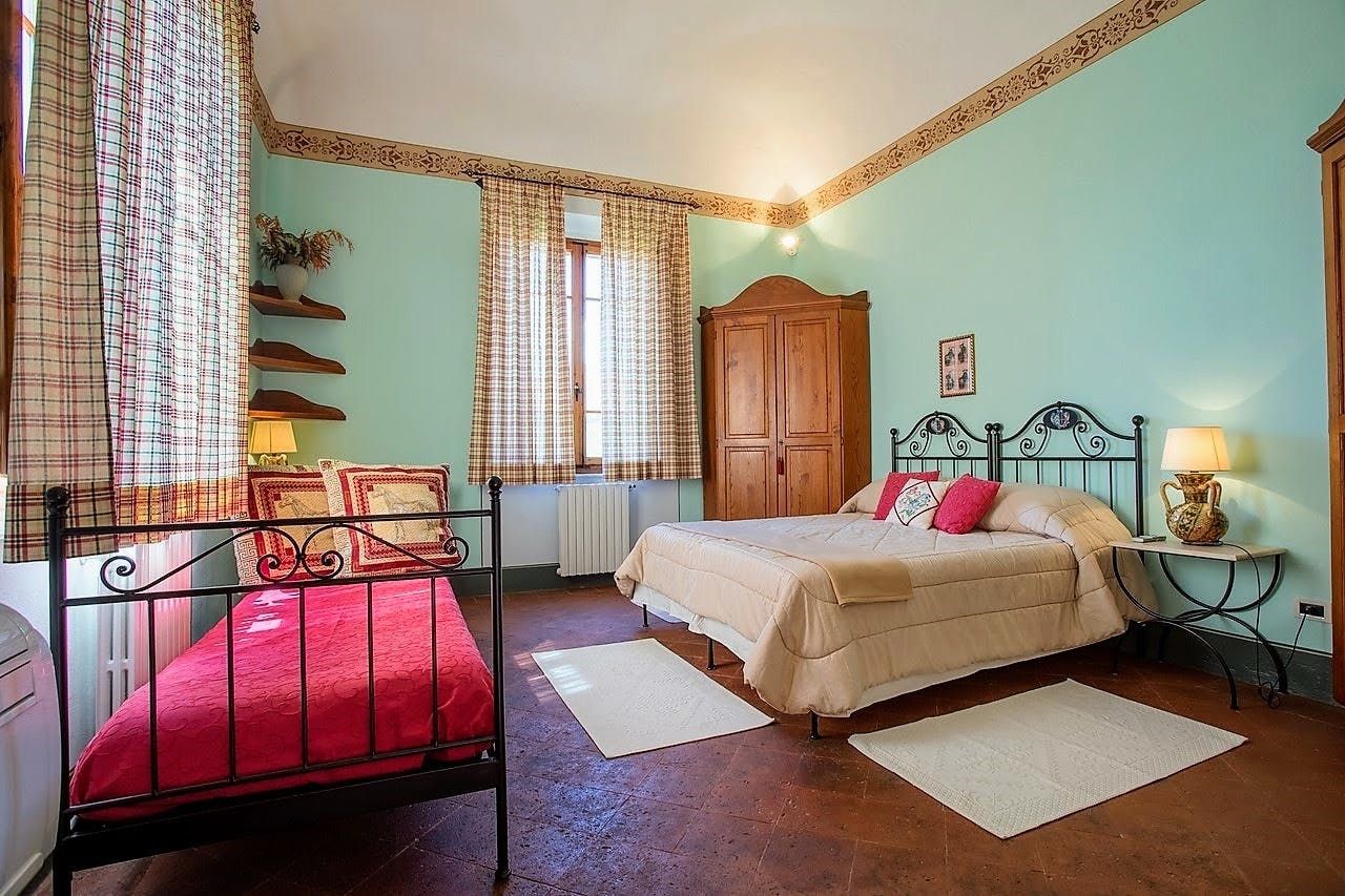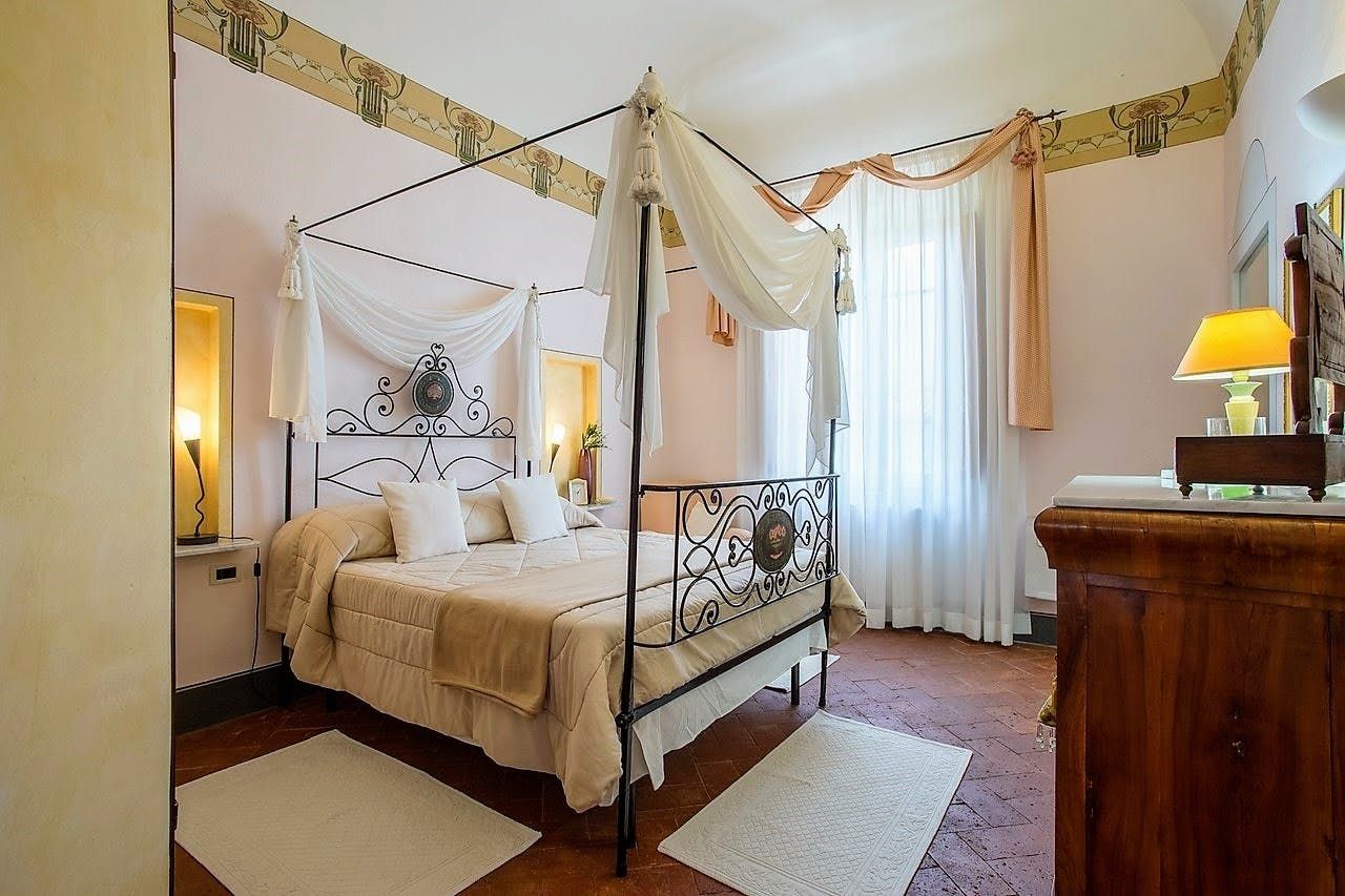 As you wake up in the master suite’s four-poster bed, you’ll feel well-rested – this home is in a peaceful location. Open up the curtains and take in the view of the rolling hills and over the vineyards. The villa can be found just outside of the village of Fabbrica, which you can walk to for a coffee in four minutes. From the garden, the view stretches all the way to Volterra – it’s thirty-four minutes away by car and is ideal for day trips.