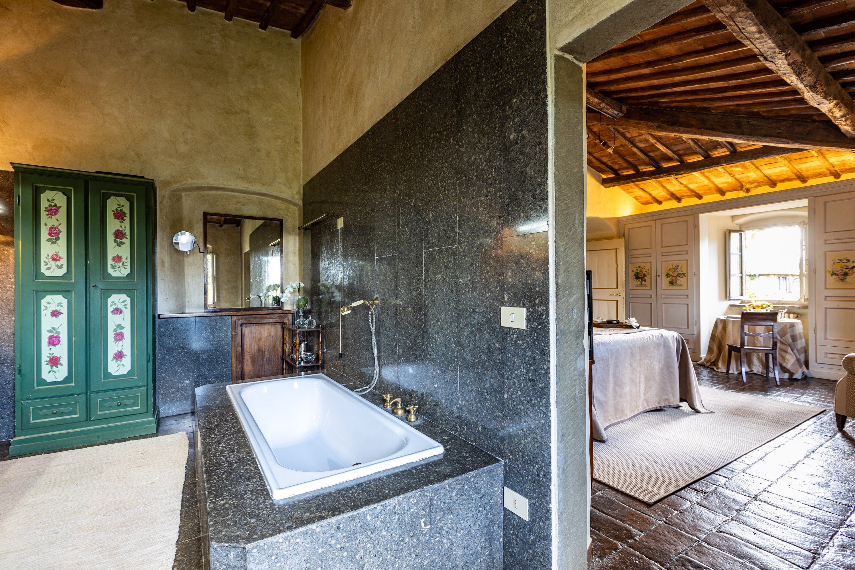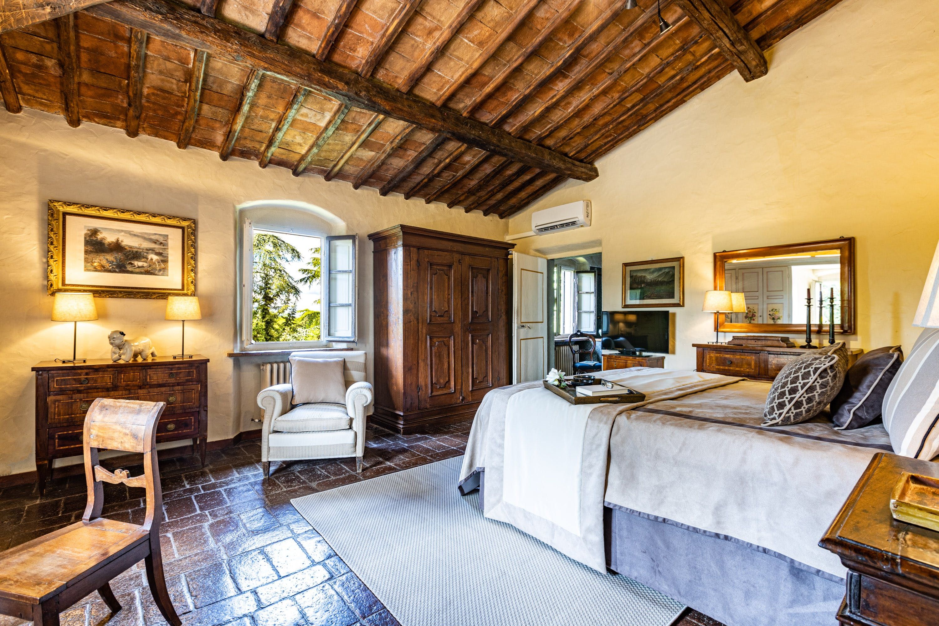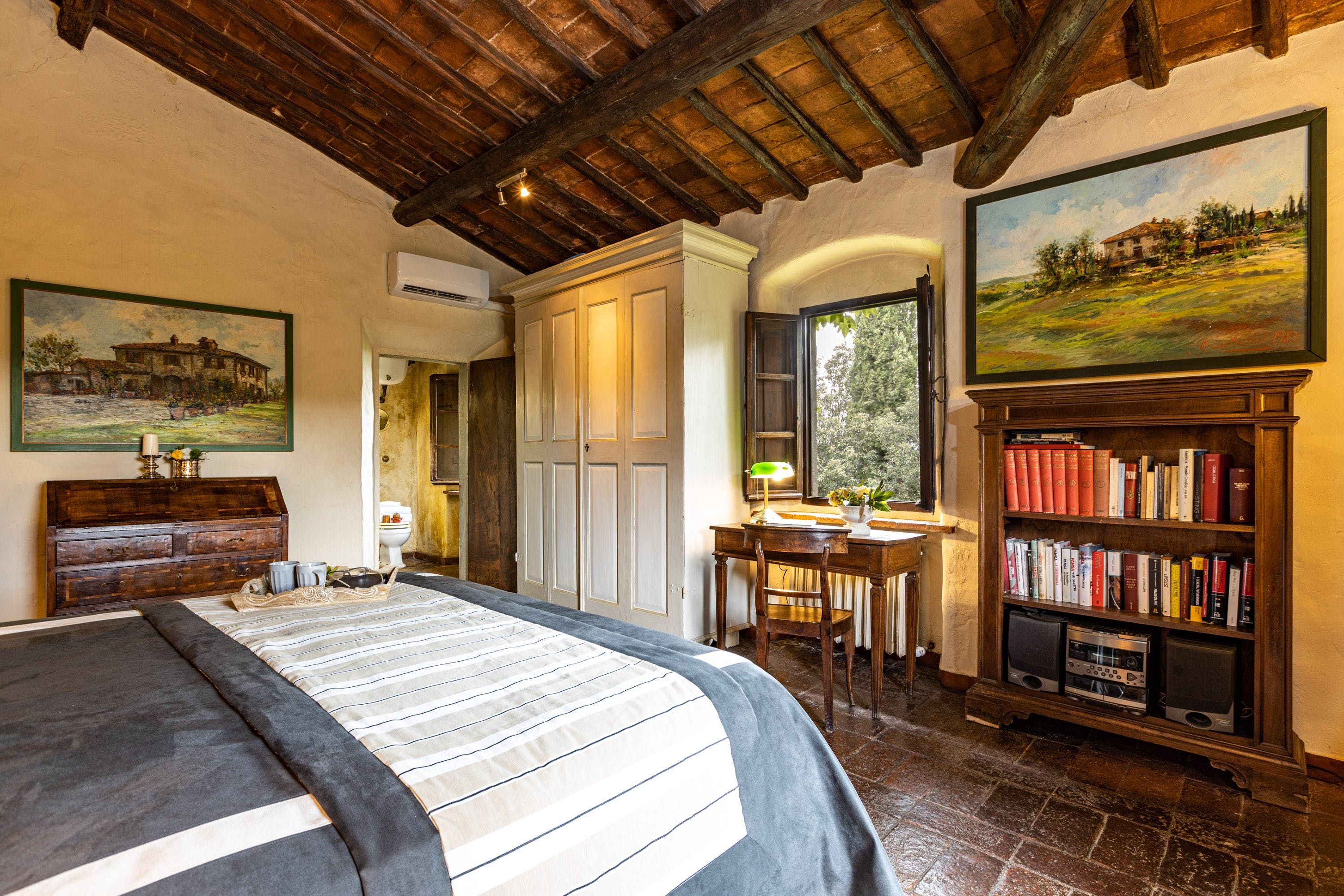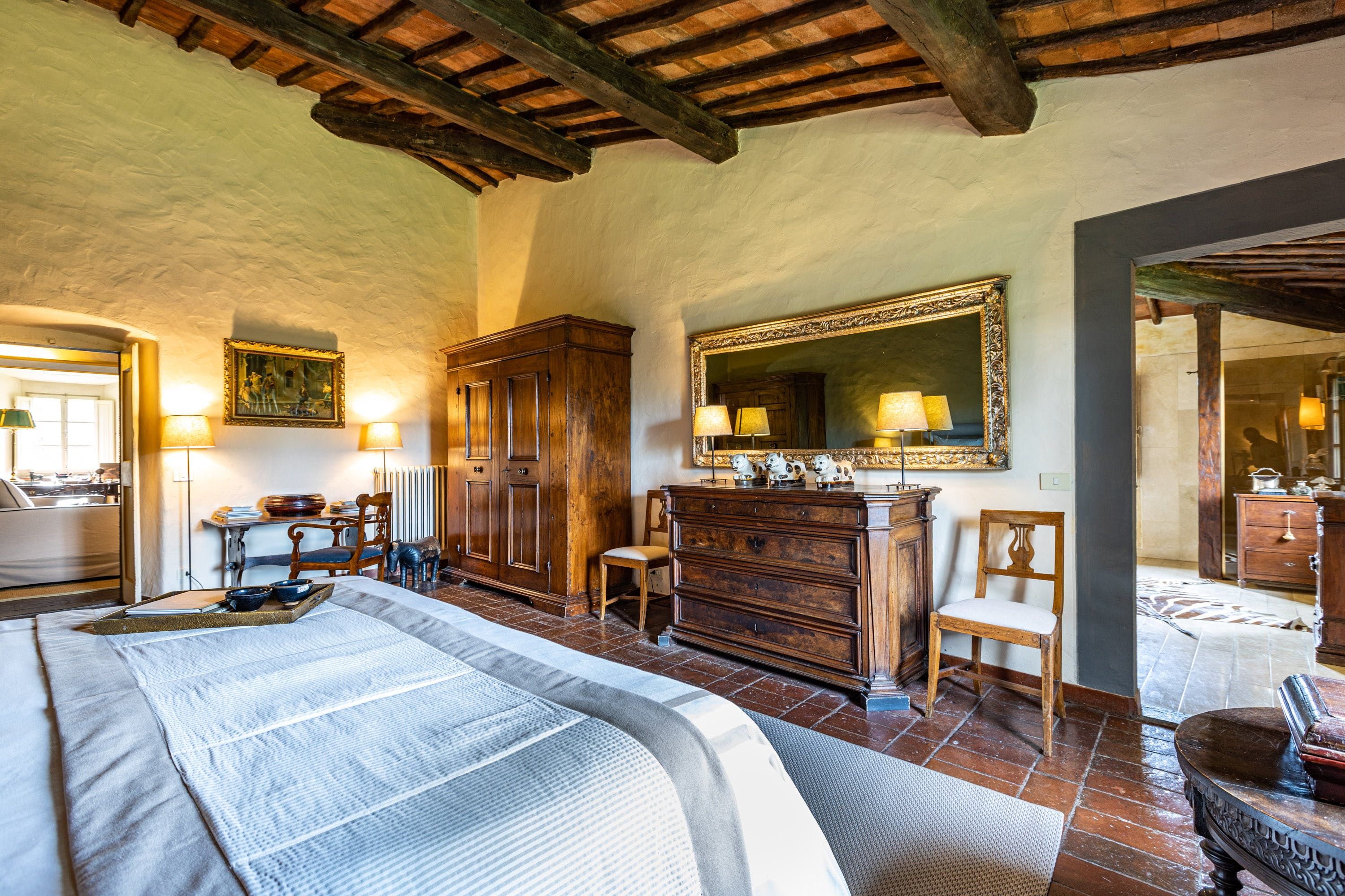 Once home to Marsilio Ficino, an Italian philosopher and astrologer, this historic farmhouse's hillside position gives way to views of the Val d‘Arno. Though it might not control the territory below as it did in the 11th century, it does still give you access to it. Explore the medieval architecture of Figline and Chianti, just beyond, by driving a few minutes. But the location isn't the only thing that drew us to this home – it also splits the bedrooms between a villa, cottage and annexe, creating pockets of privacy whilst still allowing the group to come together for alfresco meals or poolside days.