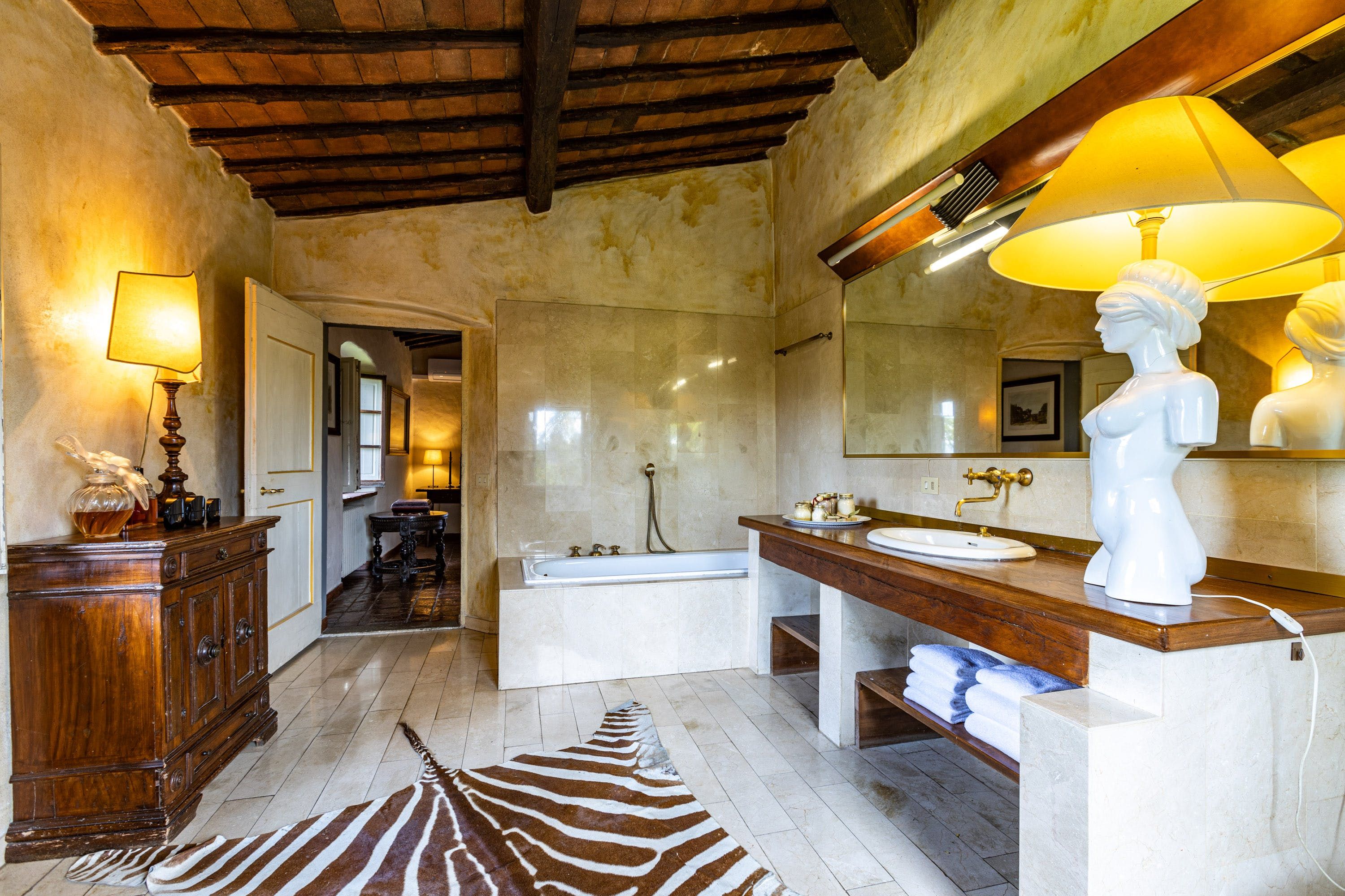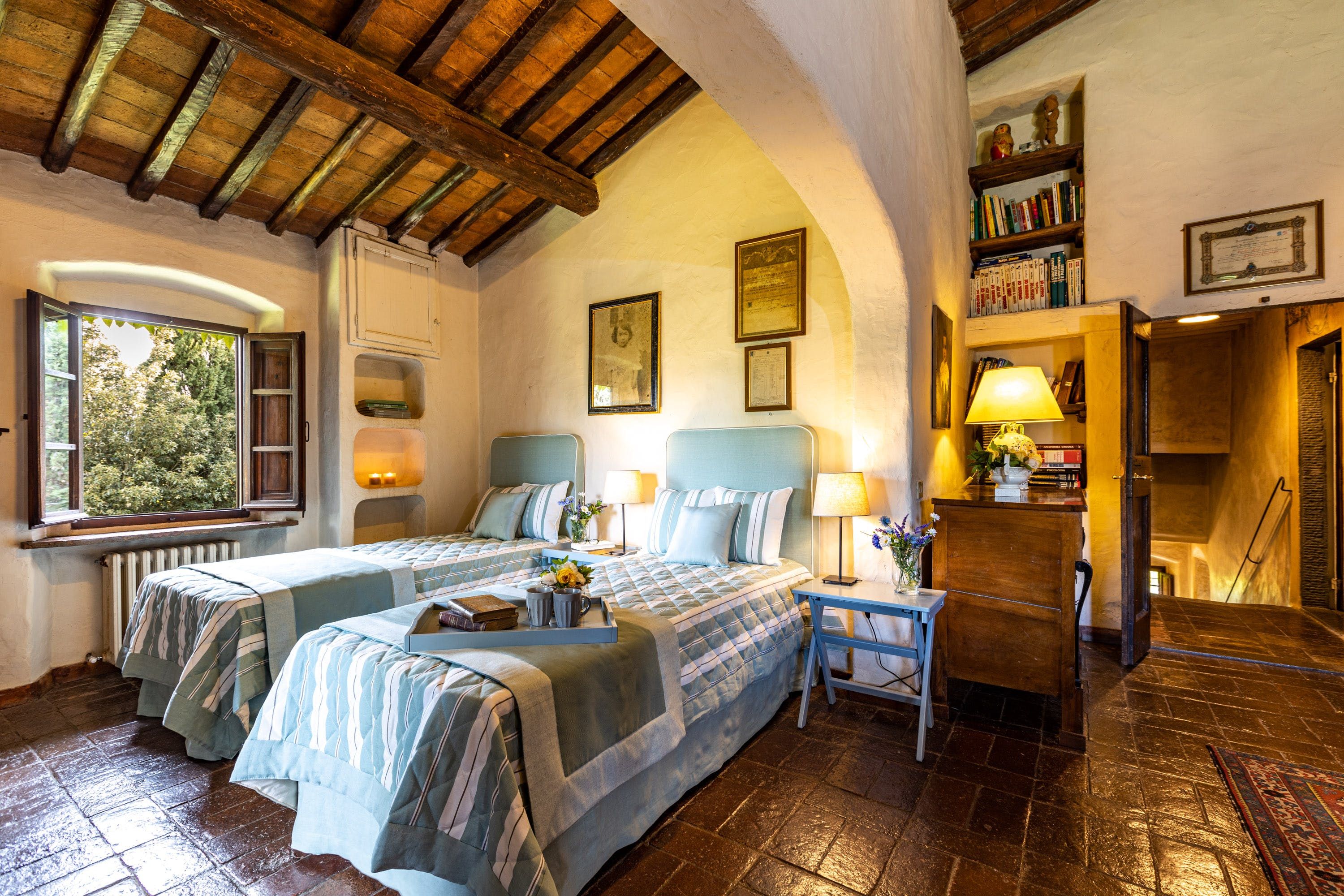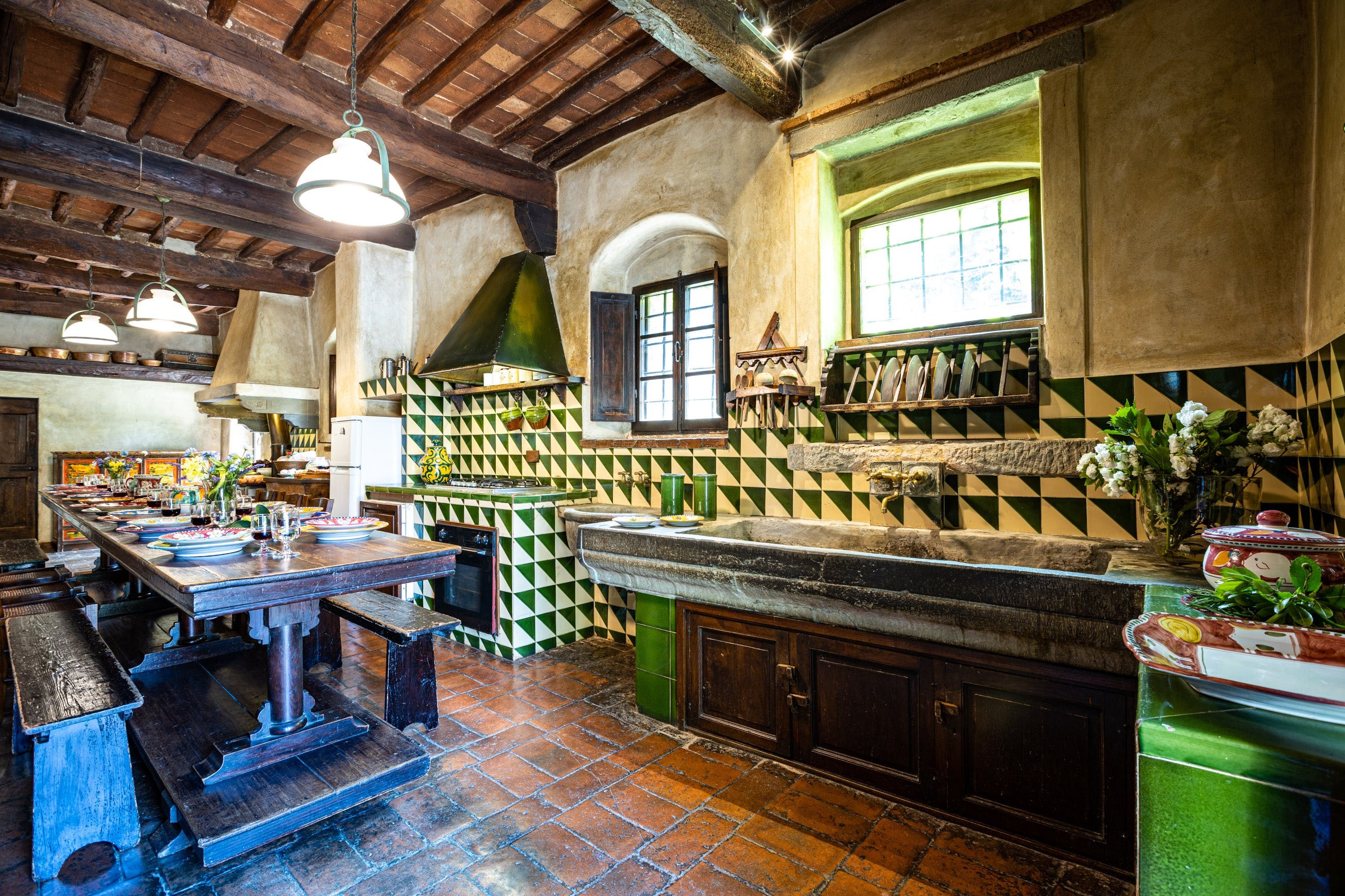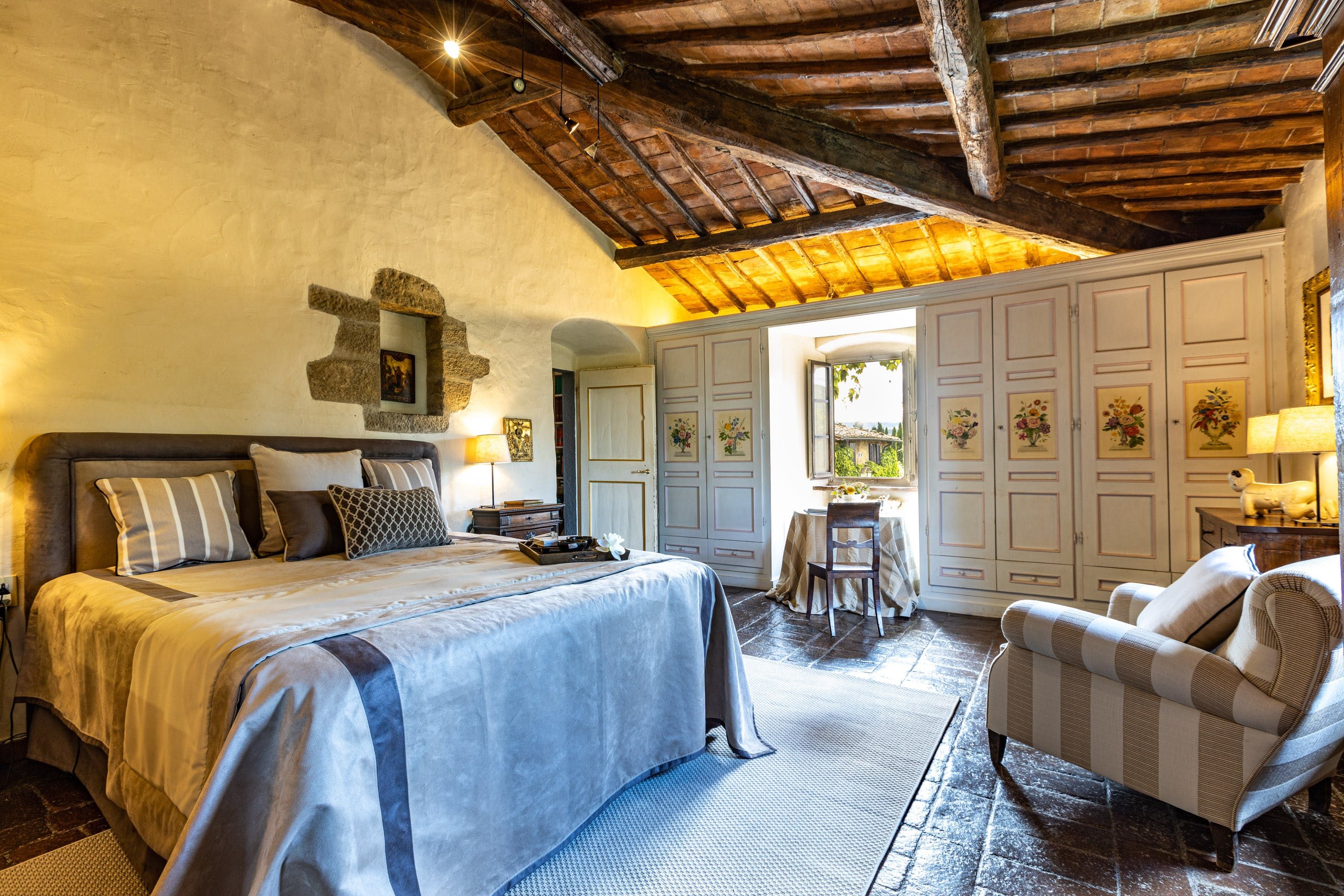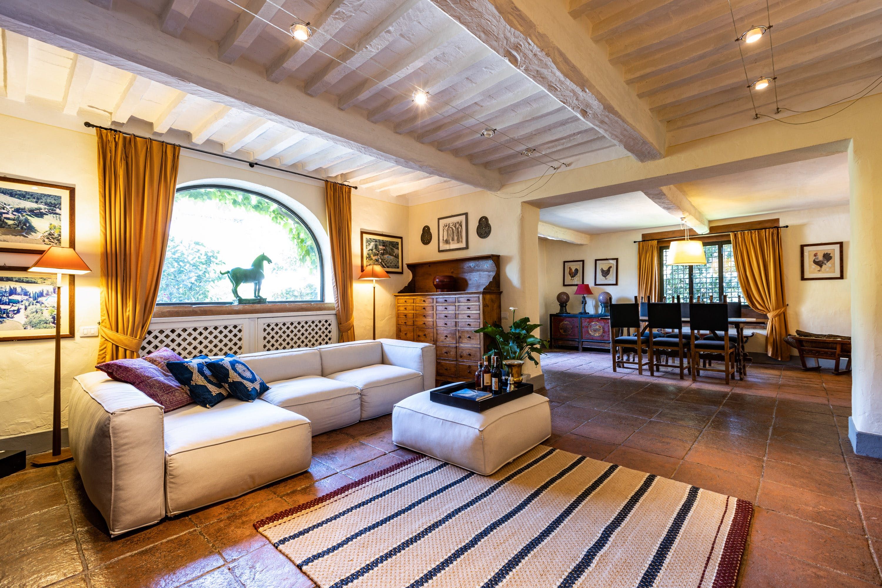 Once home to Marsilio Ficino, an Italian philosopher and astrologer, this historic farmhouse's hillside position gives way to views of the Val d‘Arno. Though it might not control the territory below as it did in the 11th century, it does still give you access to it. Explore the medieval architecture of Figline and Chianti, just beyond, by driving a few minutes. But the location isn't the only thing that drew us to this home – it also splits the bedrooms between a villa, cottage and annexe, creating pockets of privacy whilst still allowing the group to come together for alfresco meals or poolside days.