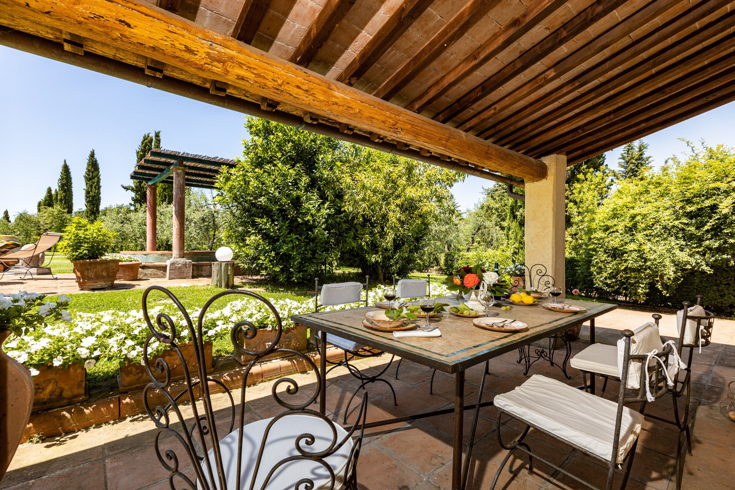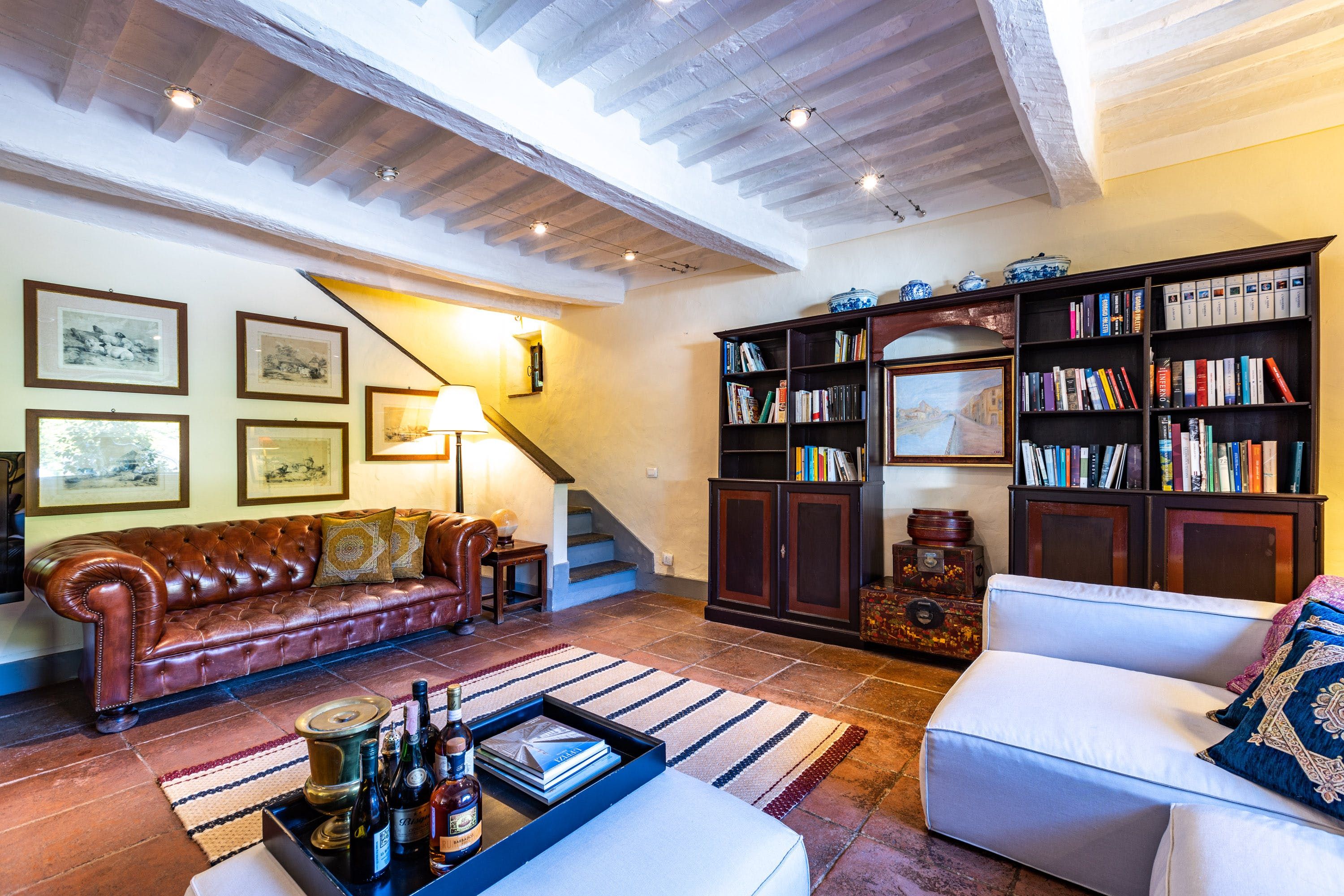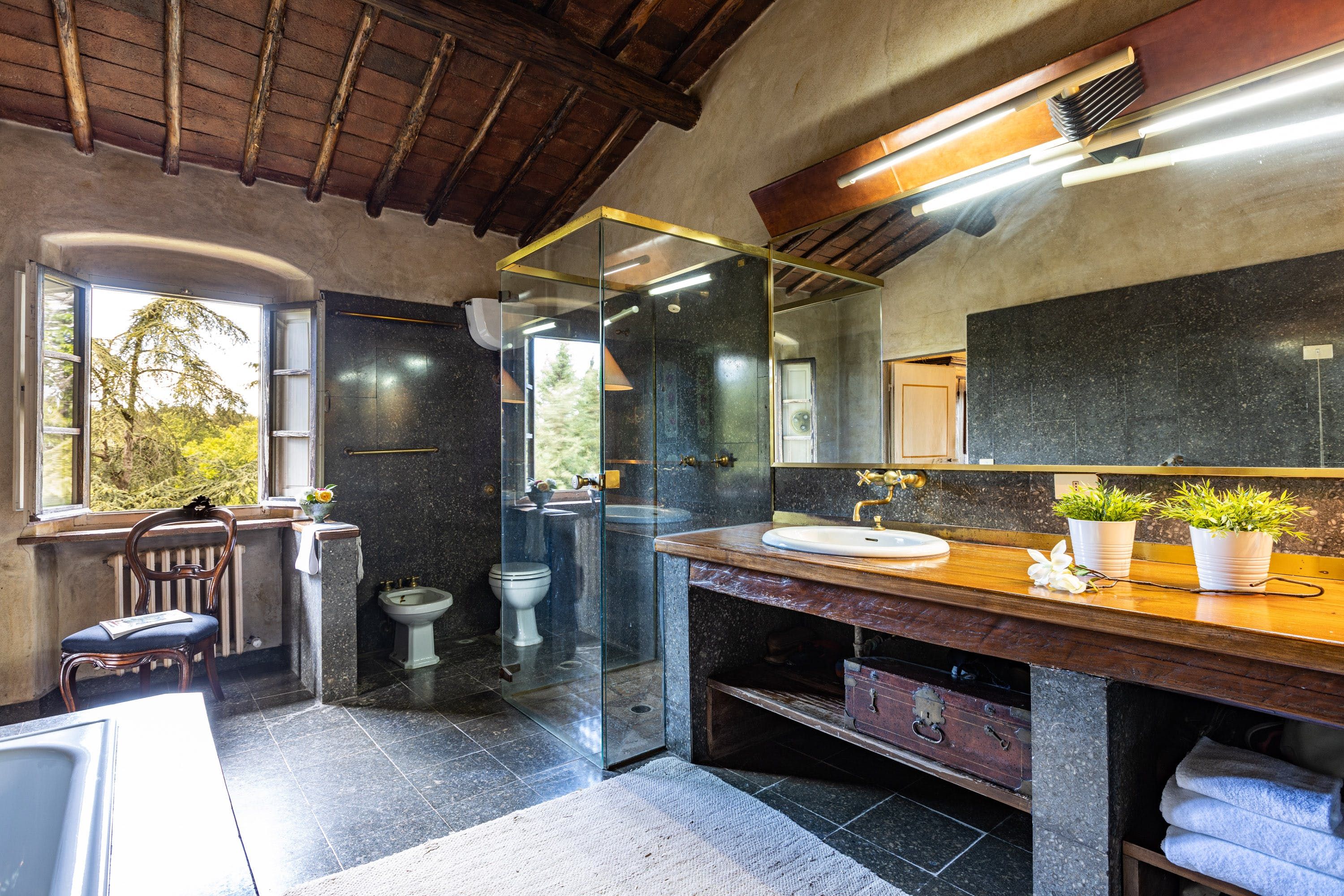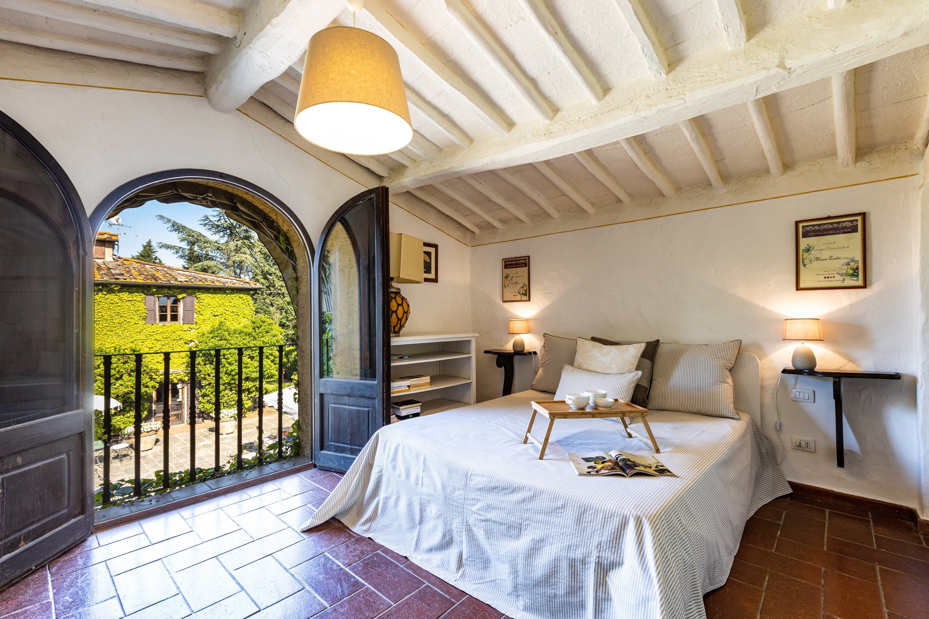 Once home to Marsilio Ficino, an Italian philosopher and astrologer, this historic farmhouse's hillside position gives way to views of the Val d‘Arno. Though it might not control the territory below as it did in the 11th century, it does still give you access to it. Explore the medieval architecture of Figline and Chianti, just beyond, by driving a few minutes. But the location isn't the only thing that drew us to this home – it also splits the bedrooms between a villa, cottage and annexe, creating pockets of privacy whilst still allowing the group to come together for alfresco meals or poolside days.