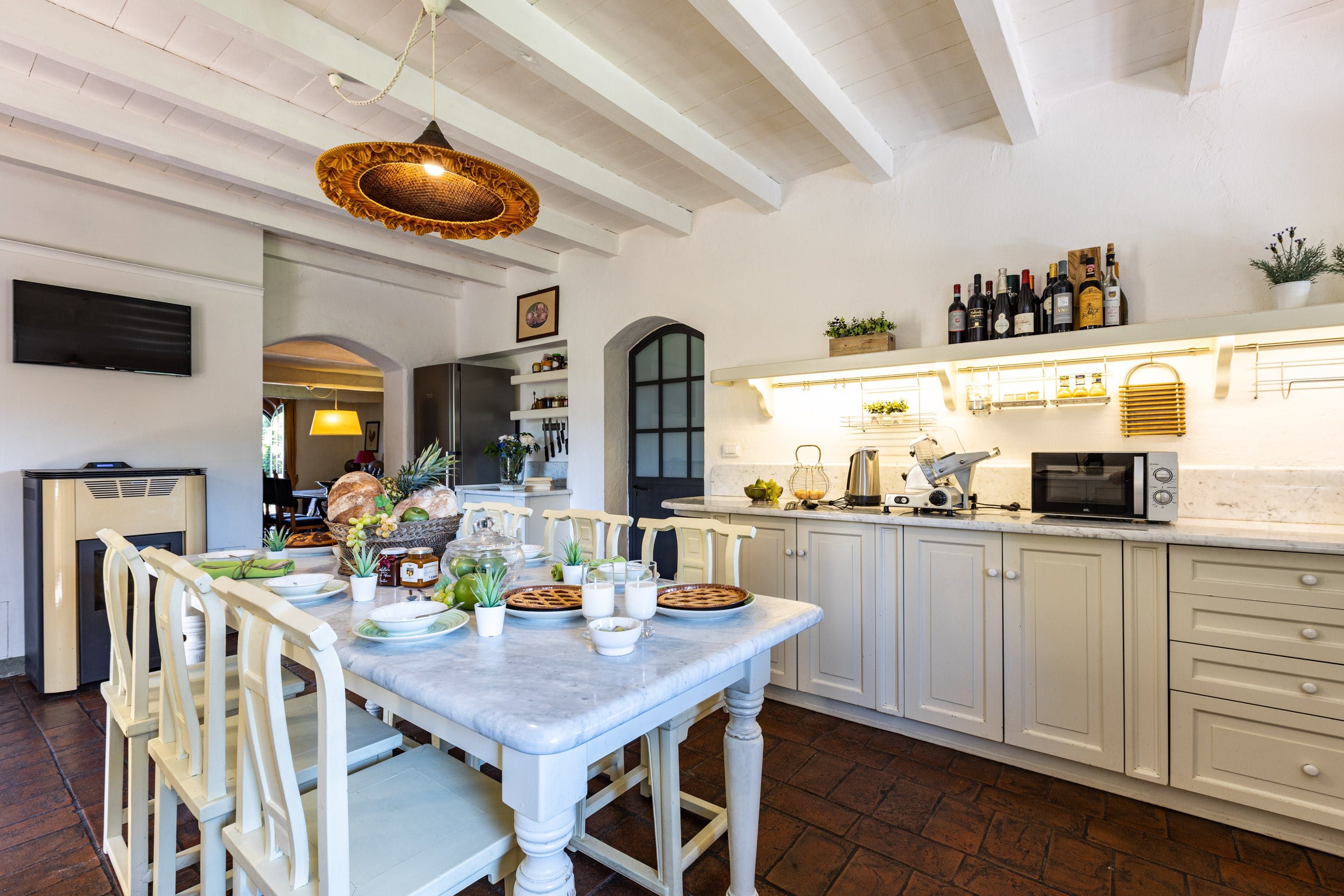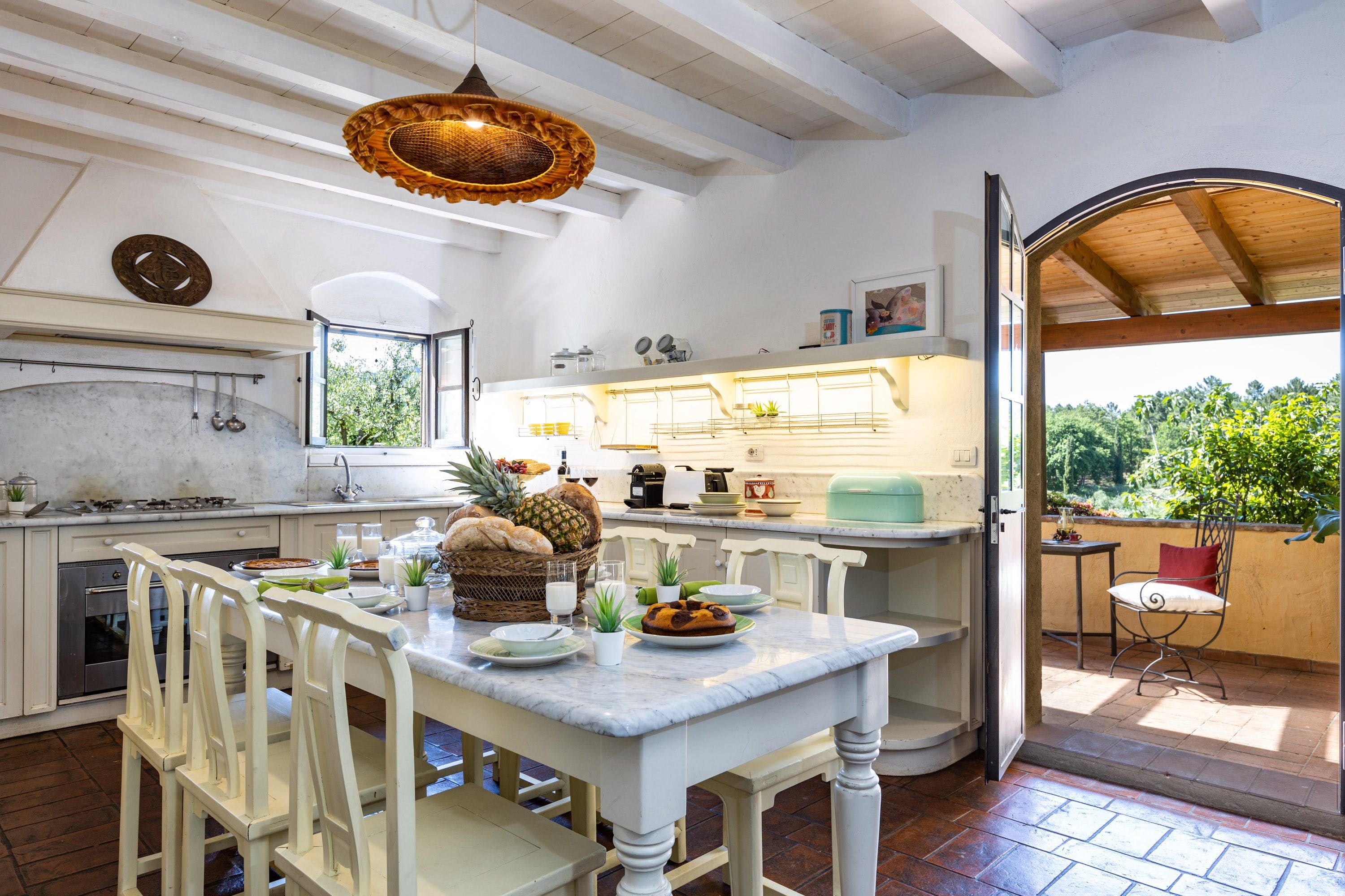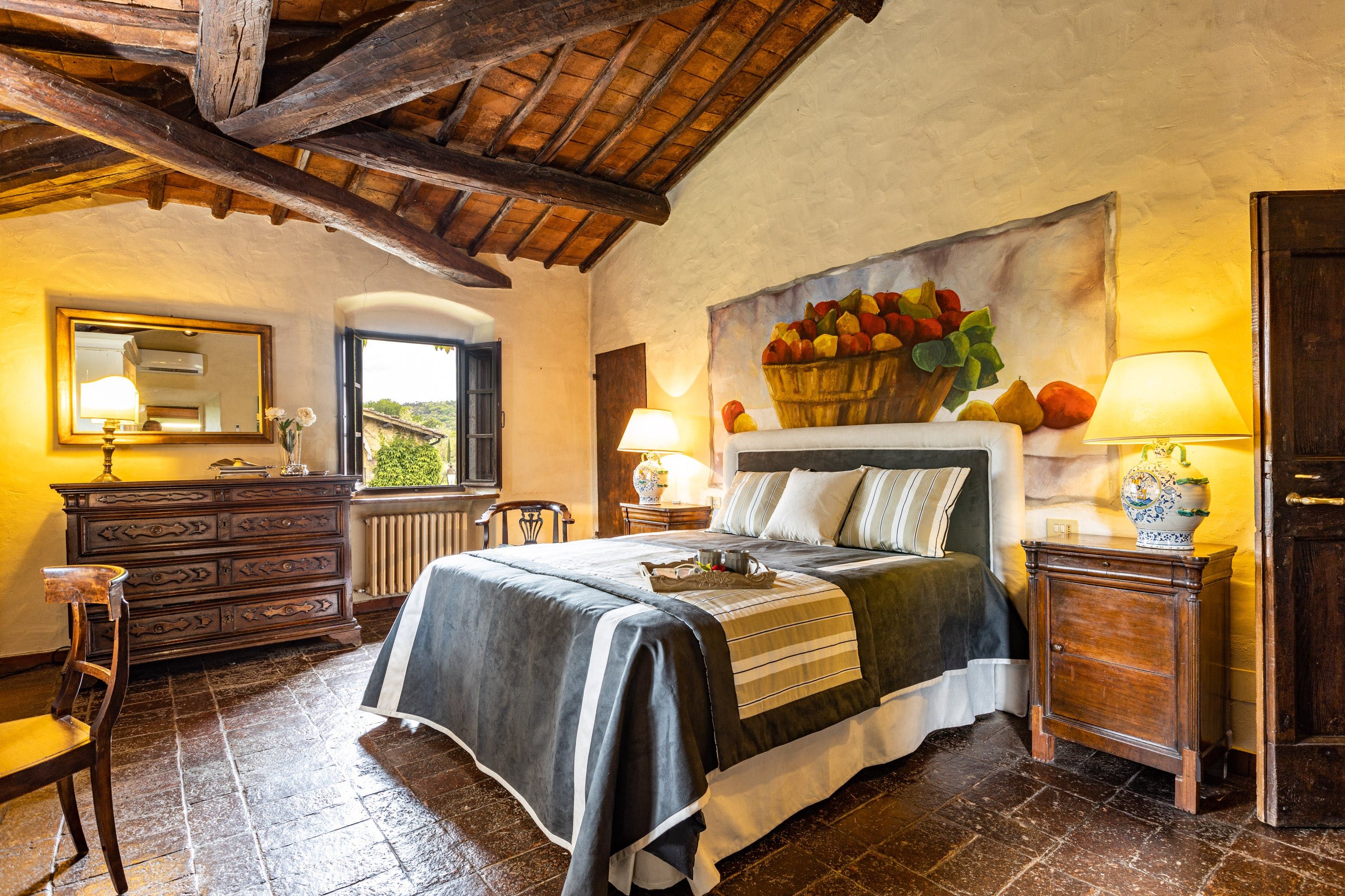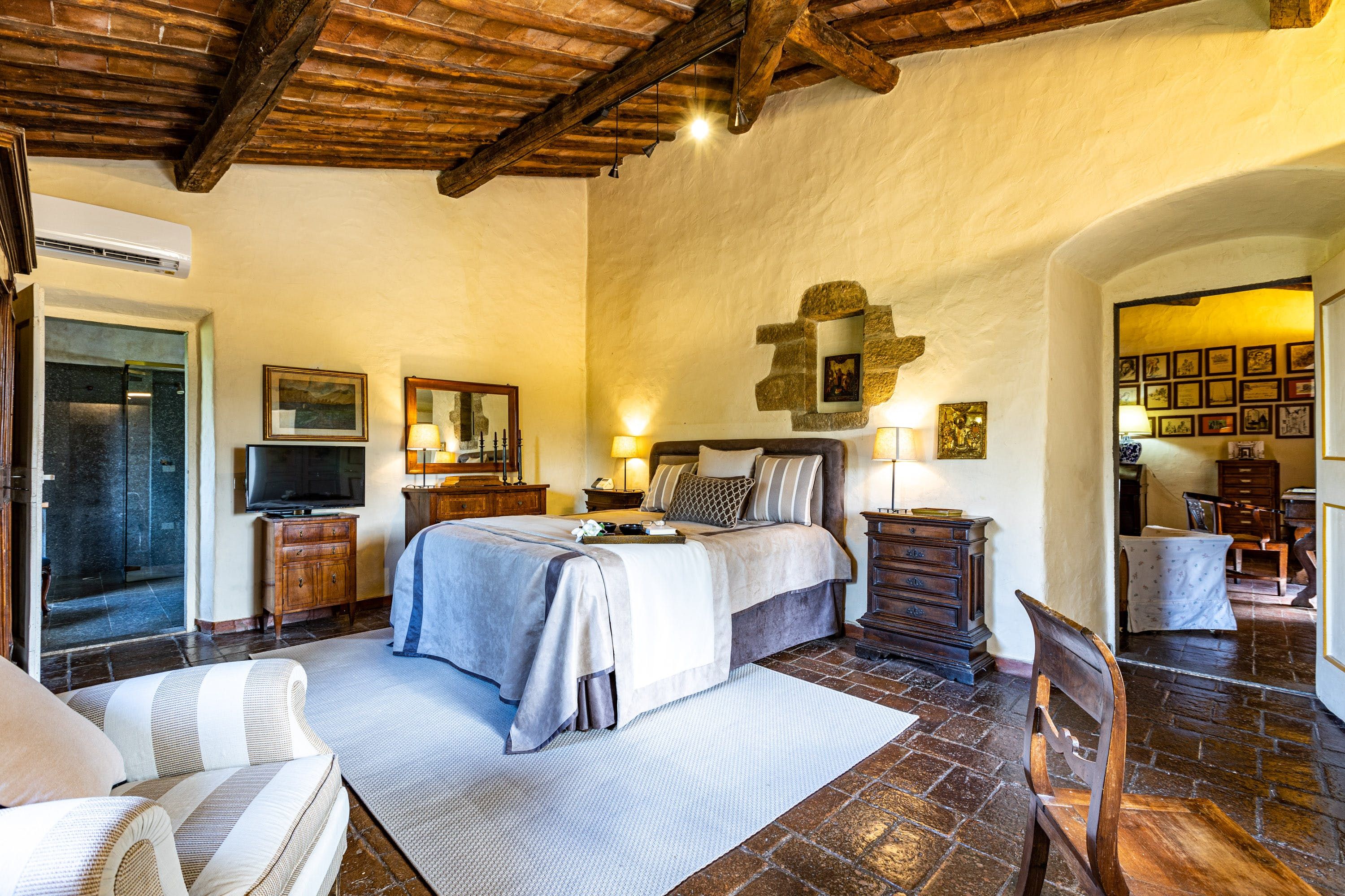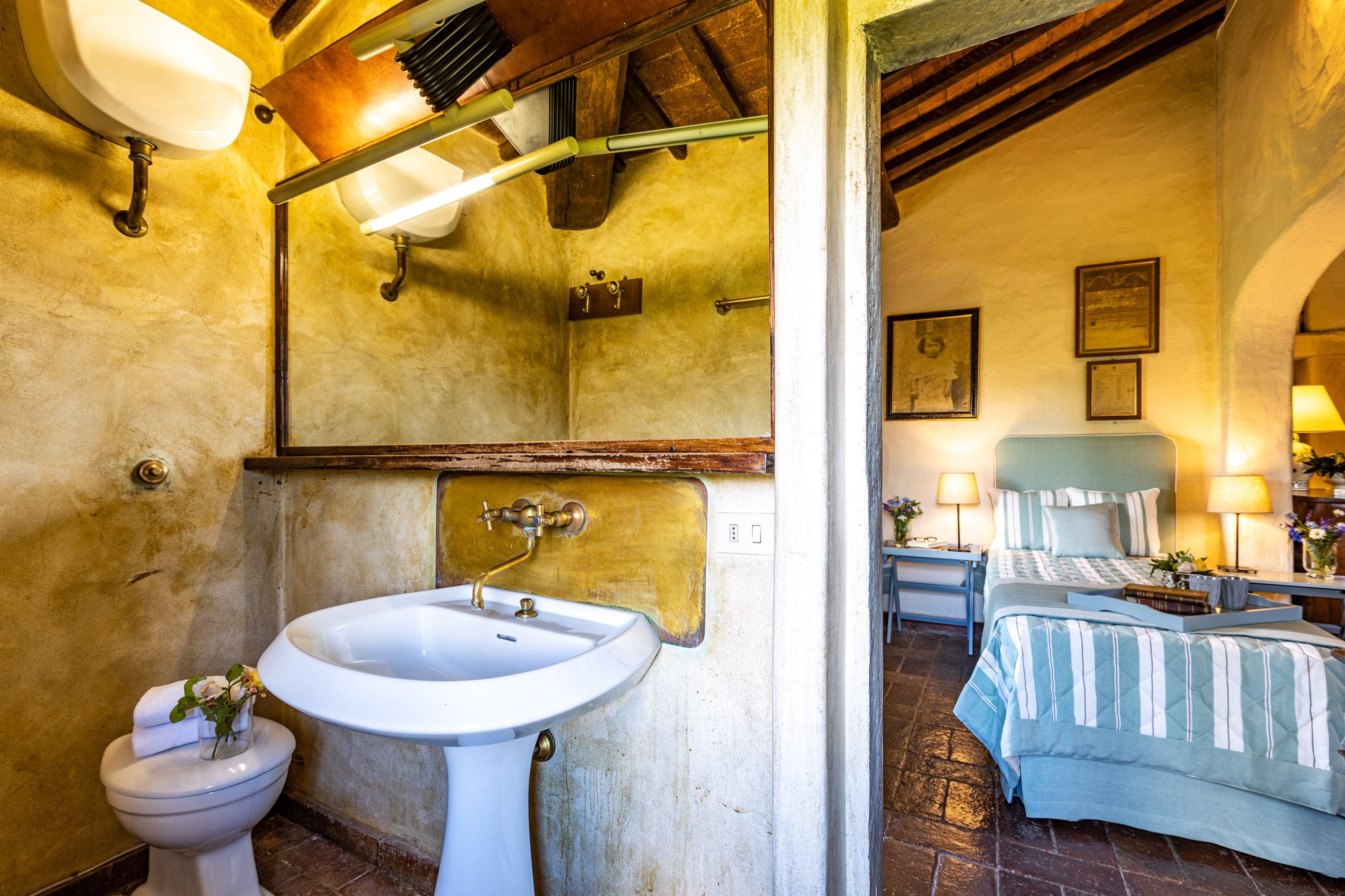 Once home to Marsilio Ficino, an Italian philosopher and astrologer, this historic farmhouse's hillside position gives way to views of the Val d‘Arno. Though it might not control the territory below as it did in the 11th century, it does still give you access to it. Explore the medieval architecture of Figline and Chianti, just beyond, by driving a few minutes. But the location isn't the only thing that drew us to this home – it also splits the bedrooms between a villa, cottage and annexe, creating pockets of privacy whilst still allowing the group to come together for alfresco meals or poolside days.