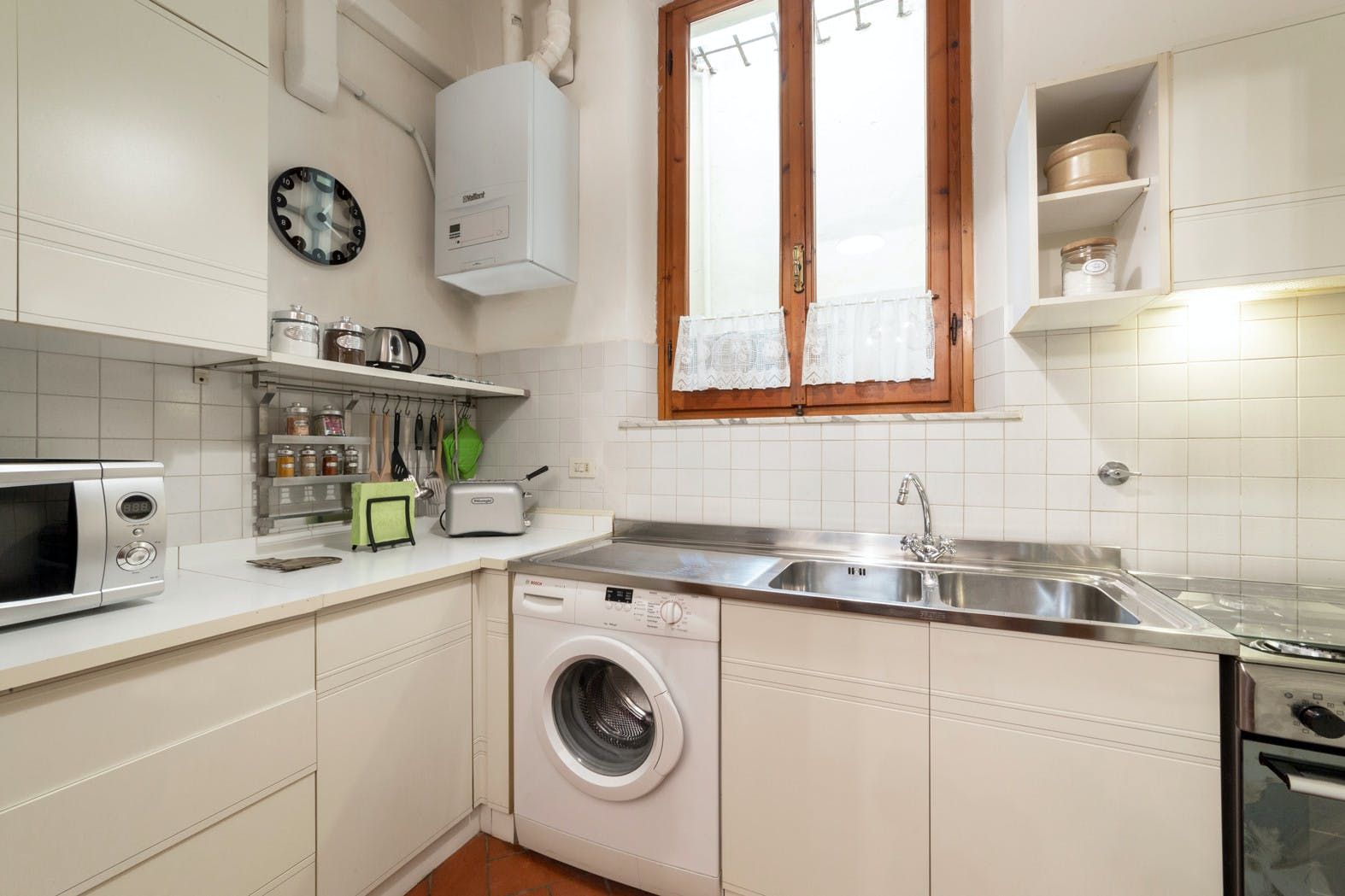 If you’re in search of traditional Florentine charm, this apartment delivers a great solution. From here, it’s just a short stroll to the Basilica of Sante Croce, while Ponte Vecchio and the Cathedral are less than a fifteen-minute walk away. Wherever the day takes you, this home makes it easy to disconnect and unwind. It’s worth noting the furnishings and decor are a little dated in parts, but it does have plenty of character and family-friendly rooms. There is also a sofa bed for two guests in the living room – making this a sweet option for groups looking to stretch out and spend quality time together.