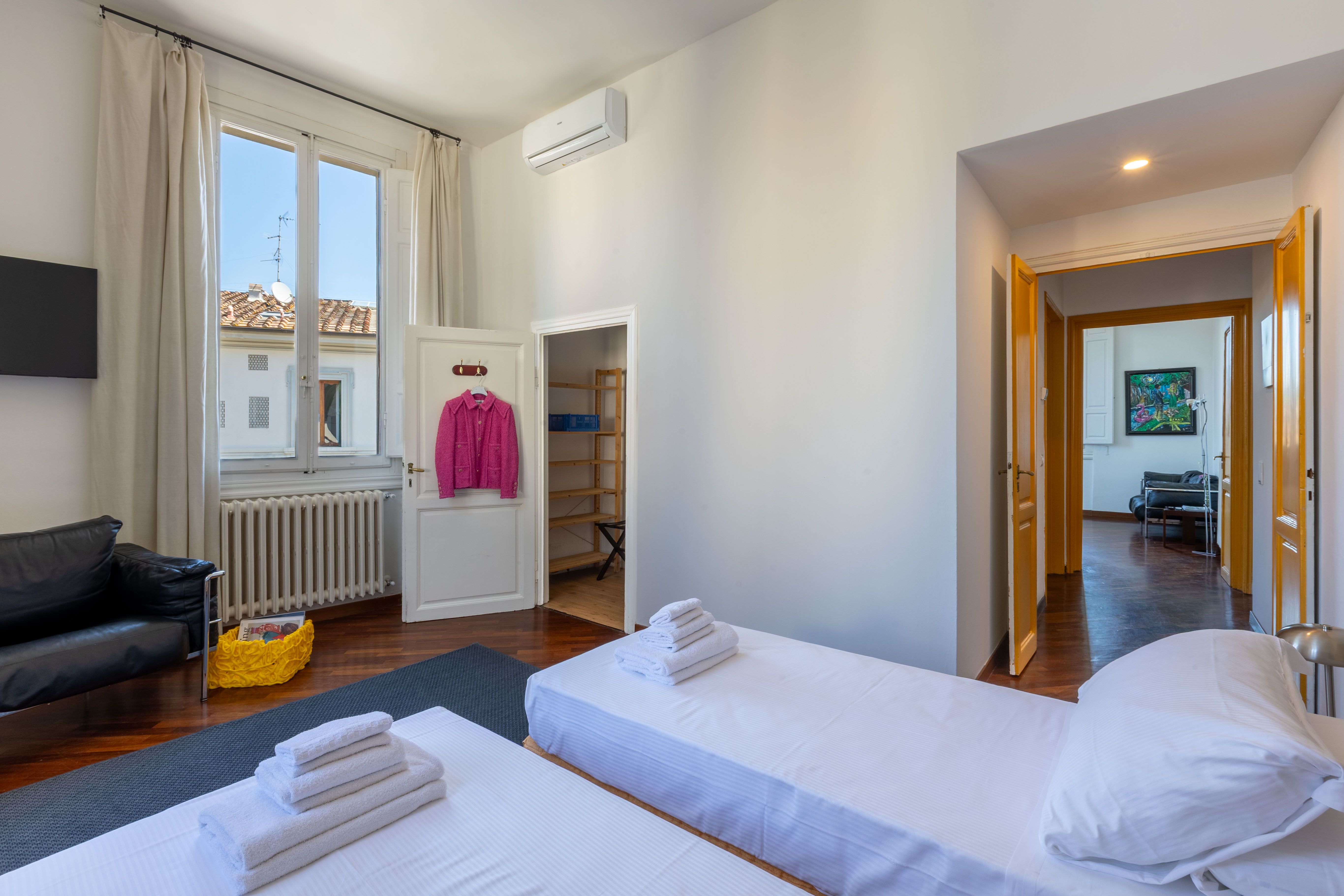 Enjoy life like a local in this charming apartment set on the doorstep of Florence. Located on the second floor of a 1926 building, and with a shared ground-floor garden that's perfect for morning coffees or evening cocktails, you're sure to feel right at home here. Inside, you'll find rooms with a view over the surrounding streets, and if you take a short stroll, you'll be in the vibrant Porta Romana. With a taxi stand just two minutes away, you're well-located to see the city sights – though a car is recommended if you're planning on travelling further afield.