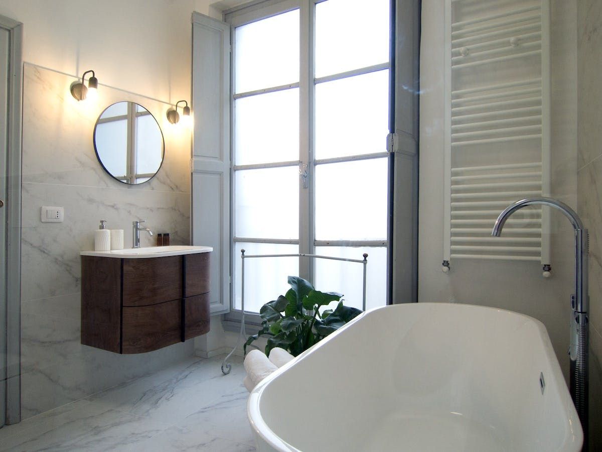 Home of an architect, Alberata Selva has been meticulously designed to a coherent theme, and anything that doesn’t fit has been jettisoned. It’s the sort of obsession we understand. The flat itself is fairly large anyway, but it’s worth knowing that it would be excellent for very big groups, as both other places on the same floor of the building are run by Daniele and his team. If all booked together, they could take as many as sixteen guests at once.