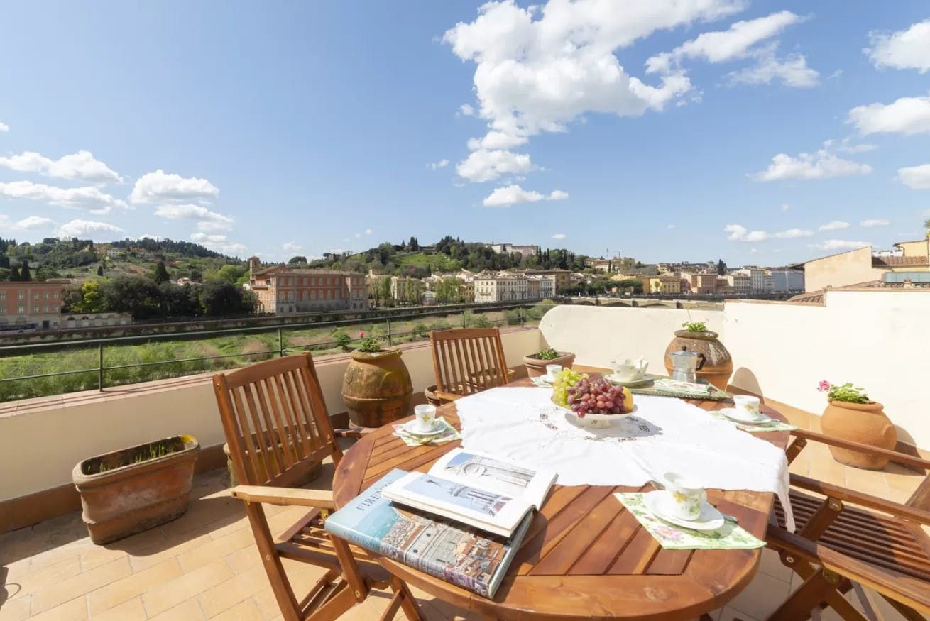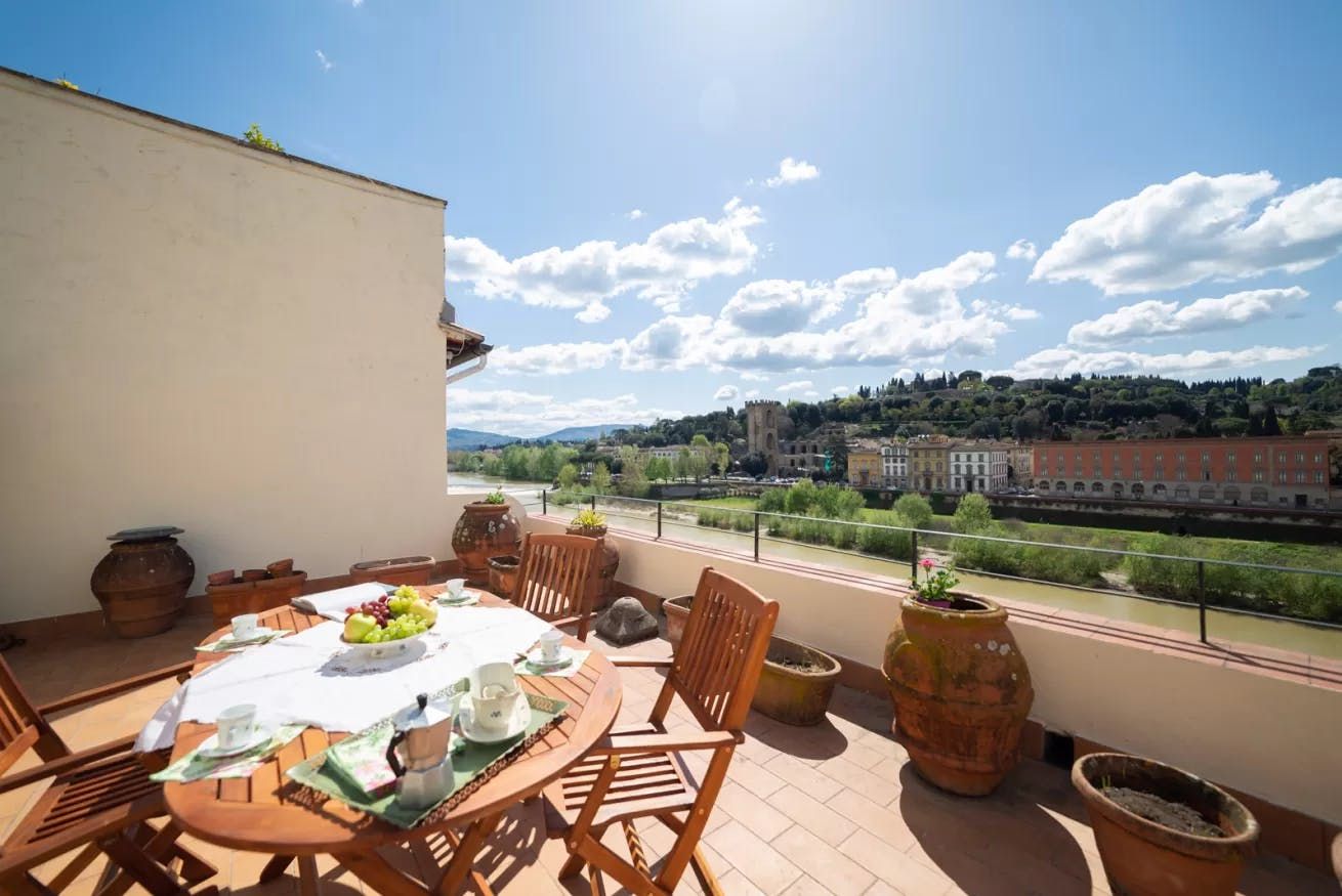 Enjoying a privileged position right on the banks of the River Arno, this handsome apartment is just the ticket for those looking for a sunny, relaxing stay.