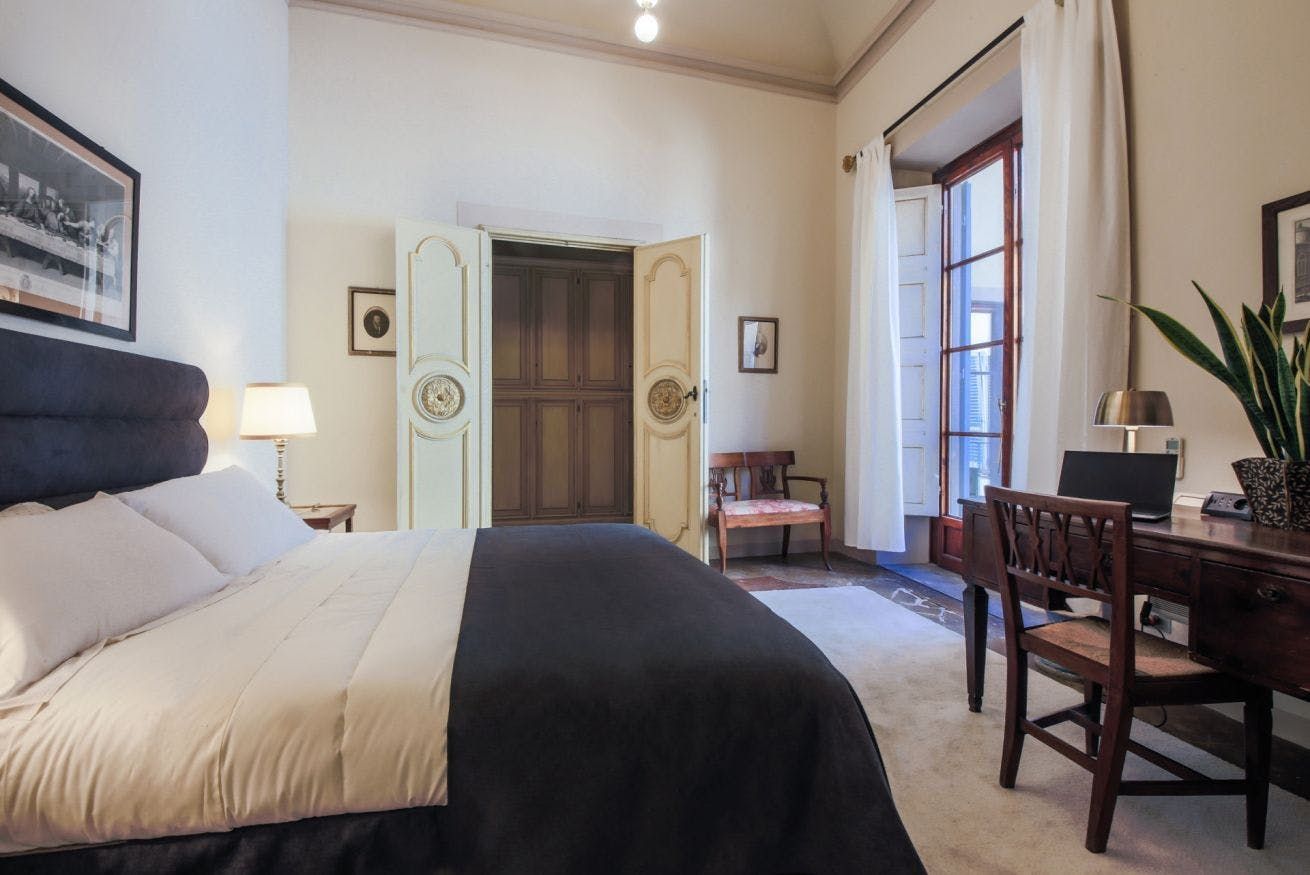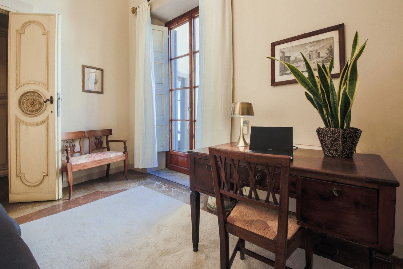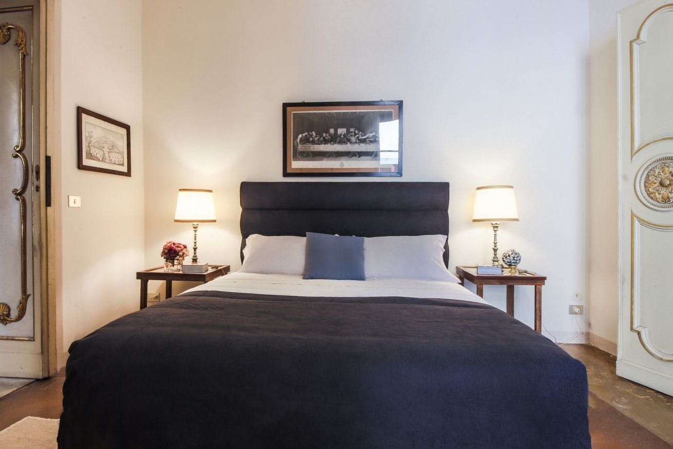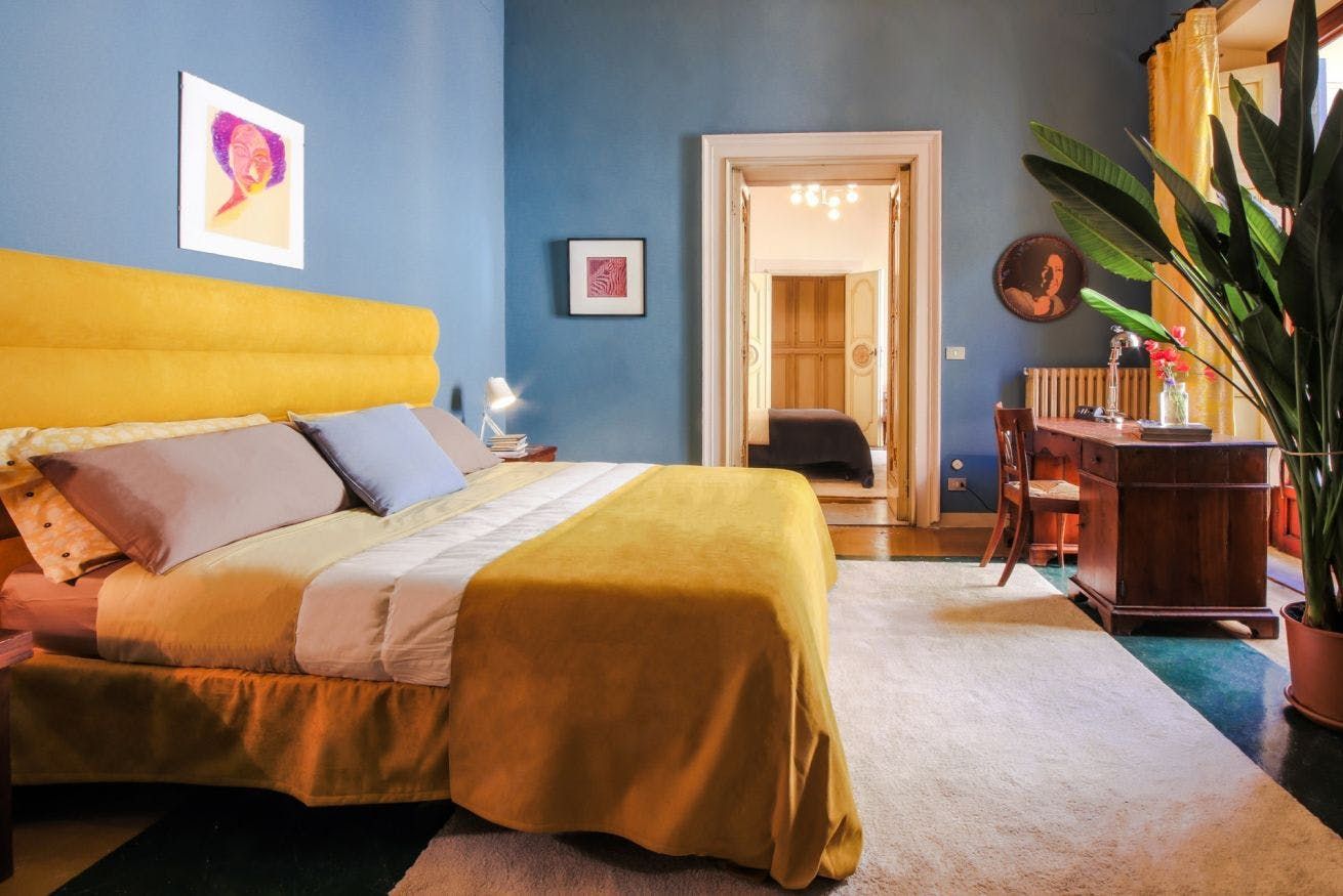 The two-bedroom home makes a strong case for eclectic decor – your hosts have used a heavy hand when placing plants and paintings around the apartment. The resulting space carries oodles of charm, with plenty to look at and feel inspired by before you've even delved into Florence's art world. The high ceilings and arched doorways give it a feeling of grandeur that's rare in the hub of a city. On the sun-soaked balcony, you can enjoy a pocket of peace in this cosmopolitan destination as you sip your morning espresso.