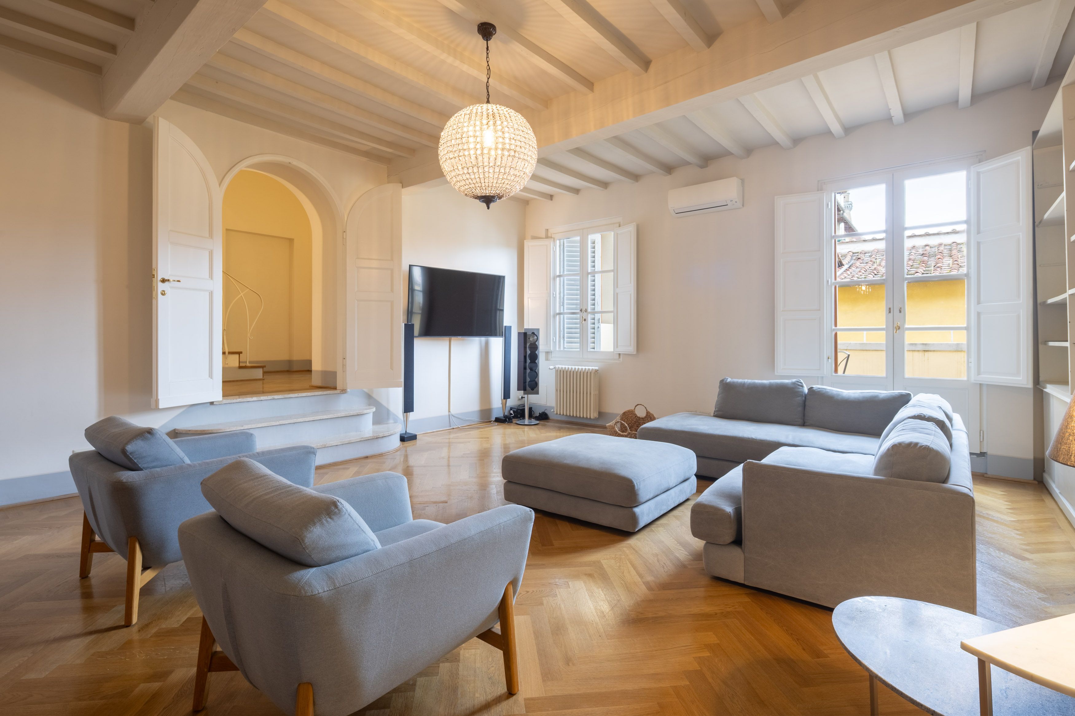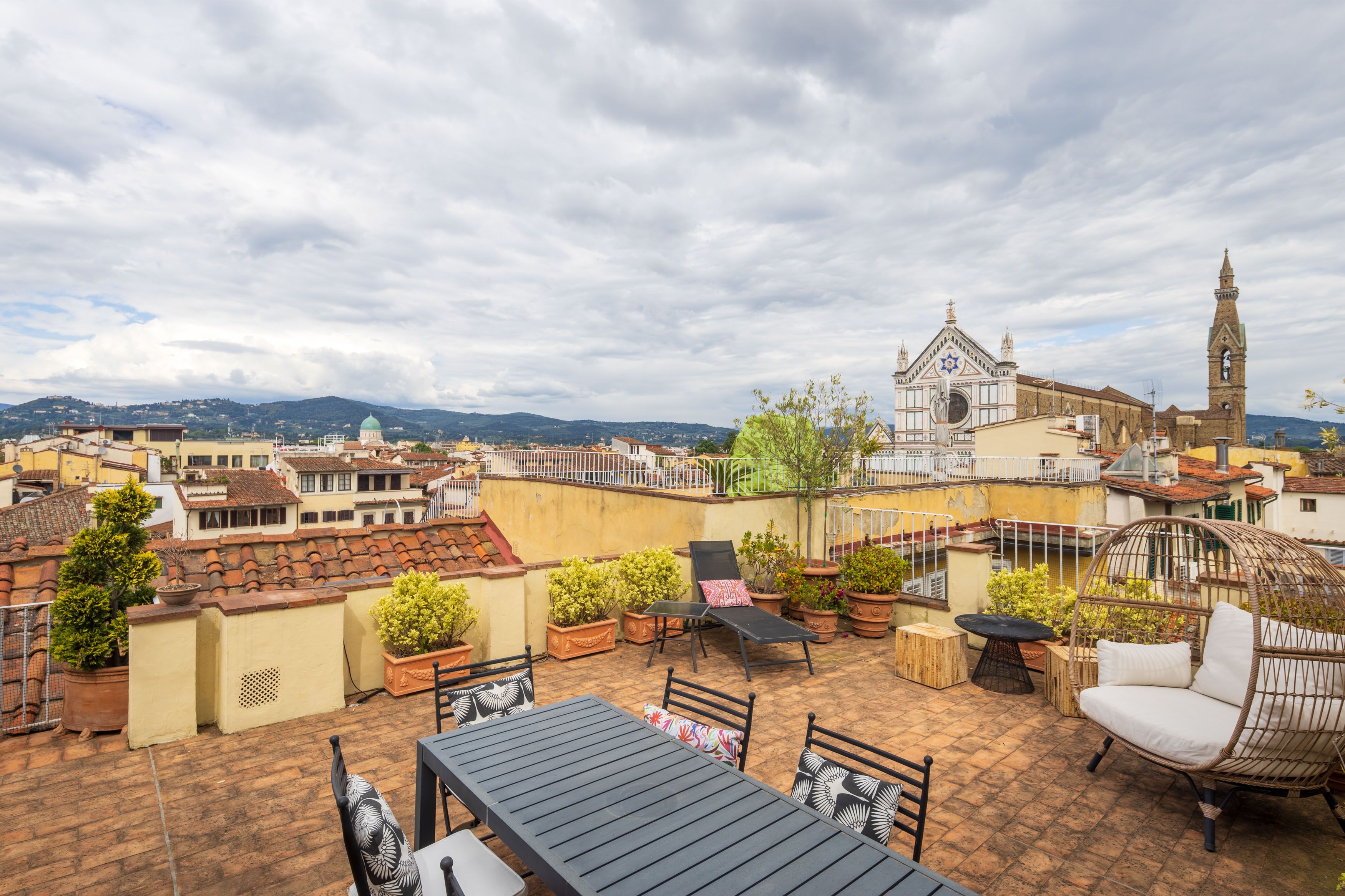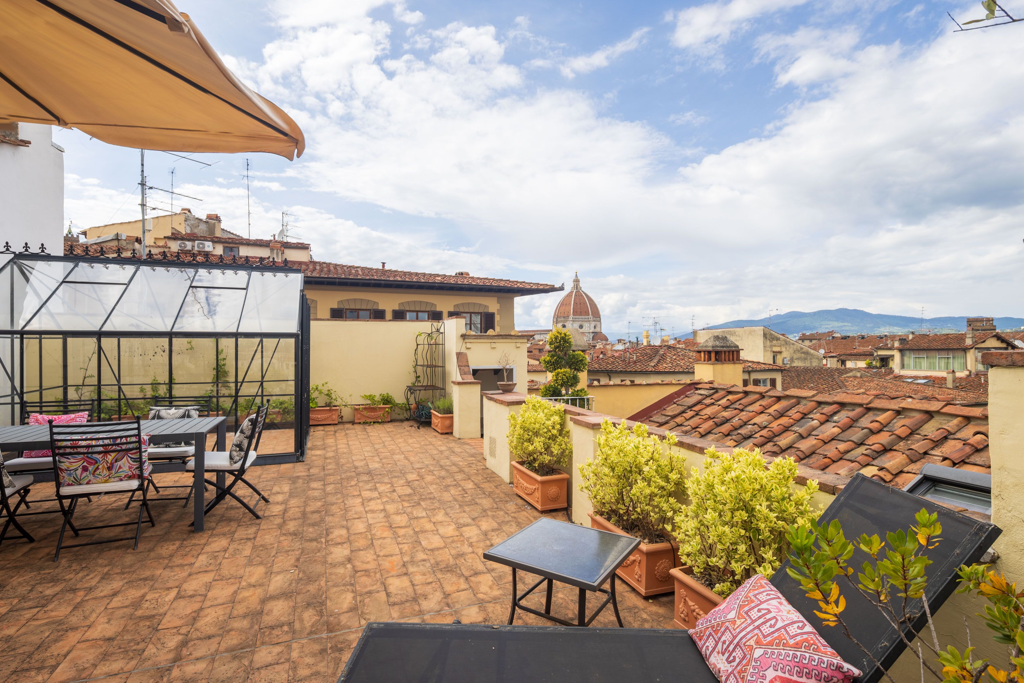 This luxury penthouse has space to stretch out and views to remember. Inside, you’ll find ample living space, a modern kitchen and tastefully furnished bedrooms. The real highlight is the rooftop terrace, where Florence unfolds before you: from the Duomo’s dome to the spires of Santa Croce. It’s perfect for sunset drinks or a long, lazy lunch under the sky. The apartment is on the second floor and reached by lift, but its three-level design means you'll have to climb some stairs. Still, with views like these in the heart of the city, every step is absolutely worth it.