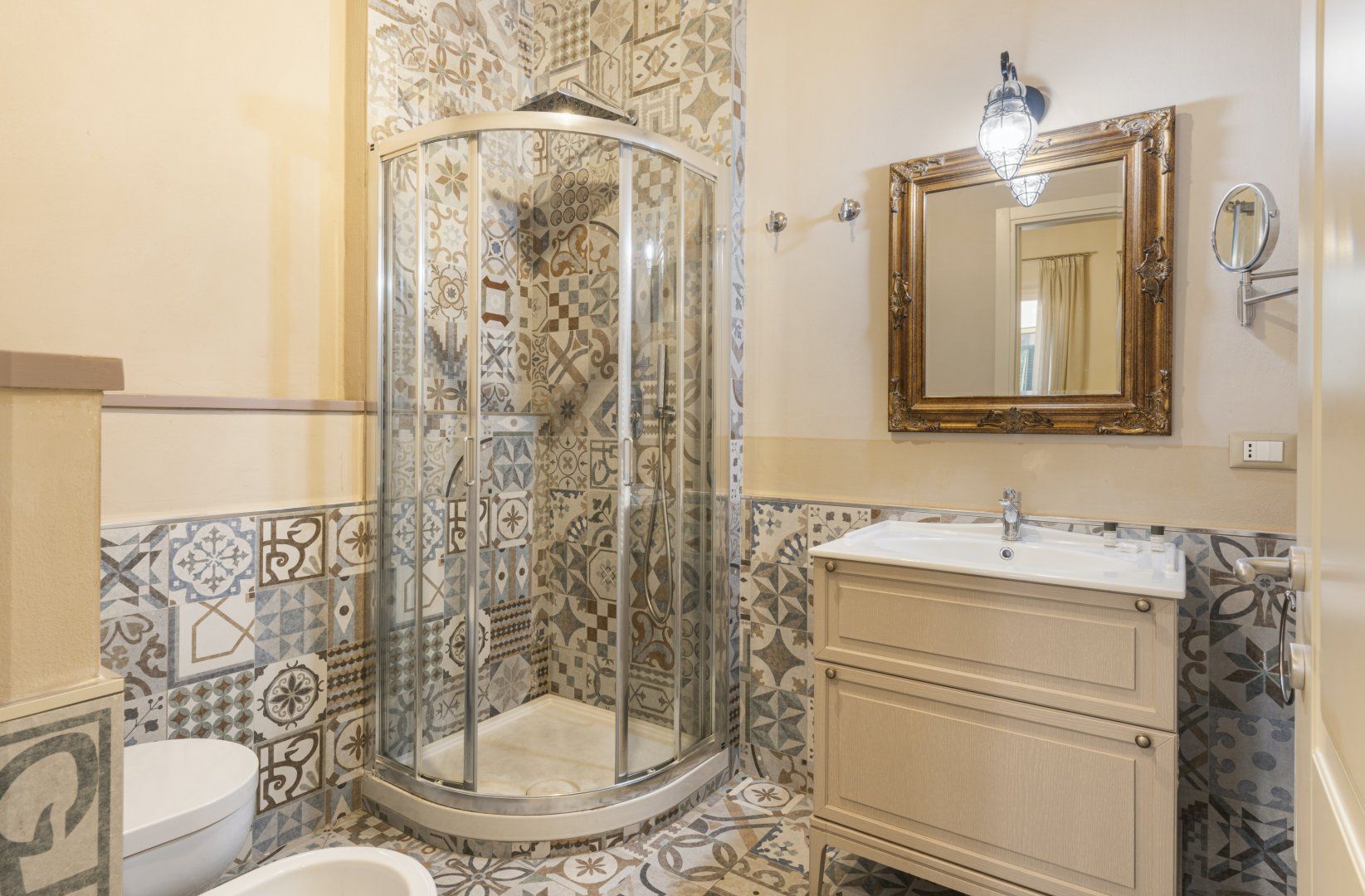 As you step into the open-plan living area, you’ll immediately notice its tall beamed ceilings that feel charmingly rustic and wonderfully Florentine. Wood floors and pared-back contemporary furnishings complete the scene, with a beautifully tiled kitchen here too. Prepare a celebratory Italian meal when you’re not out sampling the local trattorias, before sitting down at the dining table to feast over a bottle of locally bought wine.