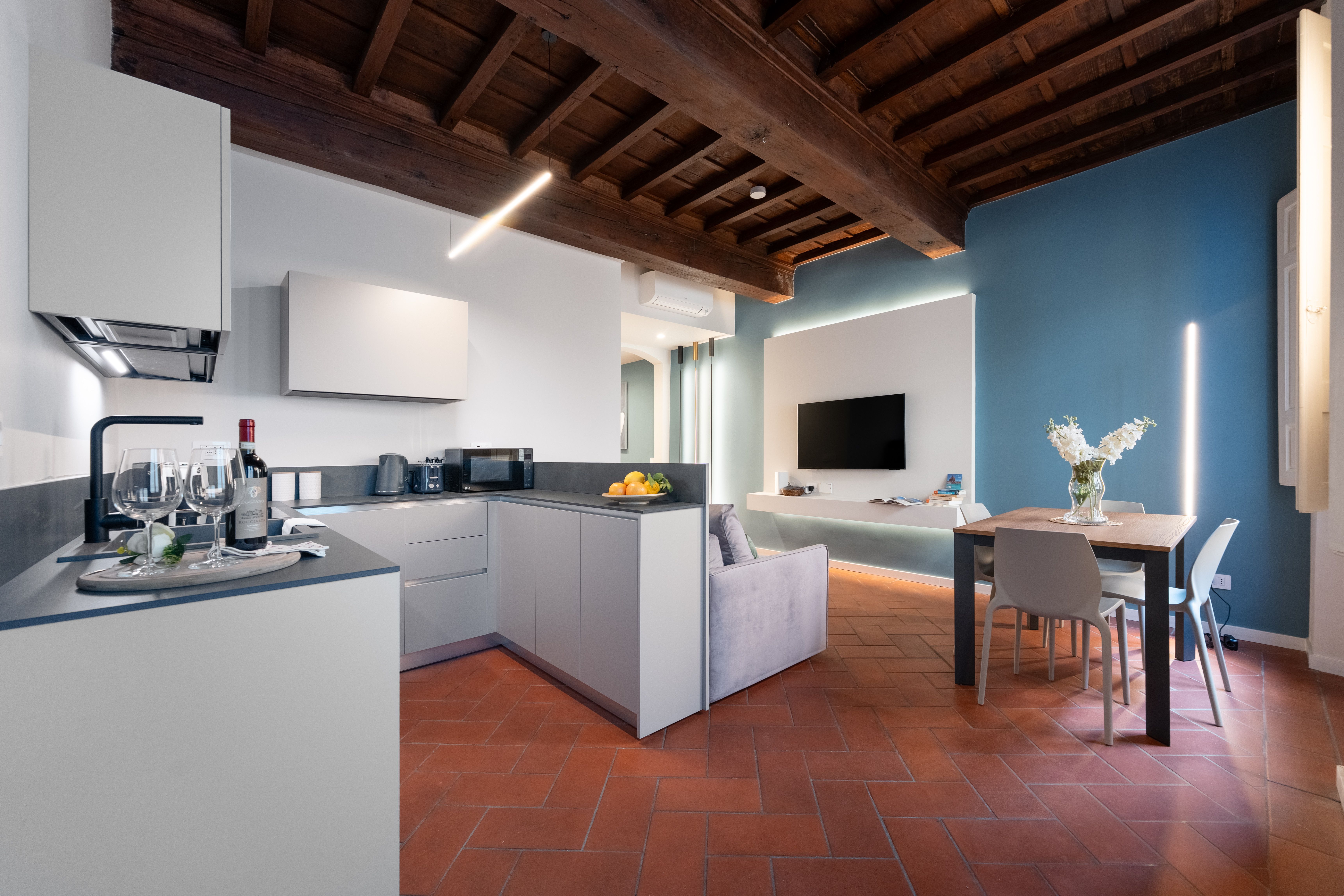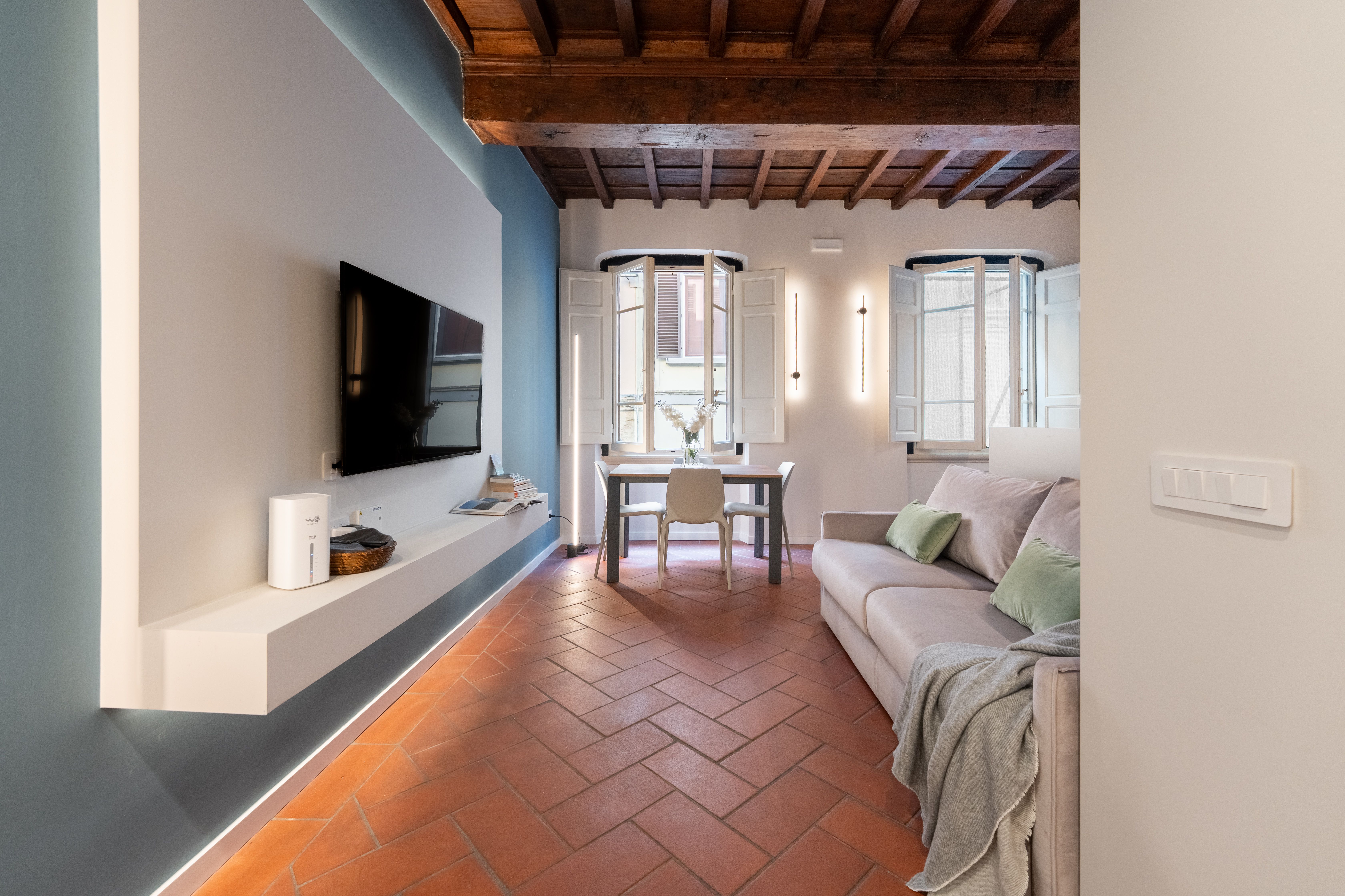 This apartment is just a short stroll from Piazza di Santa Maria Novella and the Strozzi Palace. Plenty of the city’s key attractions are also within easy walking distance, including Florence Cathedral and Palazzo Vecchio. You’ll have designer shops, restaurants, cafes and traditional markets on your doorstep too. Located in an elegant 19th-century building, you can take in the views over one of Florence’s most fashionable shopping streets from the apartment's windows. This home is a great choice for couples, families or friends looking to be surrounded by luxury boutiques and iconic landmarks.