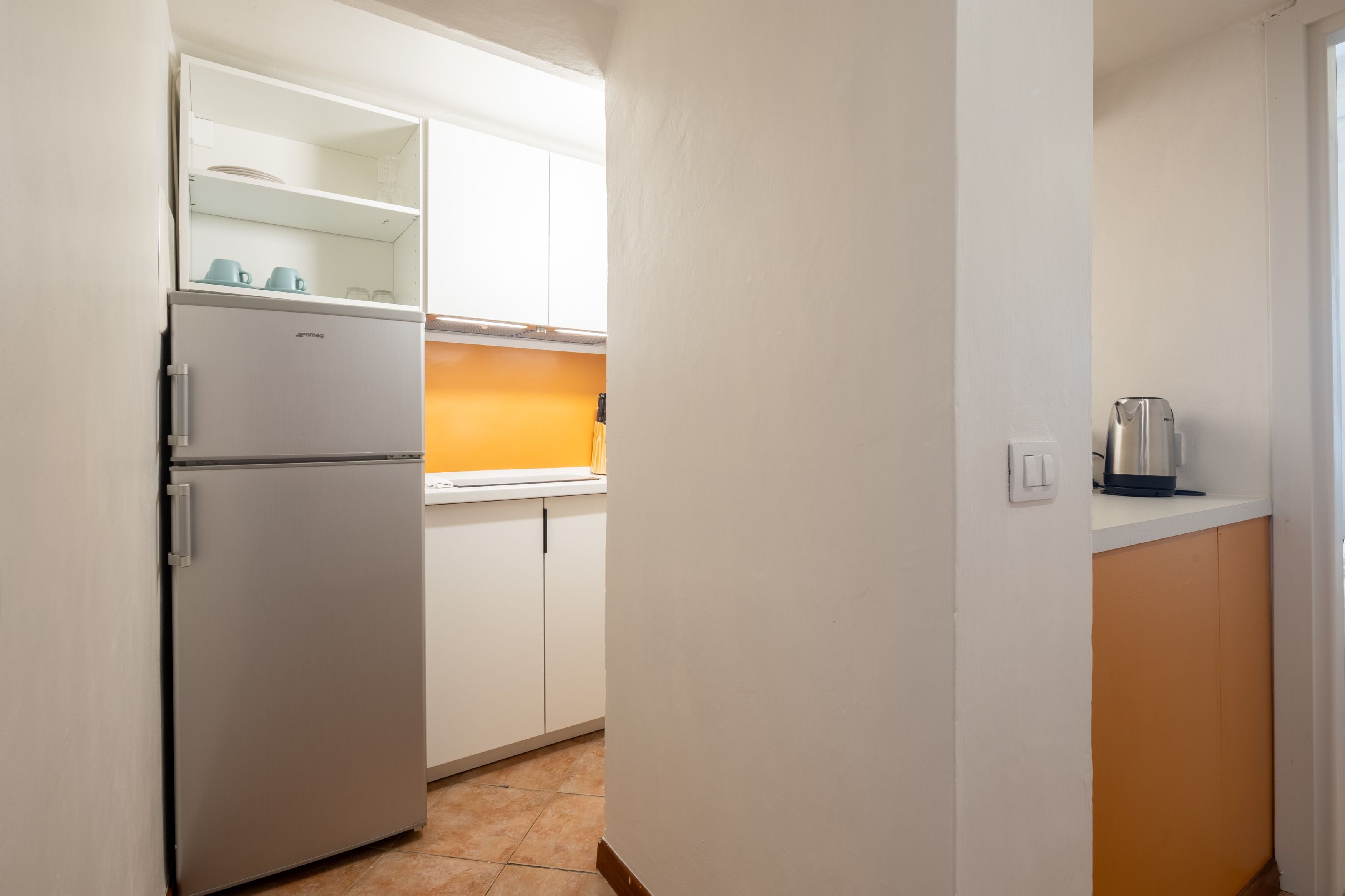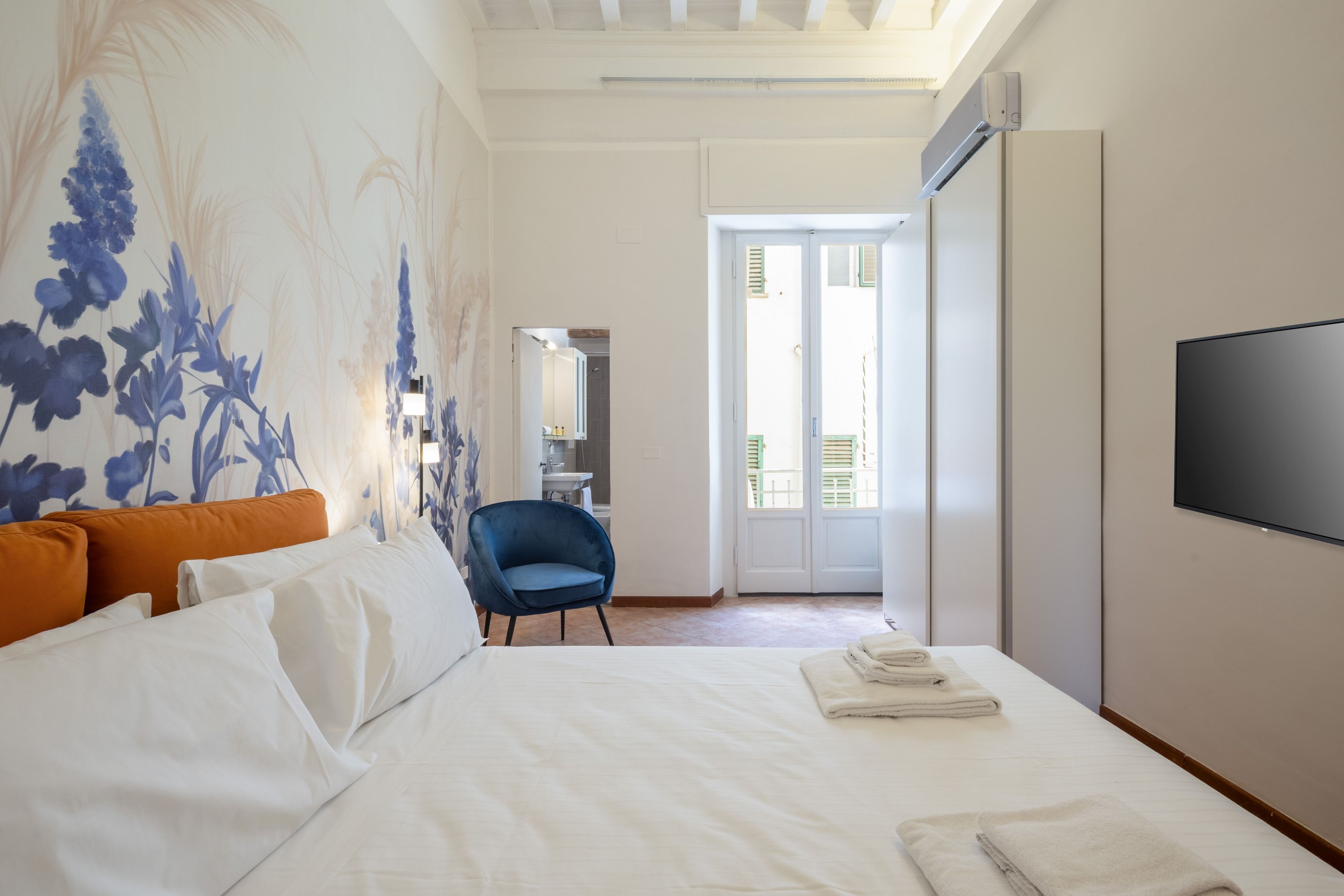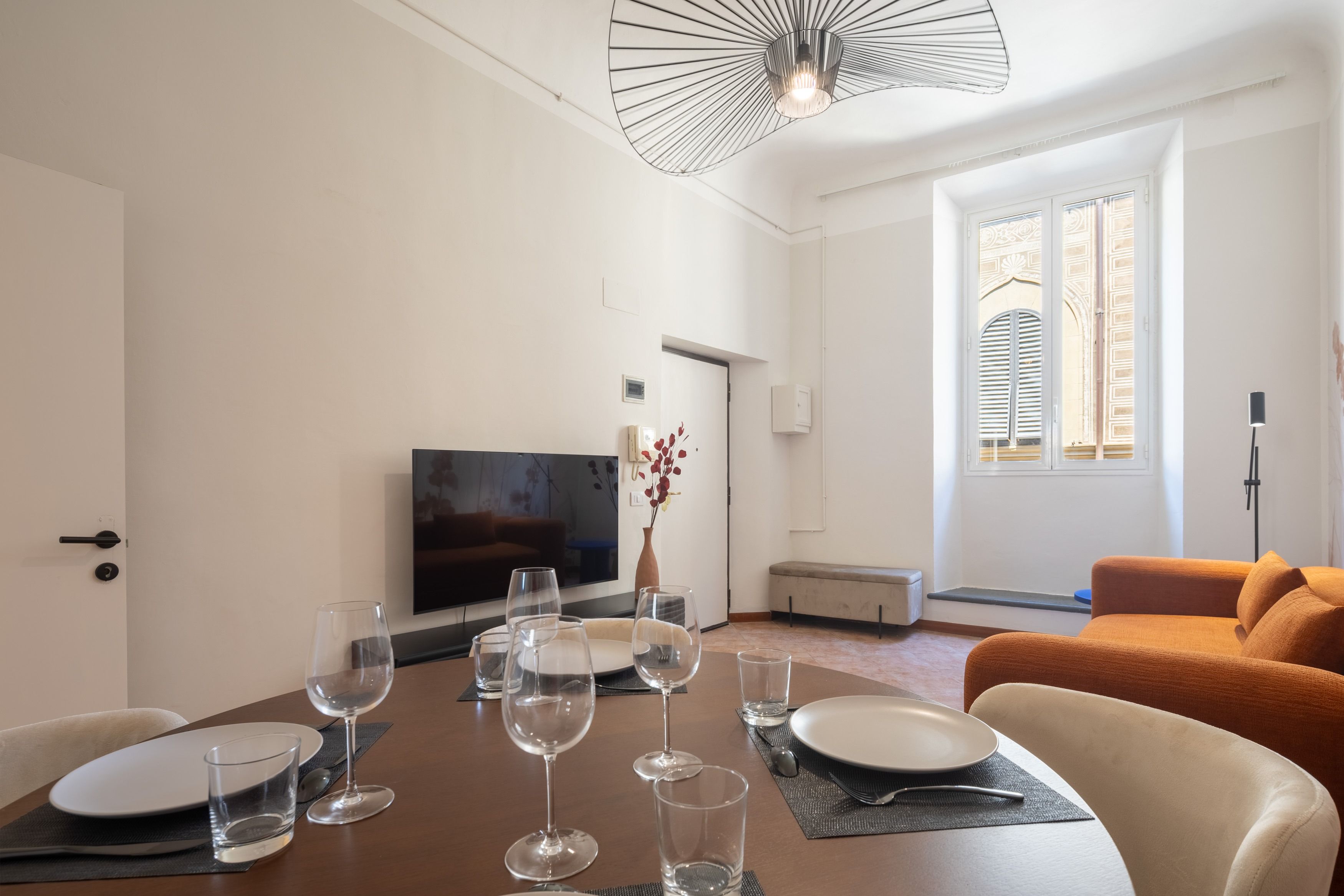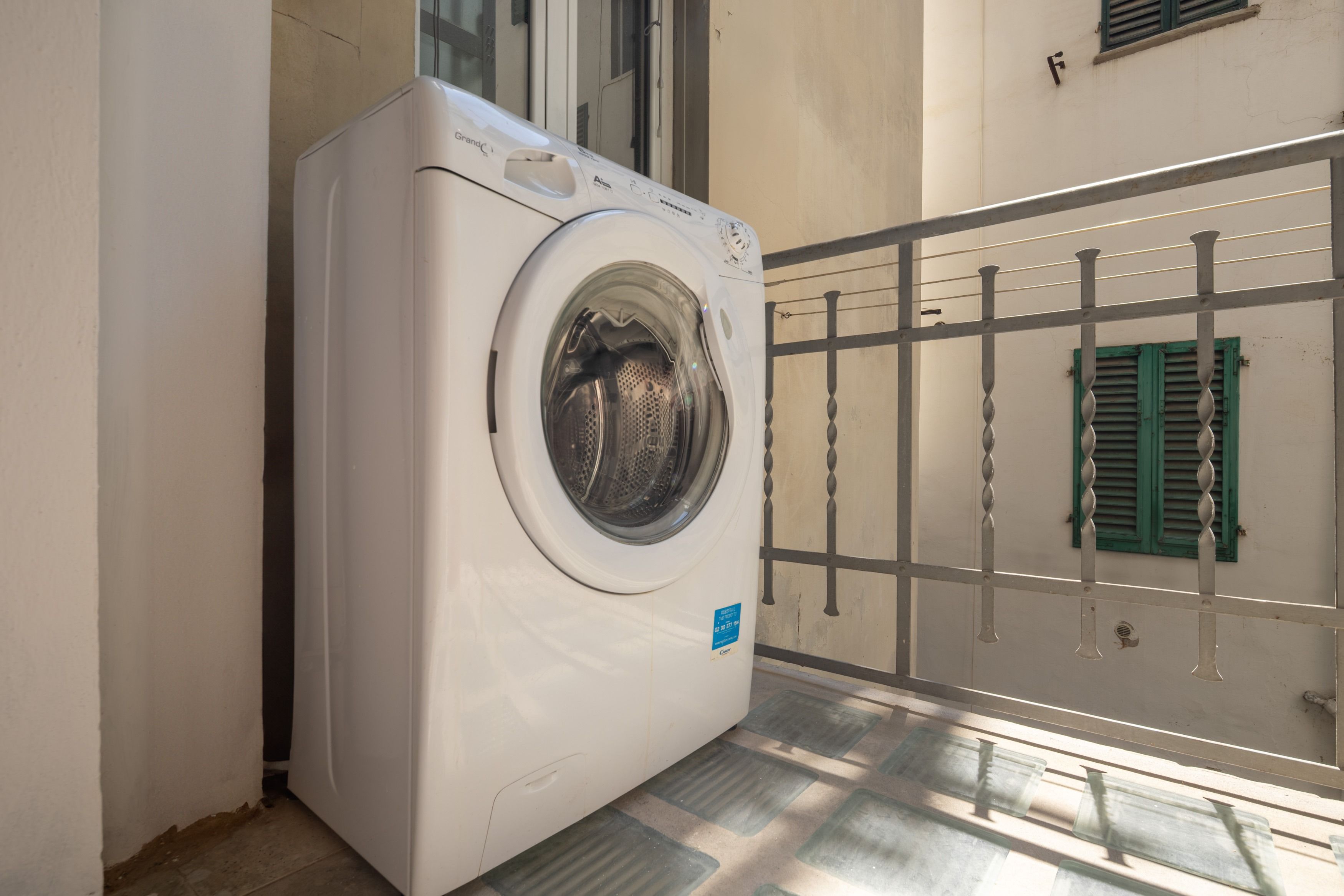 Putting practicality over ornate furnishings, this functional Florentine apartment is comfortable and benefits from an exceptional location. Ideal for couples interested in cuisine, culture or romance, the home offers a good sized double bedroom with its own balcony (where you'll find the washing machine) and en-suite bathroom. The living area is straightforward, with a TV, dining table, and sofa bed for a third guest, while the kitchen is slightly cramped with a semi-obtrusive column and forgoes bulkier white goods like ovens and dishwashers. Head out the front door and you'll be right in the heart of Florence, with major attractions like the cathedral of Santa Maria del Fiore reachable in ten minutes.