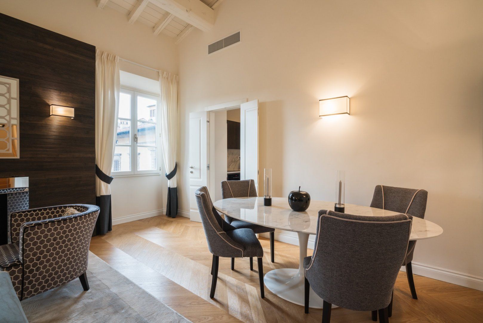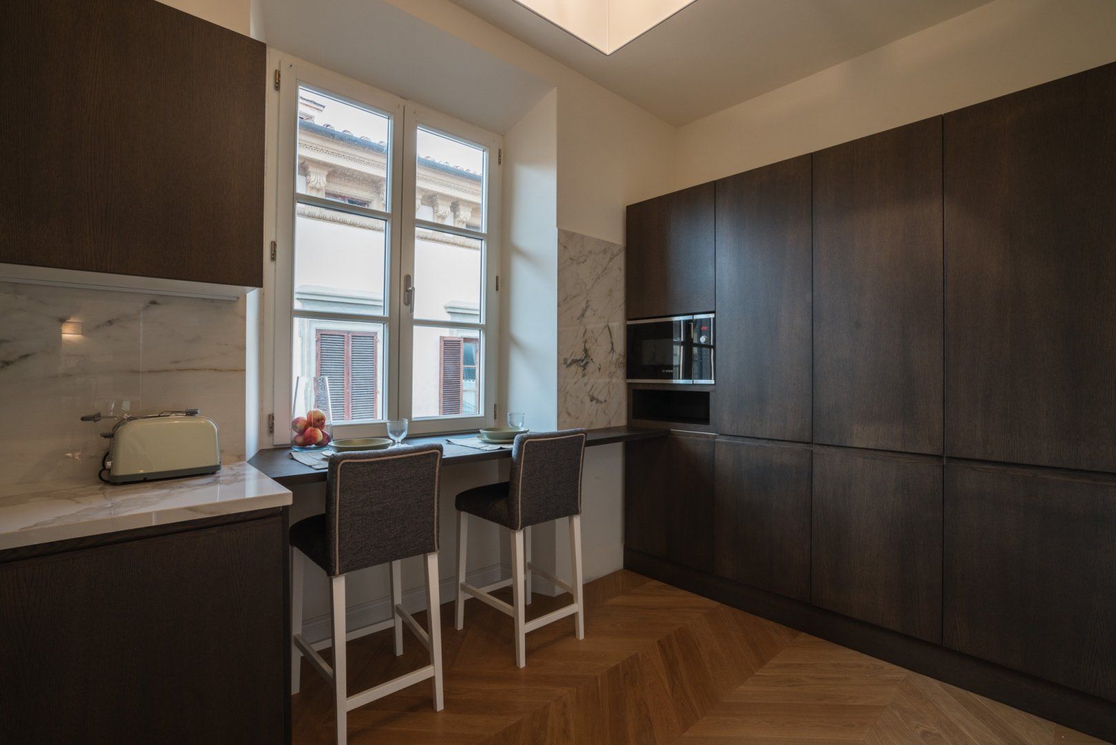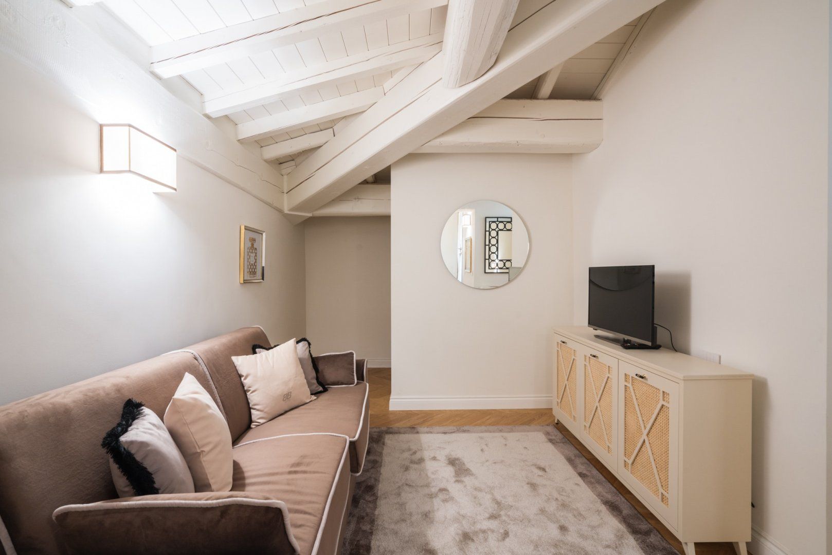 Housed in a former palace that once held painter Jacopo Chimenti’s studio, this elegant apartment puts views of the Duomo front and centre. So close you could almost reach out and touch it, the home’s proximity to the Duomo isn’t the only thing going for this Florentine pad. An electric fireplace in the living room, a four-poster bed, as well as an upstairs studio with a desk and access to a terrace are all highlights here. And thanks to the home’s prime position in the heart of the city, you’ve got countless historic and cultural hotspots to visit within easy walking distance.