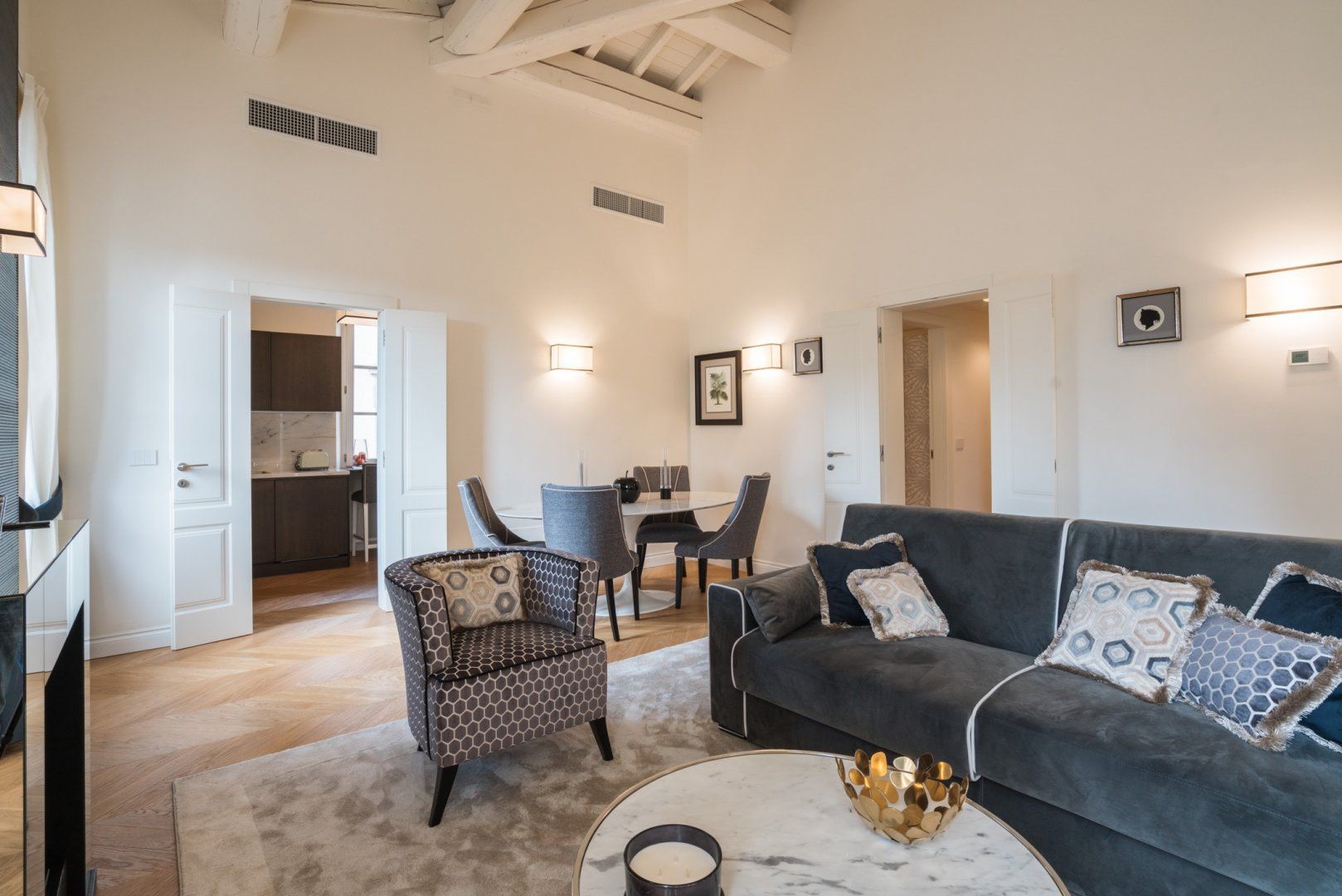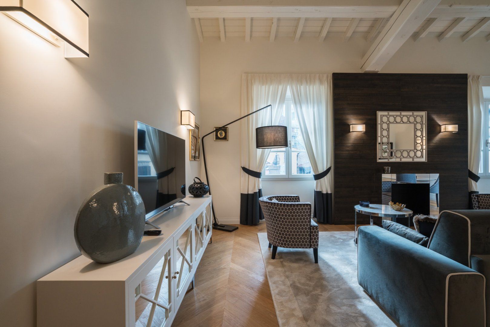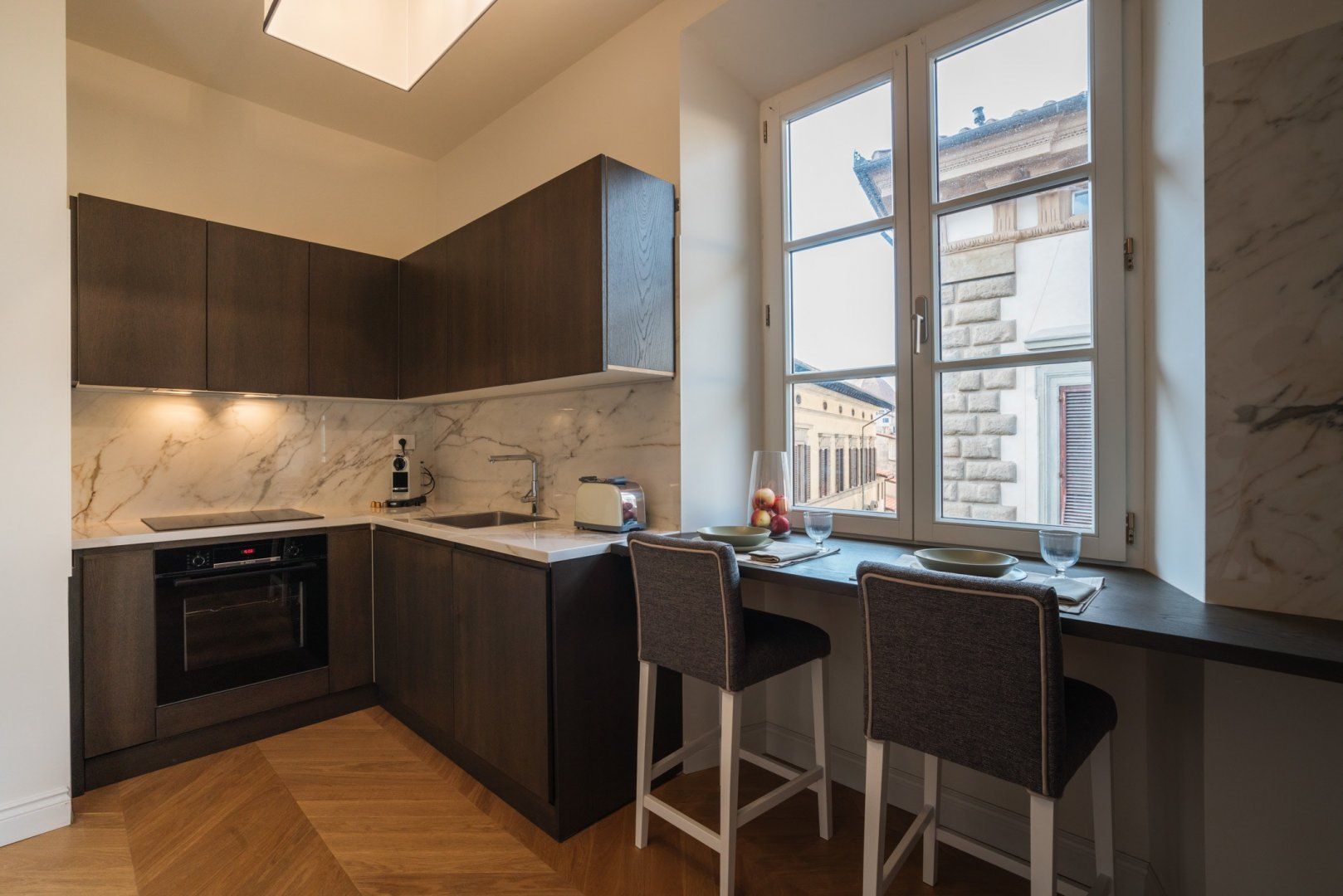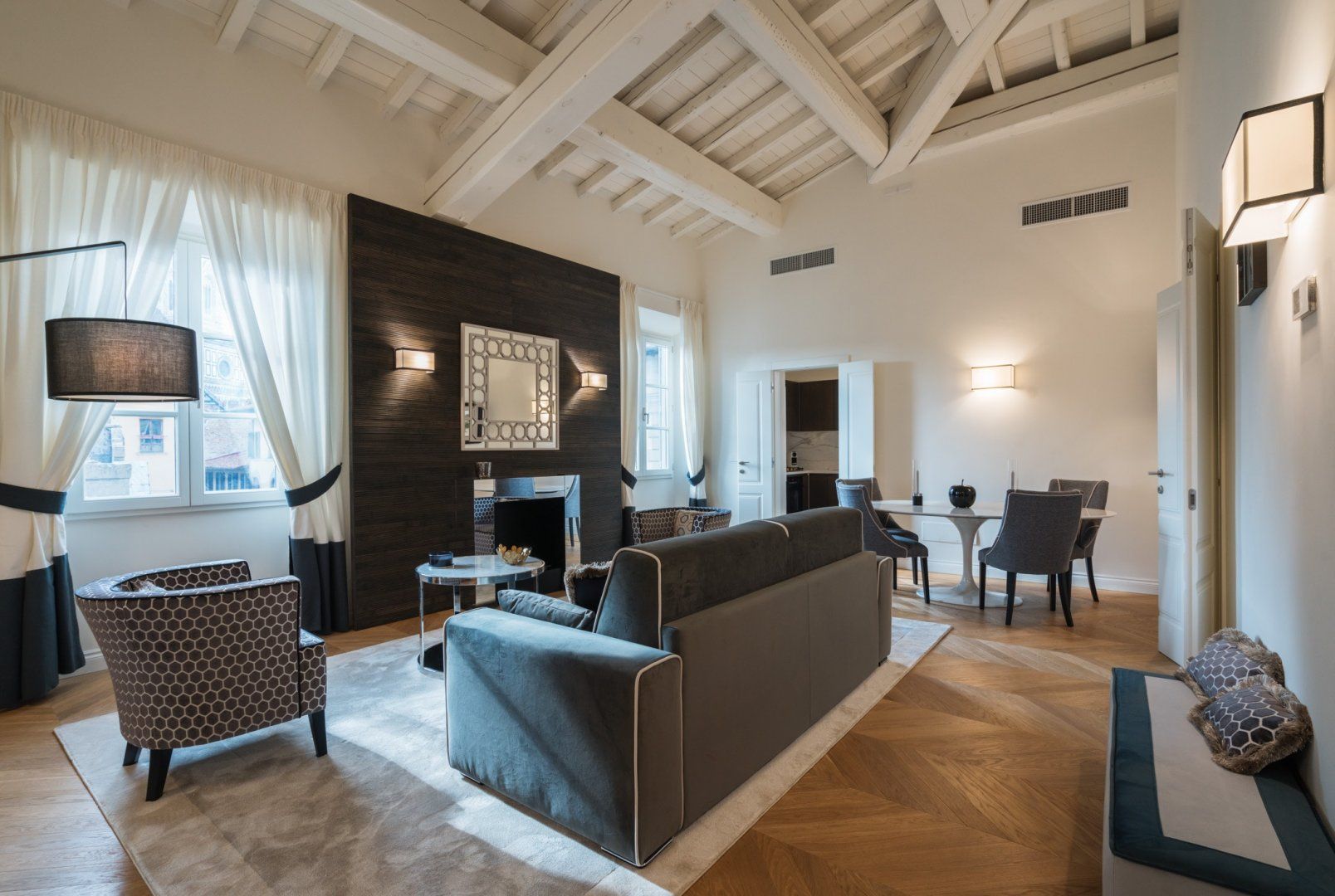 Housed in a former palace that once held painter Jacopo Chimenti’s studio, this elegant apartment puts views of the Duomo front and centre. So close you could almost reach out and touch it, the home’s proximity to the Duomo isn’t the only thing going for this Florentine pad. An electric fireplace in the living room, a four-poster bed, as well as an upstairs studio with a desk and access to a terrace are all highlights here. And thanks to the home’s prime position in the heart of the city, you’ve got countless historic and cultural hotspots to visit within easy walking distance.