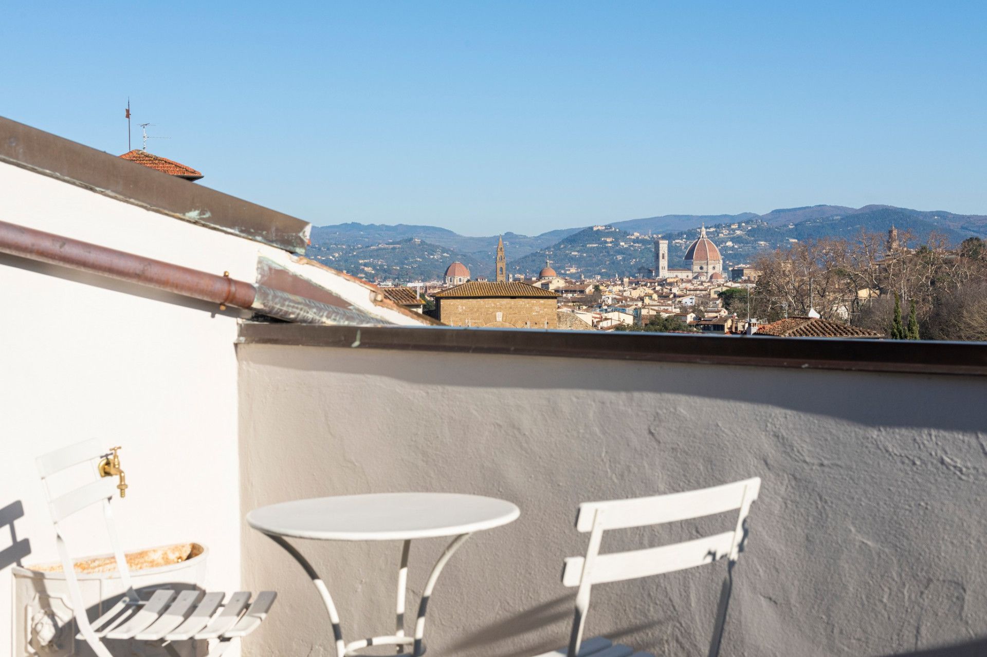 Step onto this apartment’s terrace and you’ll be greeted with a stunning view of Florence’s cathedral. It’s well worth the walk up to the second floor to reach this apartment. Inside, there’s a bright living space to relax in, and there’s also a small TV room. The location is fantastic too. You’ll be a short stroll from landmarks such as the Porta Romana and attractions like the beautiful Boboli Gardens. There are an array of boutiques, cafes and restaurants nearby as well. Other places of interest within walking distance include Palazzo Pitti, Ponte Vecchio and the Uffizi Galleries.